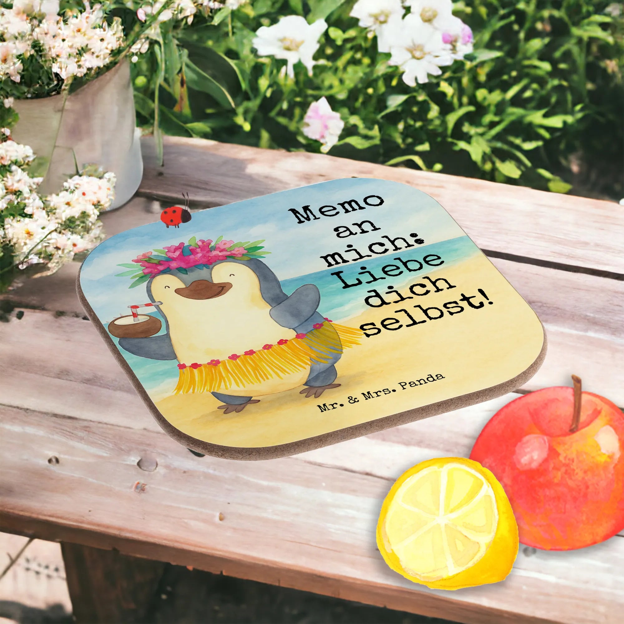 Ein wundervoller Untersetzer von Mr. & Mrs. Panda: Pinguin Kokosnuss. Dieses fröhliche Motiv bringt Sommer, Aloha und gute Laune auf deinen Tisch. Ein niedlicher Pinguin tanzt in der Sonne, hält eine Kokosnuss mit Strohhalm und versprüht pure Lebensfreude. Das Motiv ist handgezeichnet und Teil unserer liebevollen Pinguin - Kollektion.