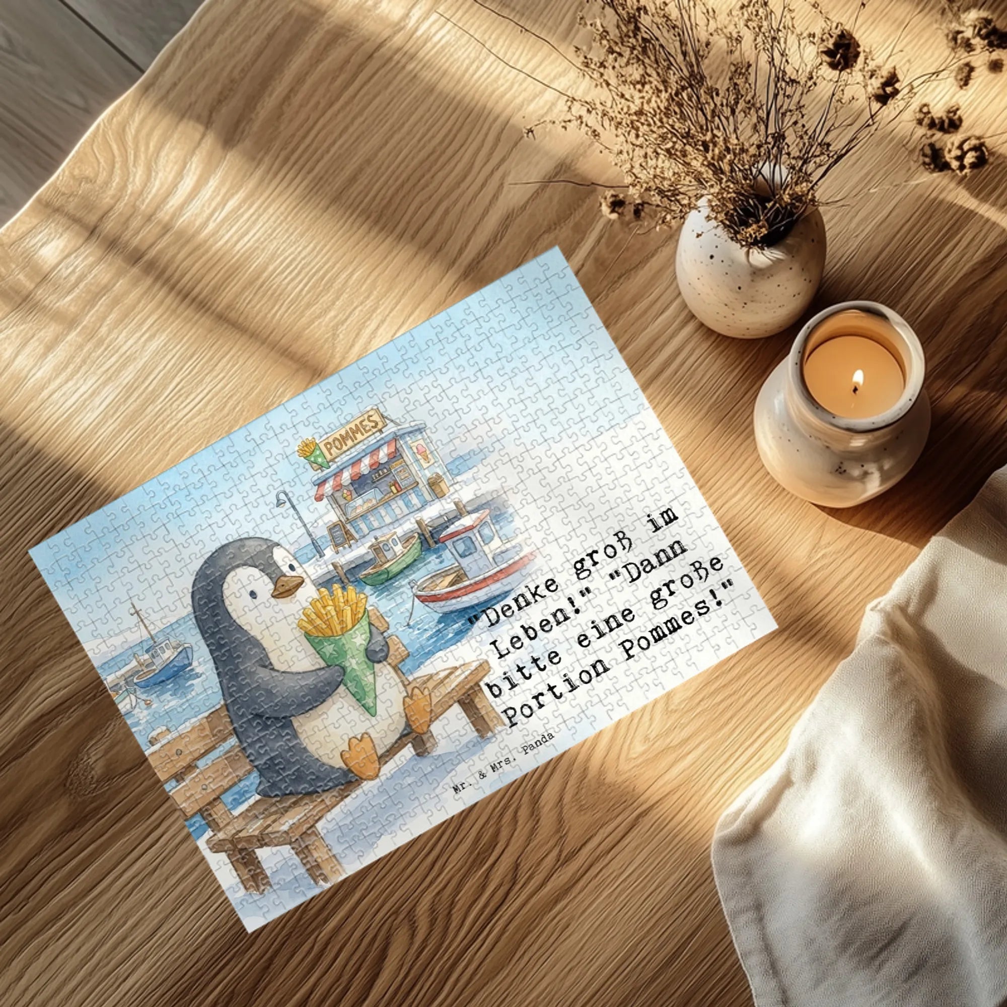 Puzzle Pinguin Pommestüte Design - 192 Teile - mit Spruch