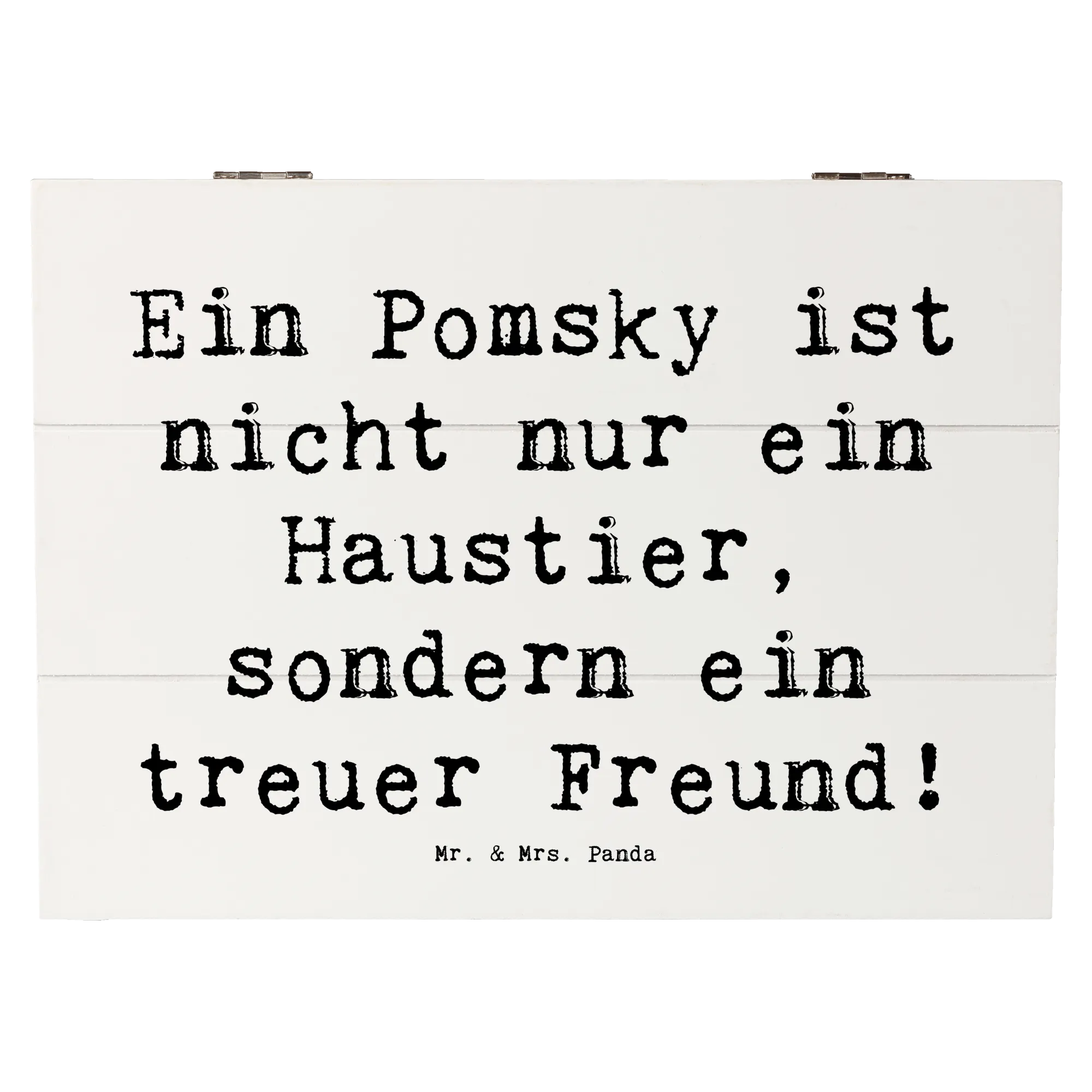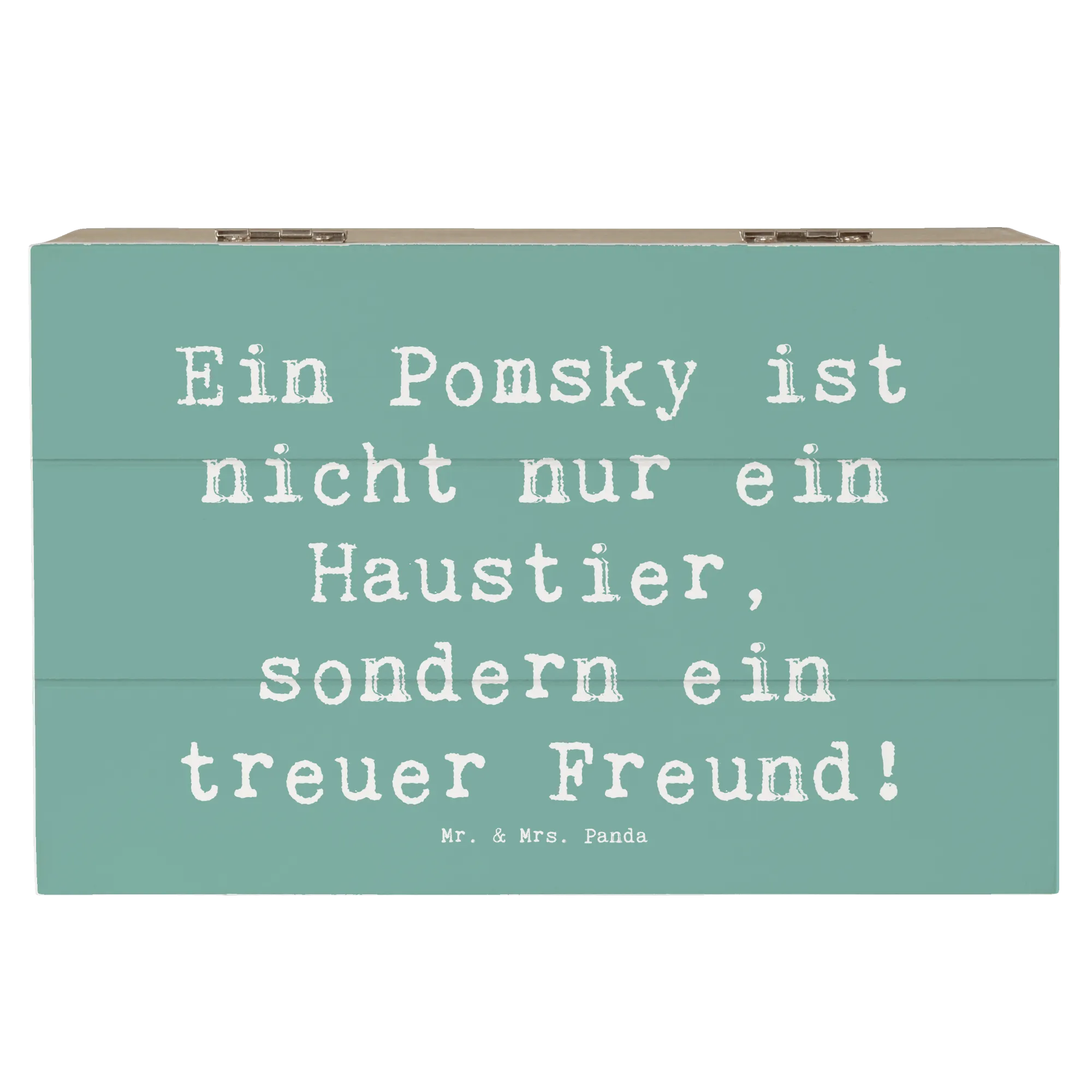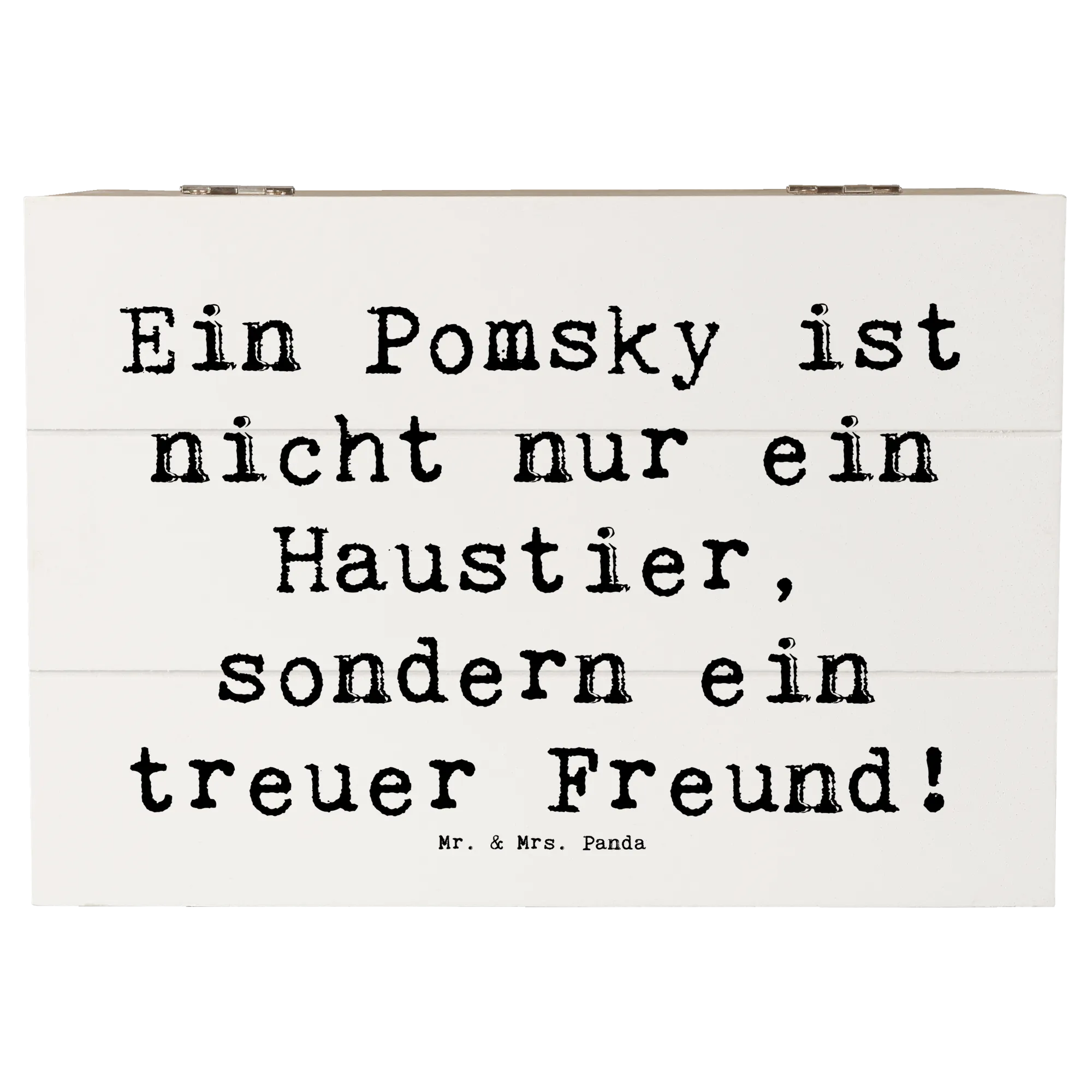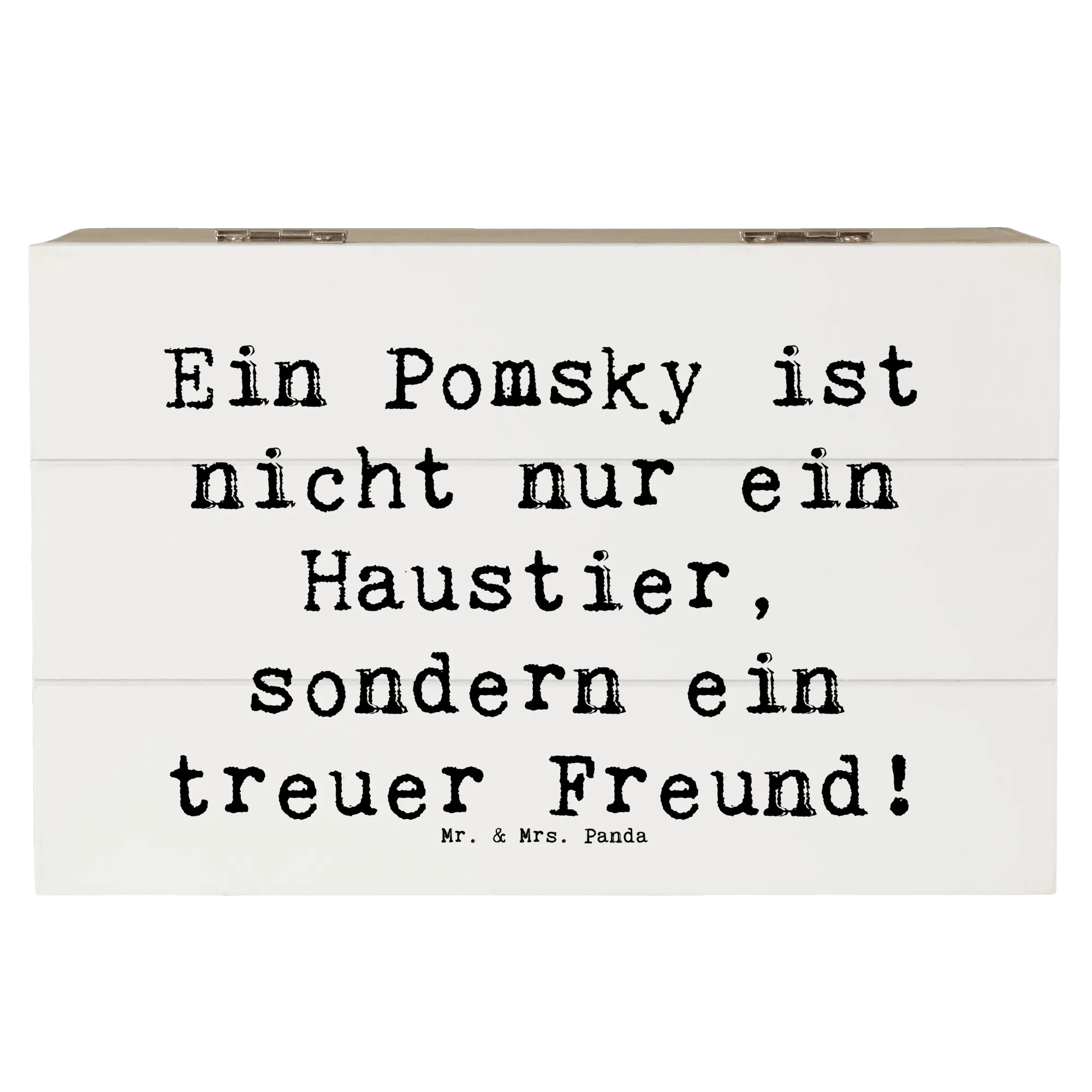 Wenn Du auf der Suche nach einem ganz besonderen Geschenk für einen Hundefan bist, dann ist die wunderschöne Holzkiste mit dem Pomsky-Motiv von Mr. & Mrs. Panda die perfekte Wahl! Diese liebevoll gestaltete Kiste ist nicht nur ein einfacher Aufbewahrungsort, sondern ein wahres Schmuckstück, das Erinnerungen für die Ewigkeit bewahrt. Der Spruch "Ein Pomsky ist nicht nur ein Haustier, sondern ein treuer Freund!" bringt die besondere Verbindung zwischen Mensch und Tier perfekt zum Ausdruck.