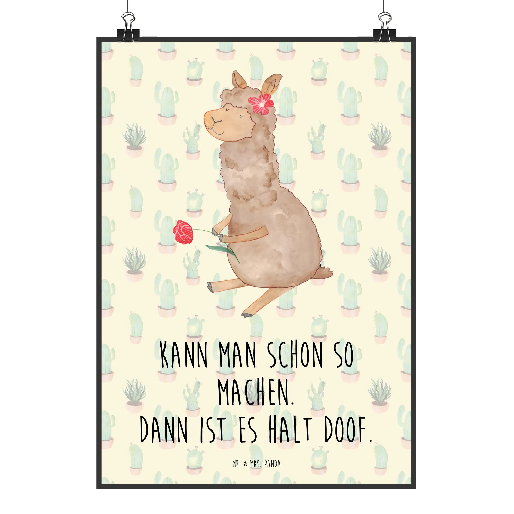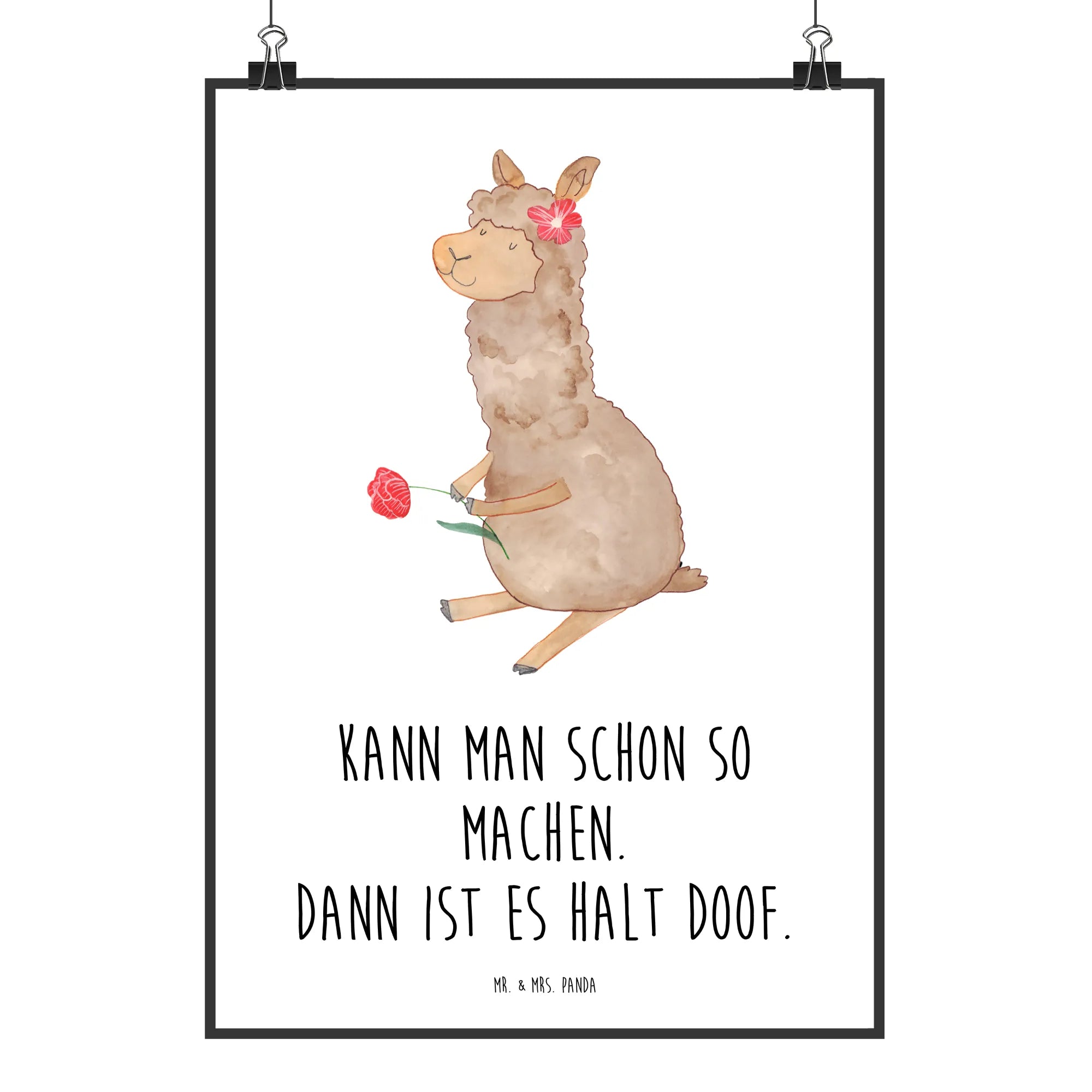 Handgezeichnet von Mrs. Panda, bringt dieses Poster mit einem flauschigen Alpaka und einer hübschen Blume im Haar genau die richtige Portion Freude und Lebensfreude in jeden Raum. Es erinnert dich daran, die kleinen Dinge im Leben zu schätzen und die Schönheit der Natur zu genießen.