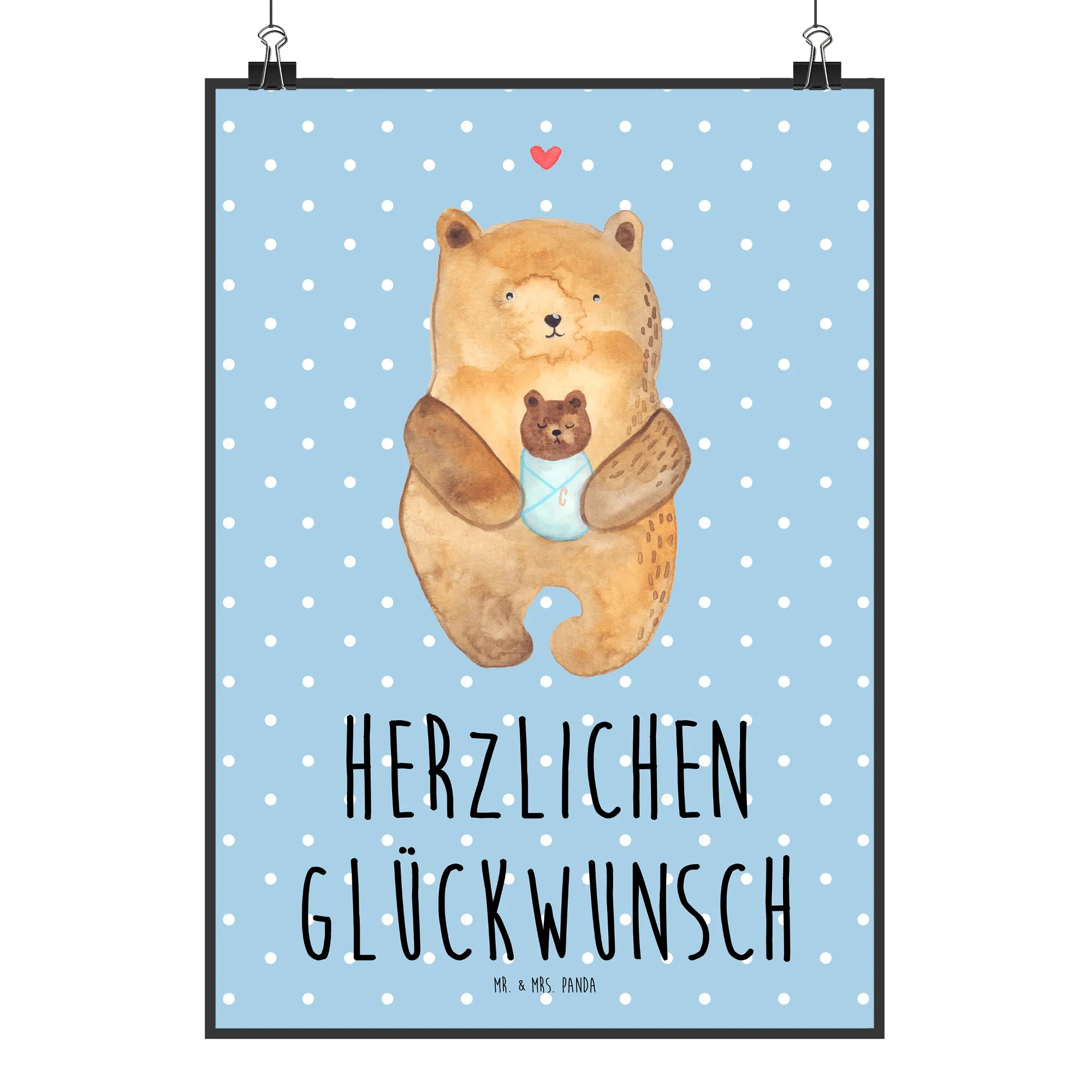 Das Mr. & Mrs. Panda Poster mit dem süßen Motiv "Bär mit Baby" ist das perfekte Geschenk für jeden Anlass. Ob zur Taufe, Geburt oder zum Geburtstag – dieses liebevoll gestaltete Poster bringt Freude in jedes Kinderzimmer oder ins Schlafzimmer. Der niedliche Bär, der sein Babybärchen in den Händen hält, ist nicht nur eine hübsche Wanddeko, sondern auch ein liebevoller Glückwunsch an werdende Eltern oder als Geschenk für das nächste Familienmitglied. Mit dem Slogan "Herzlichen Glückwunsch" wird dieses handgemalte Poster, das von Mrs. Panda mit viel Liebe entworfen wurde, zum ganz besonderen Hingucker in jeder Wohnung.