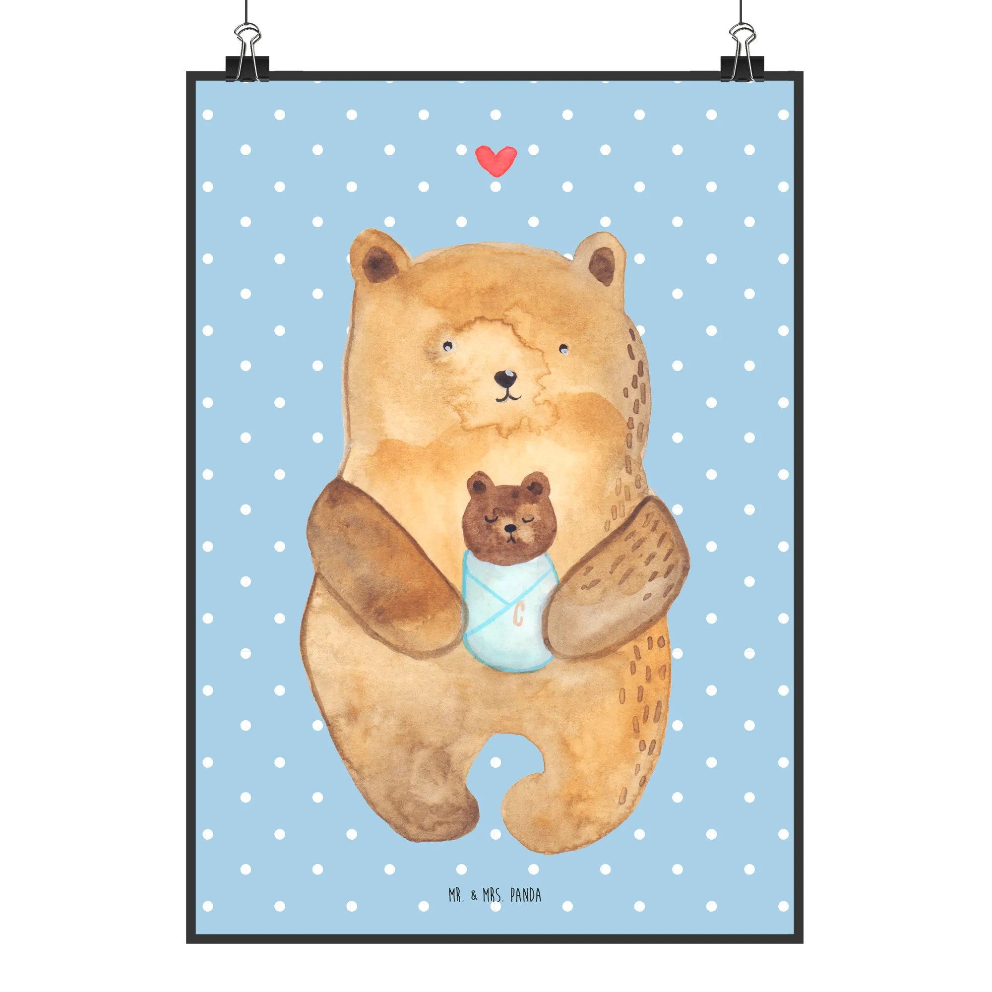 Das Poster mit dem süßen Motiv eines Bären mit Baby ist das perfekte Geschenk für alle, die das Besondere lieben! Wenn du auf der Suche nach einer niedlichen Wanddekoration bist, die dein Zuhause verschönert und gleichzeitig eine herzliche Botschaft transportiert, dann ist dieses handgemalte Poster von Mr. & Mrs. Panda genau das Richtige für dich.