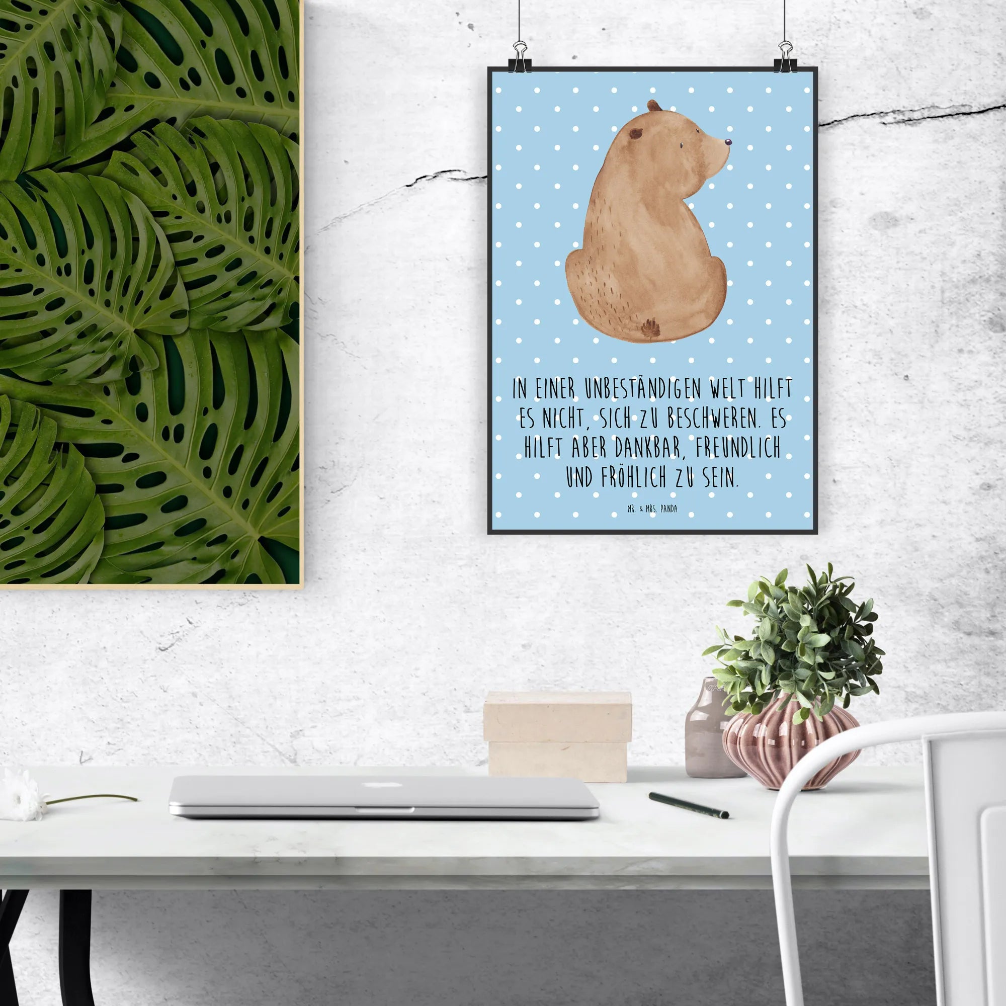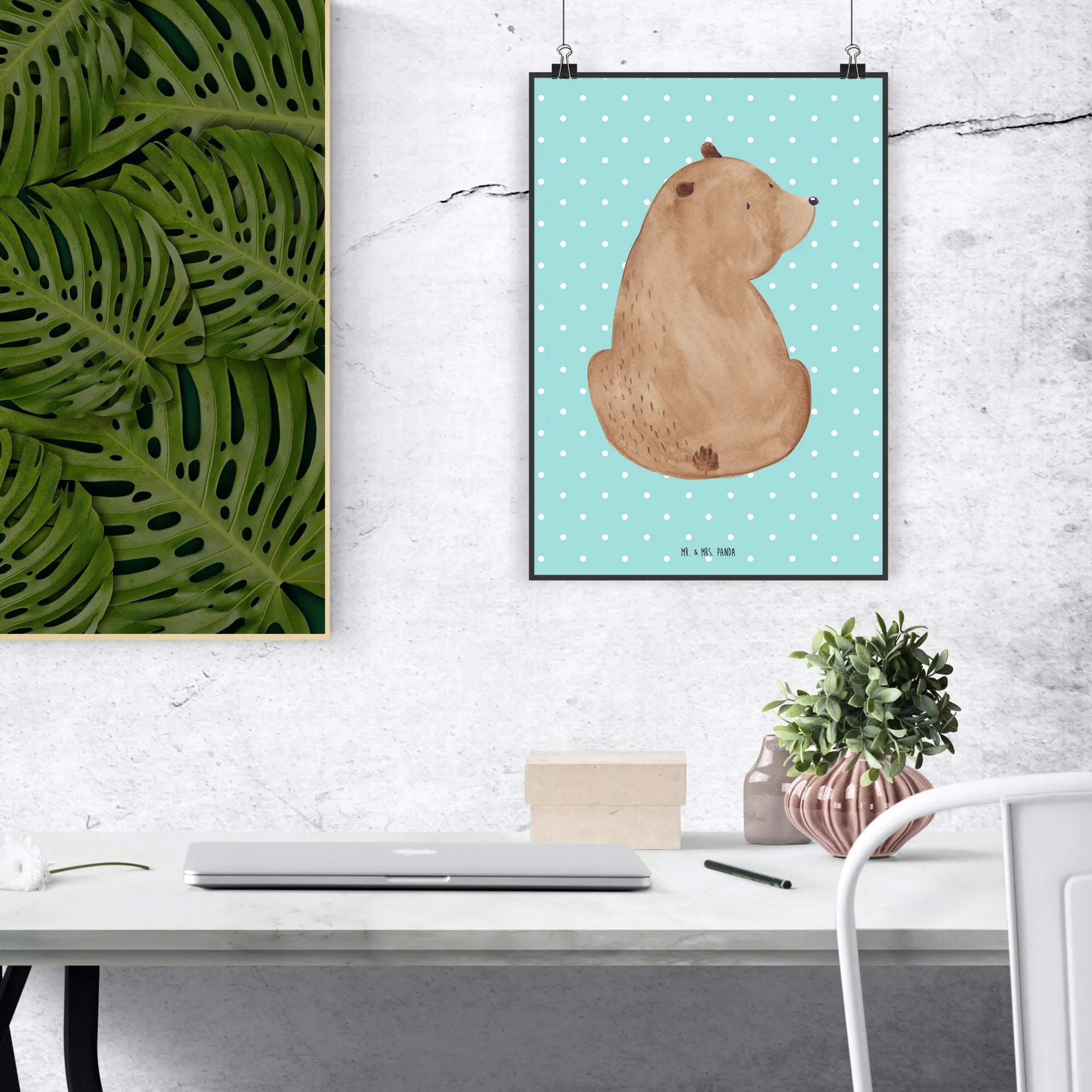 Eigenschaften auf einen Blick: Hochwertiger Kunstdruck mit brillanten Farben, sanfte, freundliche Illustration, ideal als Deko für Kinderzimmer und Wohnzimmer, Teil der liebevollen Bär Kollektion von Mr. & Mrs. Panda.