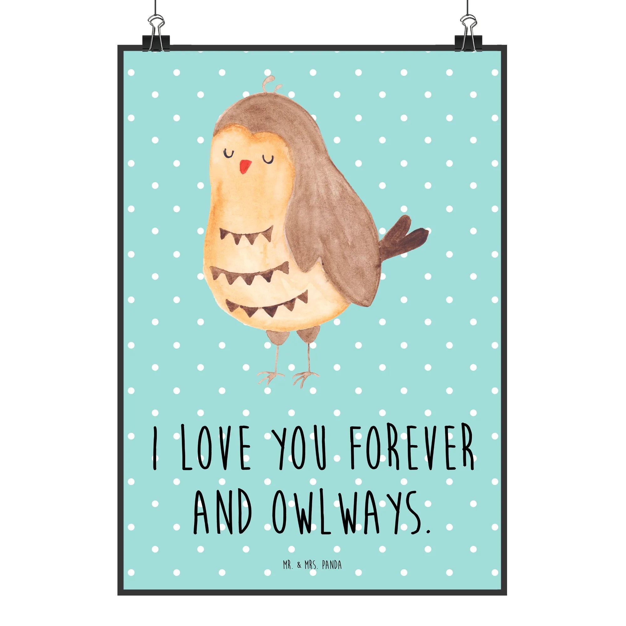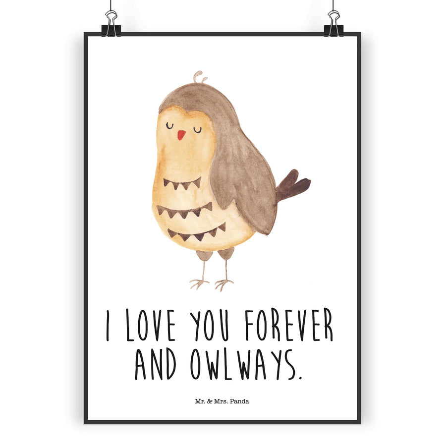 Perfekt als Geschenk für Eulen-Liebhaber oder als liebevolle Überraschung zum Hochzeitstag – mit dieser Wanddeko kannst du ganz einfach Freude schenken! Ob zur Renovierung deines eigenen Zuhauses oder zur Gestaltung eines neuen Raumes, dieses Kunstdruck wird schnell zum Herzstück deiner Wanddekoration. Das Poster von Mr. & Mrs. Panda ist in verschiedenen Formaten erhältlich und besteht aus stabilem Papier, wodurch die edlen Farben auch nach langem Betrachten strahlen.