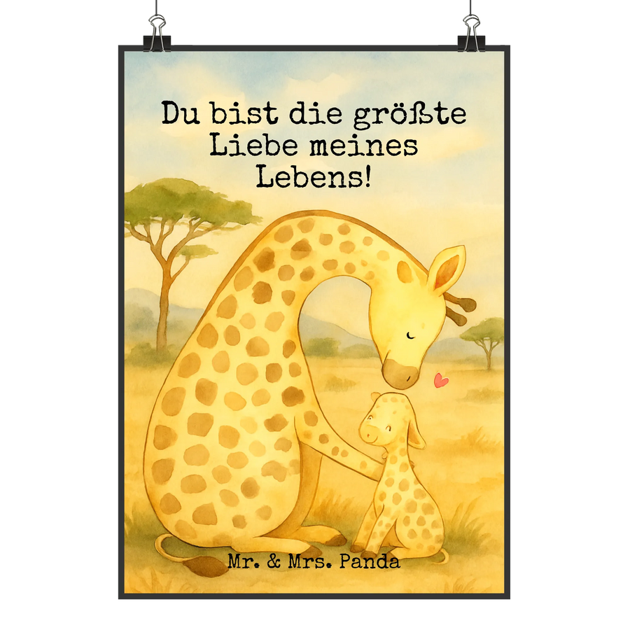 In dieser charmanten Szene sehen wir eine Mama-Giraffe, die liebevoll ihr Kind auf dem Kopf küsst. Diese zärtliche Geste bringt zum Ausdruck, wie wichtig solche kleinen Momente im Leben sind. Das Motto 'Du bist die größte Liebe meines Lebens!' beschreibt perfekt die herzliche Bindung zwischen Mutter und Kind. Giraffen stehen nicht nur für Anmut, sondern auch für die besonderen Beziehungen, die wir zu unseren Lieblingsmenschen haben. Es ist diese bedingungslose Liebe, die uns stark macht und uns durch die Höhen und Tiefen des Lebens trägt. Dieses Motiv ist eine wunderschöne Erinnerung daran, dass es die kleinen Dinge sind, die unser Leben bereichern, und dass die Liebe zu unseren Kindern unbezahlbar ist. Lass dich von der Freude und dem Lächeln der beiden Giraffen inspirieren und erinnere dich daran, wie wichtig es ist, diese kostbaren Augenblicke festzuhalten.