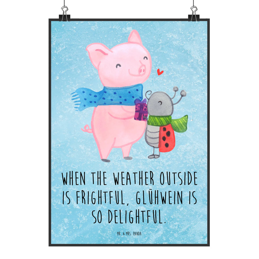 Das Glühschwein mit seinem festlichen blauen Schal und der entzückende Marienkäfer in seinem grünen Schal strahlen pure Freude aus. Sie stehen zusammen und genießen unseren heiß geliebten Glühwein, während über ihnen ein rotes Herz für Freundschaft schwebt. Ihr Motto „When the weather outside is frightful, Glühwein is so delightful“ könnte nicht passender sein. Diese liebevolle Illustration ist perfekt für alle, die die kühleren Monate mit einem warmen, herzlichen Gefühl feiern möchten. Ob als Geschenk oder für dein Zuhause, diese Szenerie erinnert uns an die Bedeutung von Gemeinschaft und Gemütlichkeit. Lass den Alltag hinter dir und genieße die kleinen Freuden des Lebens!