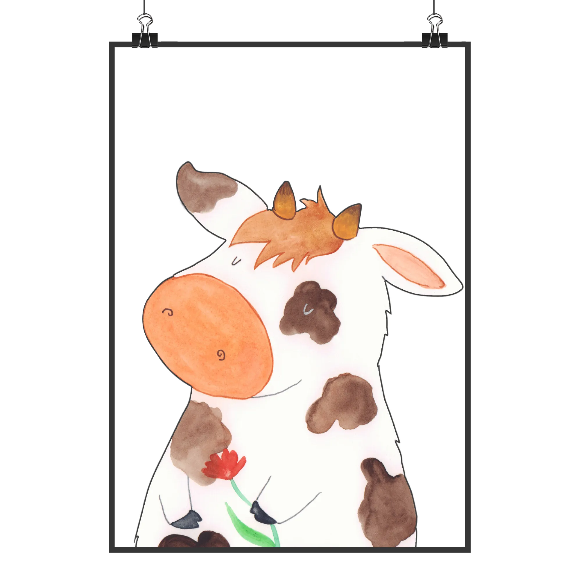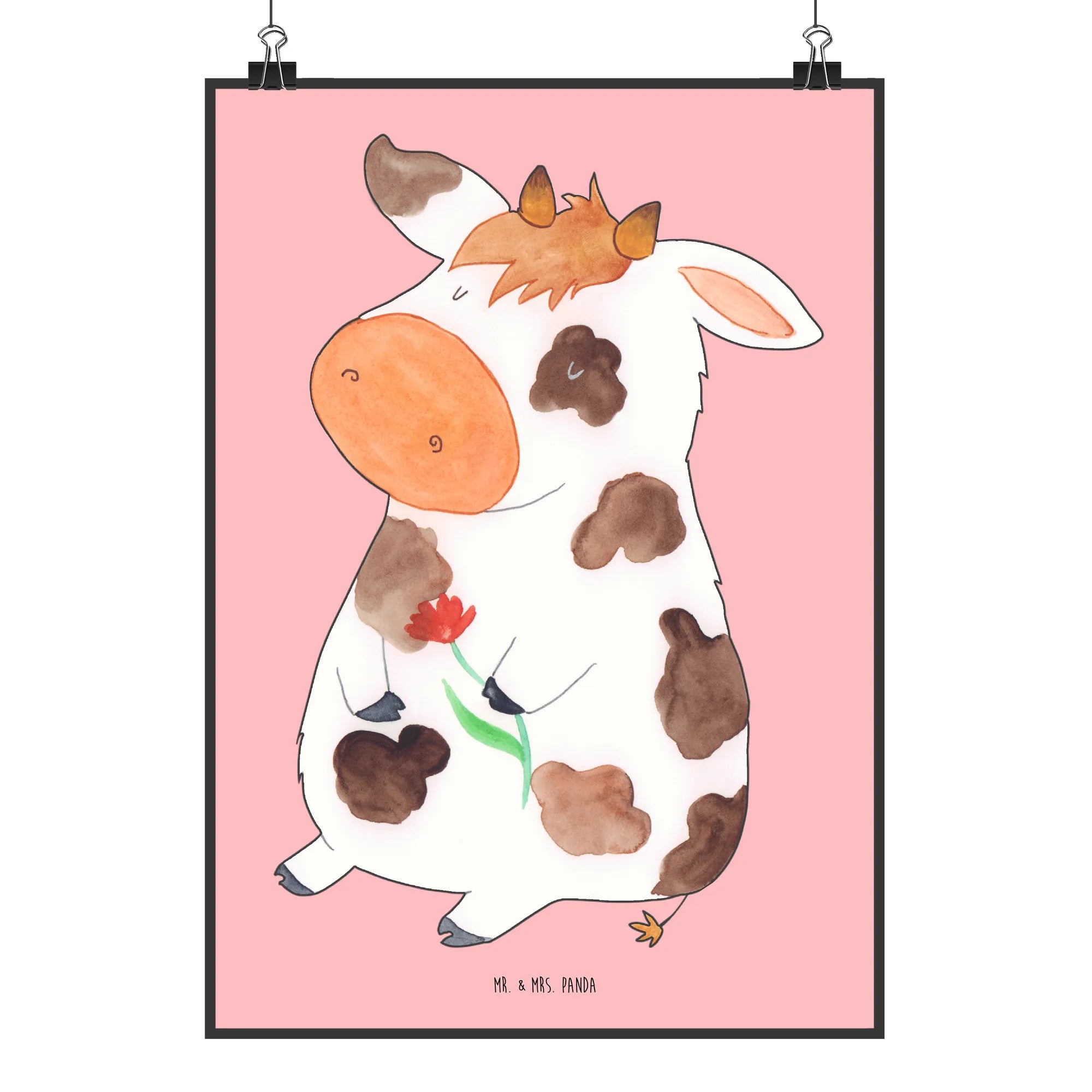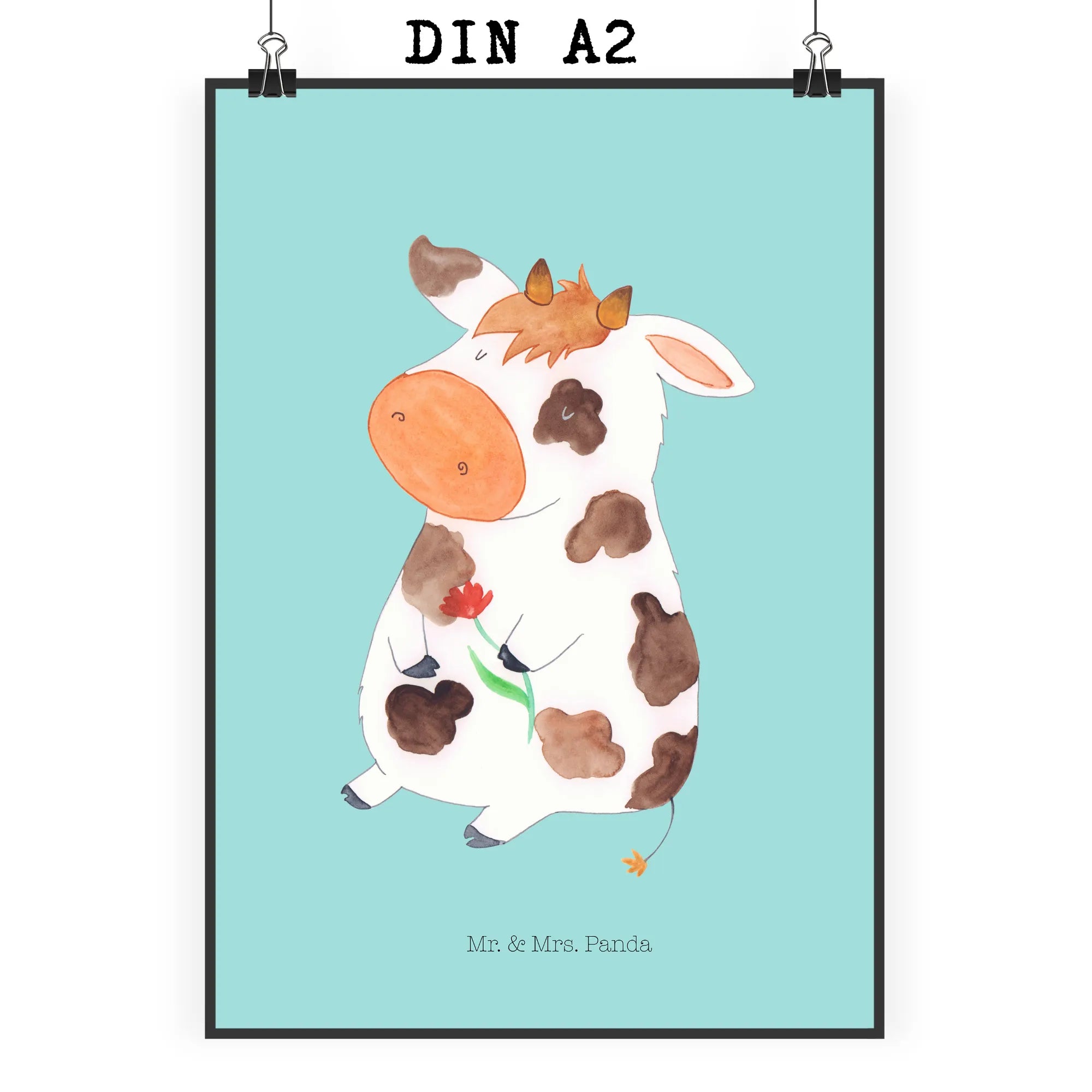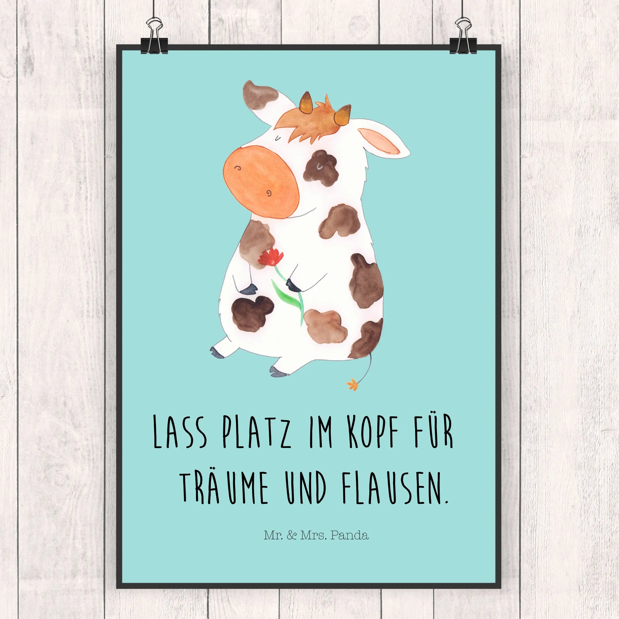 Vielfalt ist Trumpf in der Bauernhof Kollektion von Mr. & Mrs. Panda! Unsere Designs zeigen liebevoll handgemalte Motive, die Kinder- und Erwachsenenherzen höherschlagen lassen. Dieses Poster zeigt eine süße Kuh, die stolz mit einer Blume in der Hand posiert und somit den perfekten Akzent für jedes Kinderzimmer oder Klassenzimmer setzt. Der alltagsnahe Spruch auf dem Poster motiviert dazu, die eigene Fantasie und Kreativität auszuleben.