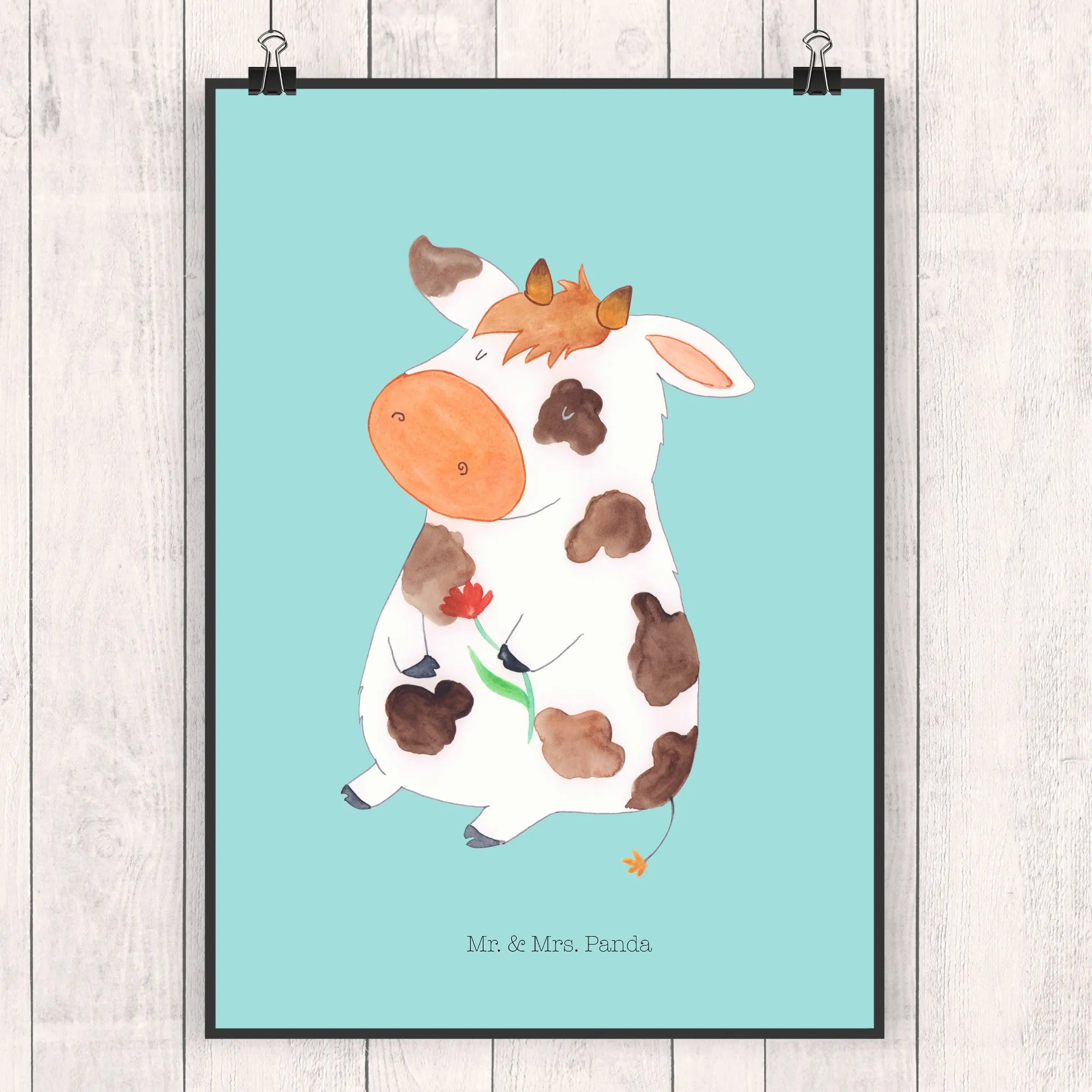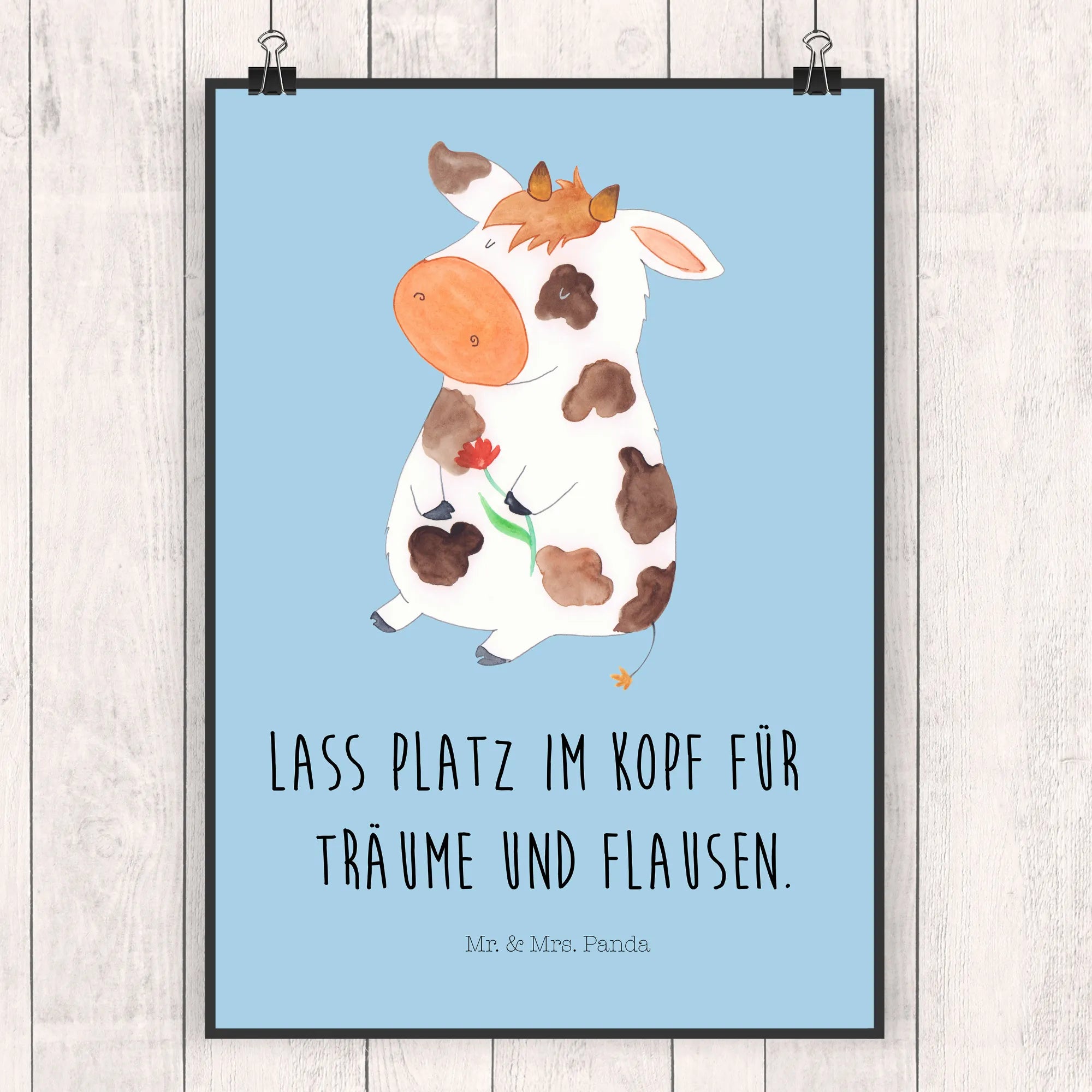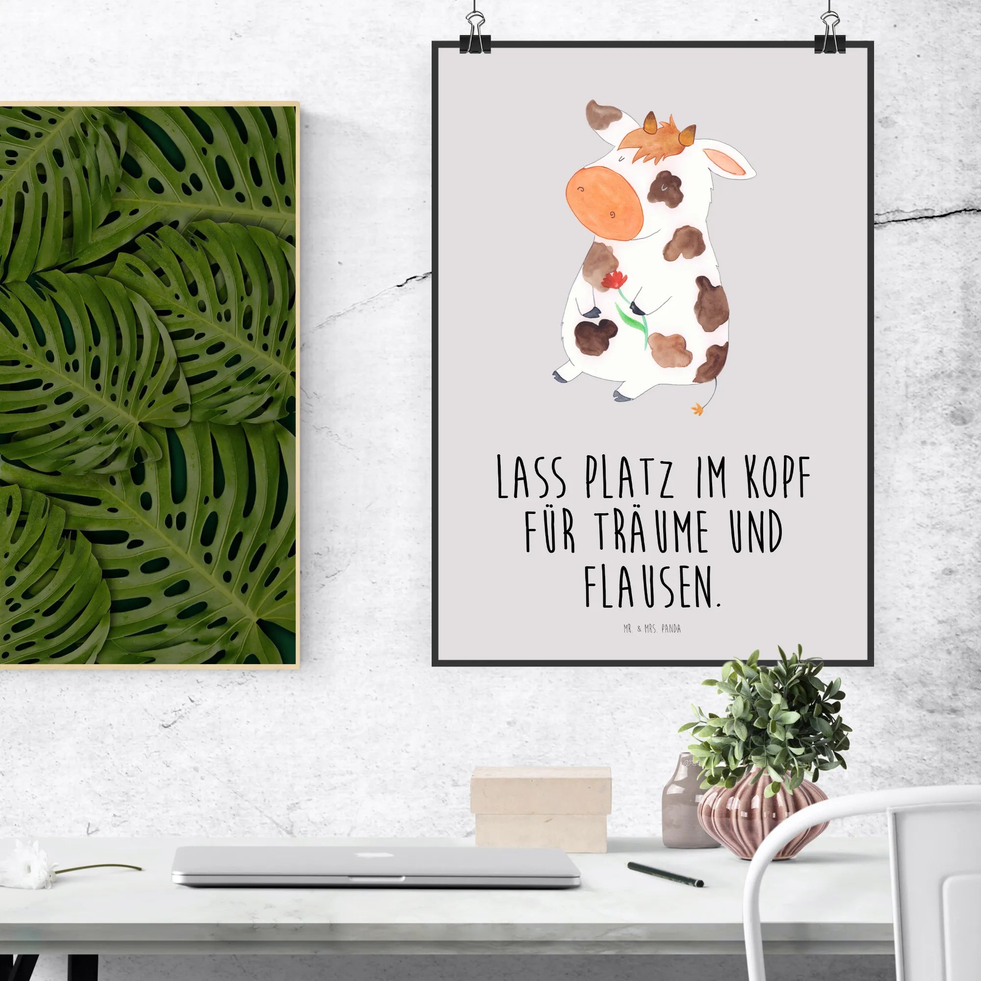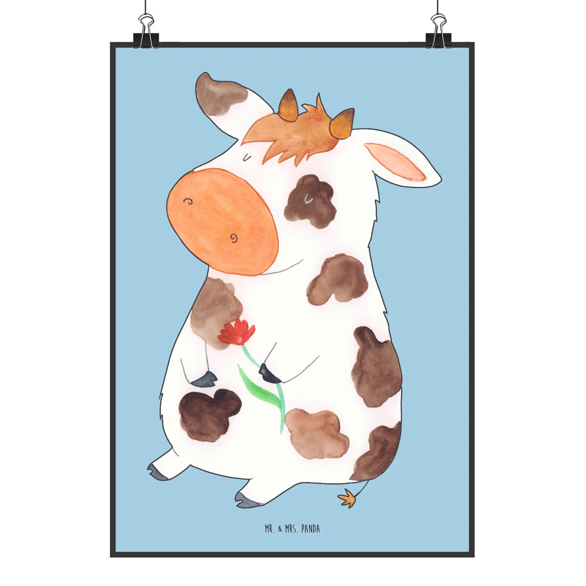 Vielfalt ist Trumpf in der Bauernhof Kollektion von Mr. & Mrs. Panda! Unsere Designs zeigen liebevoll handgemalte Motive, die Kinder- und Erwachsenenherzen höherschlagen lassen. Dieses Poster zeigt eine süße Kuh, die stolz mit einer Blume in der Hand posiert und somit den perfekten Akzent für jedes Kinderzimmer oder Klassenzimmer setzt. Der alltagsnahe Spruch auf dem Poster motiviert dazu, die eigene Fantasie und Kreativität auszuleben.
