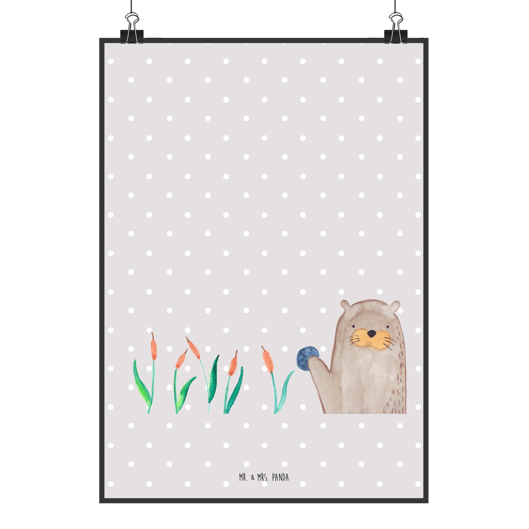 Entdecke das wunderschöne Poster "Otter mit Stein" aus der fantastischen Otter - Kollektion von Mr. & Mrs. Panda! Dieses liebevoll handgemalte Poster zeigt einen tollen Seeotter, der seinen wertvollen Kieselstein stolz in die Höhe hält.