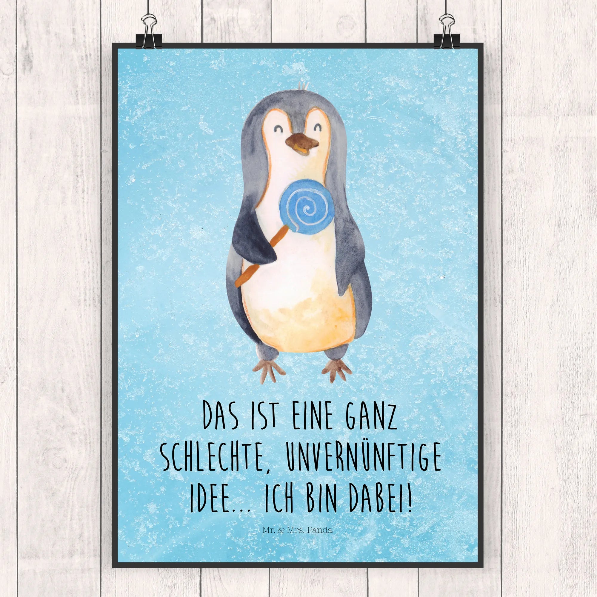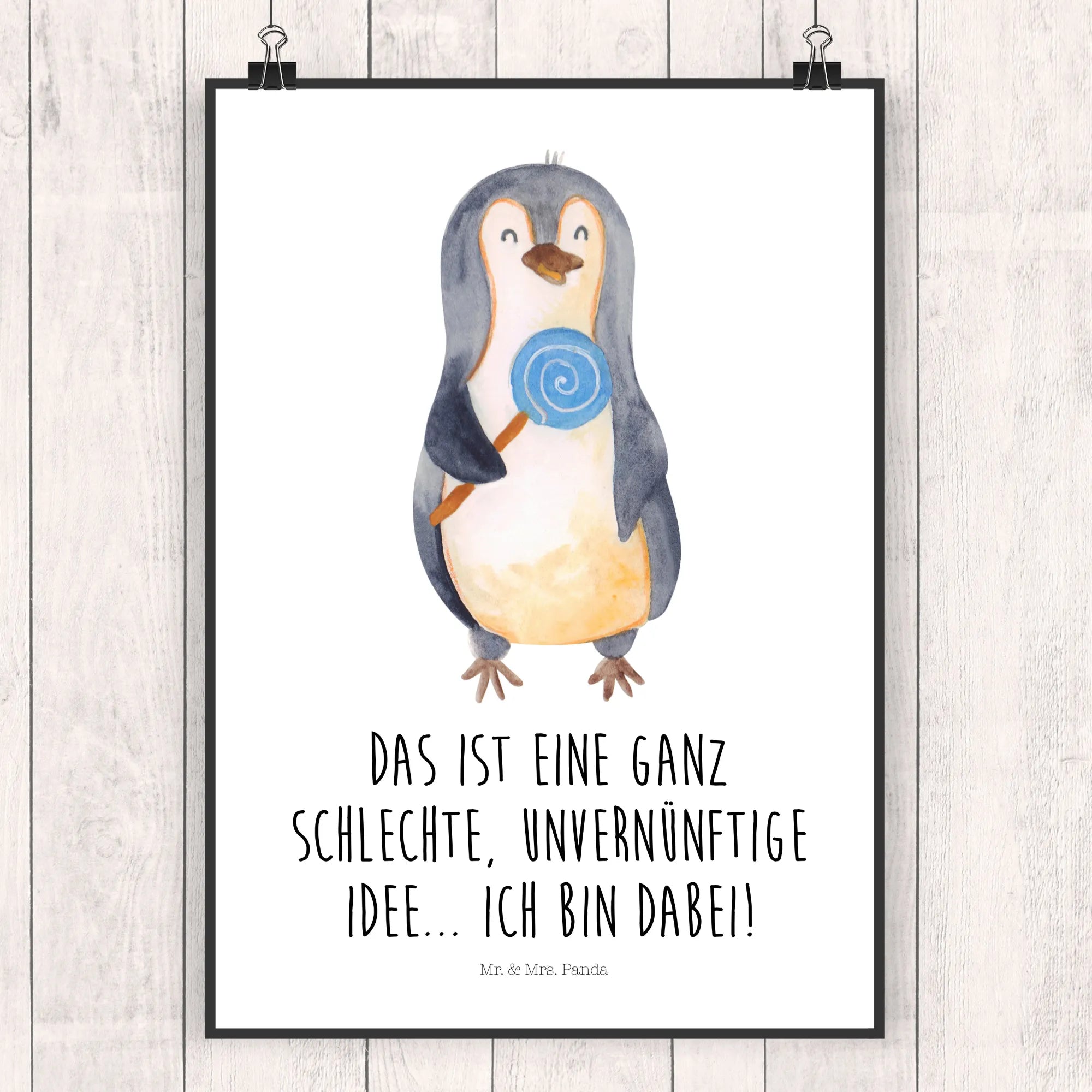 Entdecke unser neues Poster aus der Pinguin-Kollektion von Mr. & Mrs. Panda! Mit dem putzigen Motiv des Pinguin Lollis zauberst Du jedem ein Lächeln ins Gesicht. Der süße kleine Pinguin hält stolz seinen Lieblingslutscher in der Hand und schaut mit seinen aufmerksamen Augen direkt in Dein Herz. Mit dem Spruch 'Das ist eine ganz schlechte, unvernünftige Idee... Ich bin dabei!' ist dieses Poster nicht nur ein echter Blickfang, sondern auch eine tolle Erinnerung daran, manchmal auch unvernünftig sein zu dürfen!