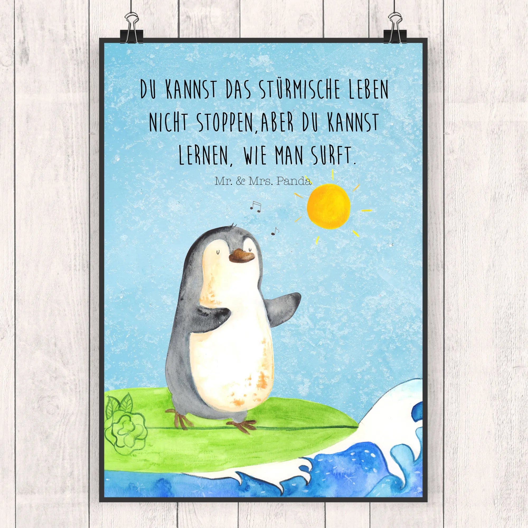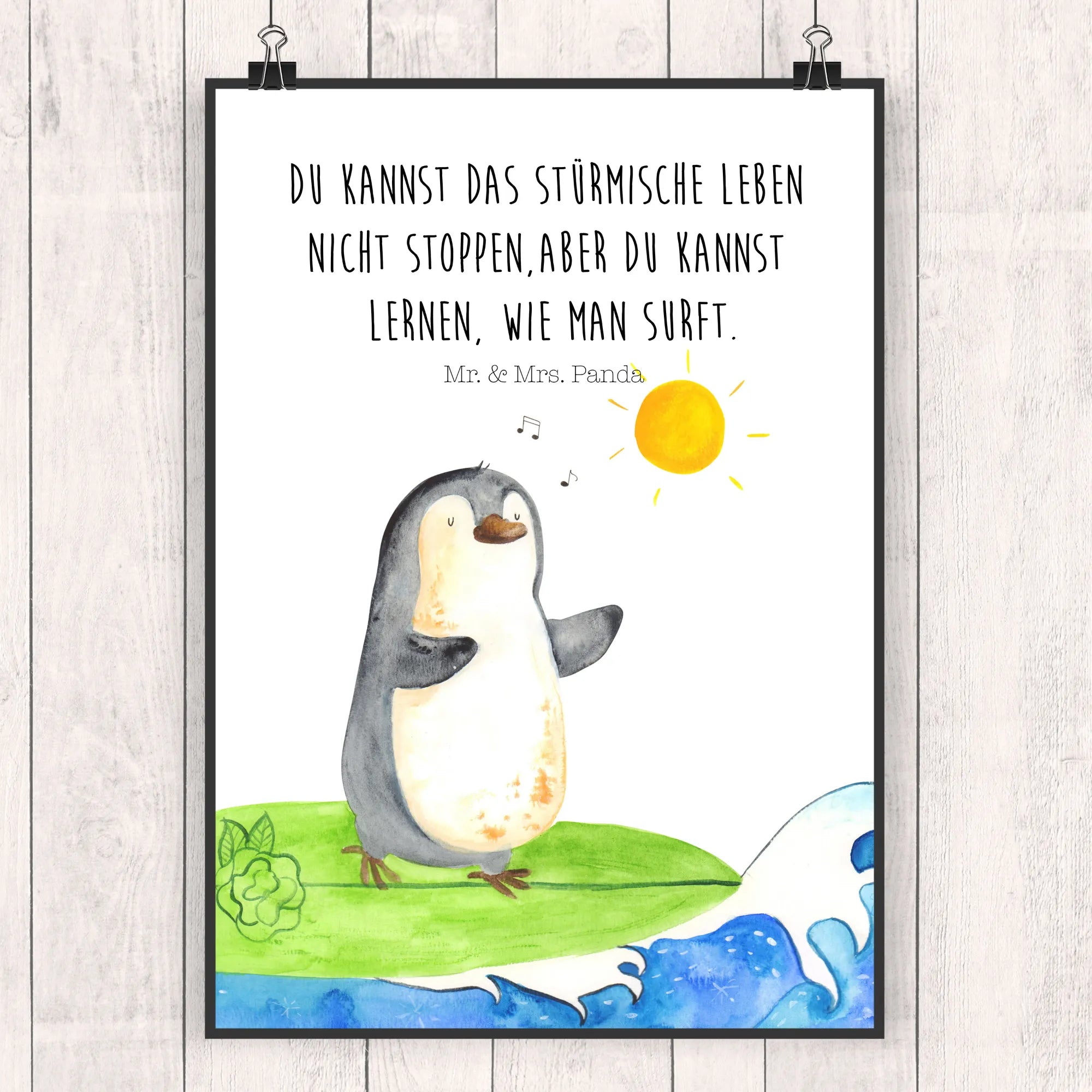Entdecke das zauberhafte Poster Pinguin Surfer aus der einzigartigen Pinguin - Kollektion von Mr. & Mrs. Panda. Dieses wunderbare Kunstwerk bringt nicht nur Farbe in dein Zuhause, sondern auch eine Portion Lebensfreude und Inspiration!