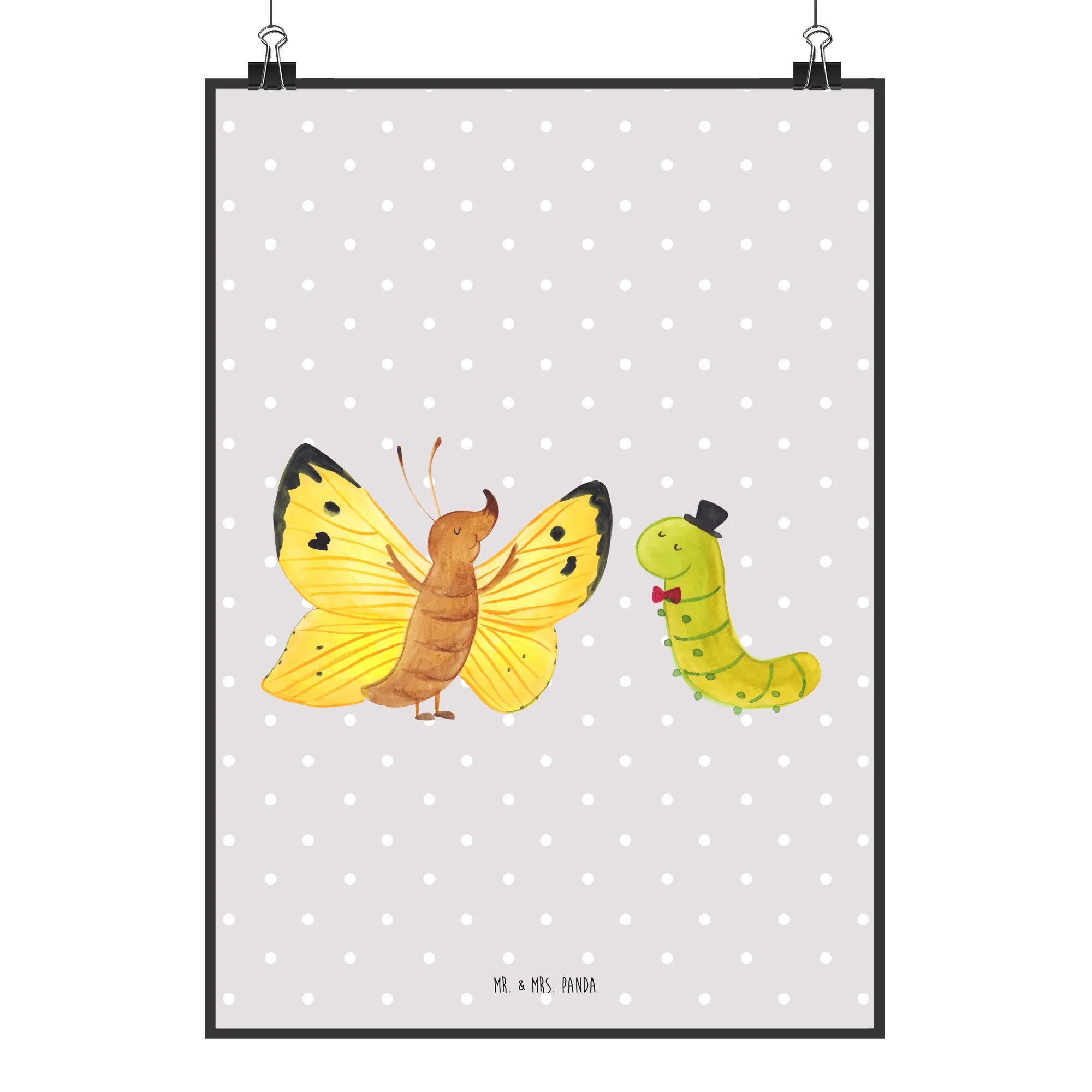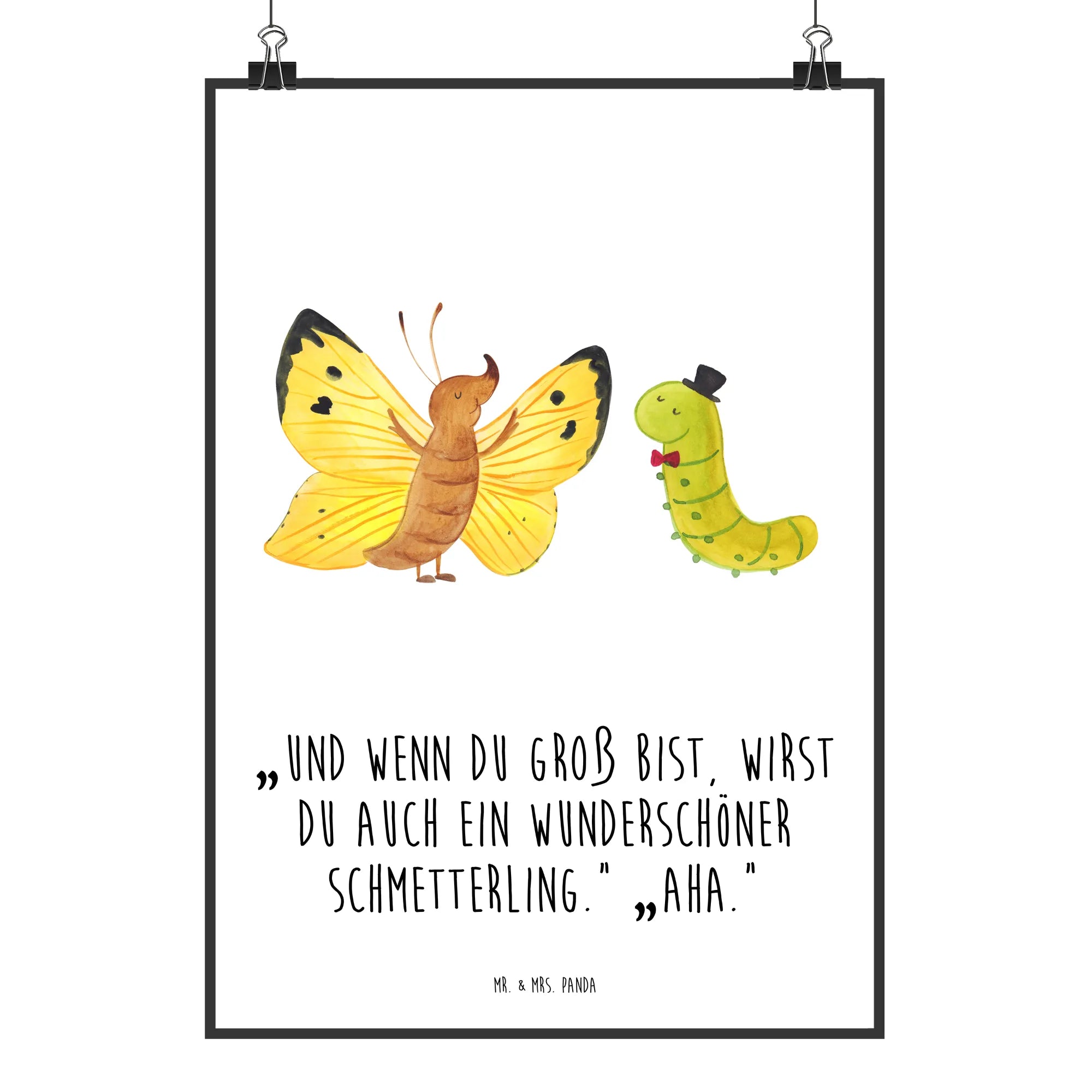 Poster Raupe Schmetterling - DIN A0 - mit Spruch - Weiß