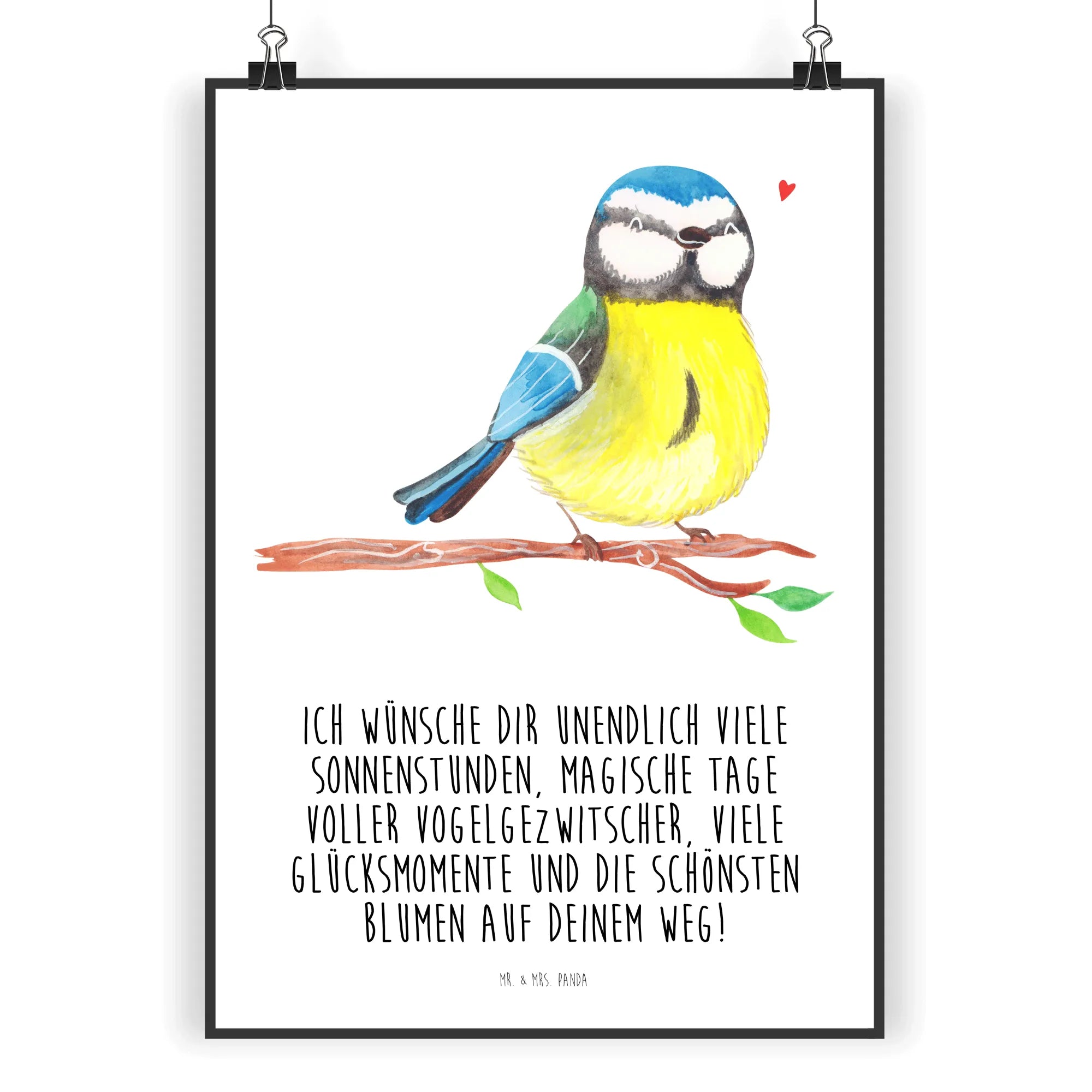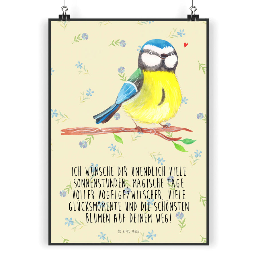 Das Mr. & Mrs. Panda Poster Vogel Blaumeise ist das perfekte Geschenk für die Frühlingszeit und zu Ostern! Mit seinem fröhlichen Motiv, auf dem die kleine Blaumeise auf einem Ast sitzt, zaubert es ein Lächeln ins Gesicht jedes Betrachters. Dieses handgemalte Poster ist ein tolles Stück Wanddekoration, das ideal für das Kinderzimmer, das Schlafzimmer oder sogar das Klassenzimmer geeignet ist. Es bringt nicht nur Farbe in den Raum, sondern auch die lieben Wünsche: "Ich wünsche dir unendlich viele Sonnenstunden, magische Tage voller Vogelgezwitscher, viele Glücksmomente und die schönsten Blumen auf deinem Weg!".