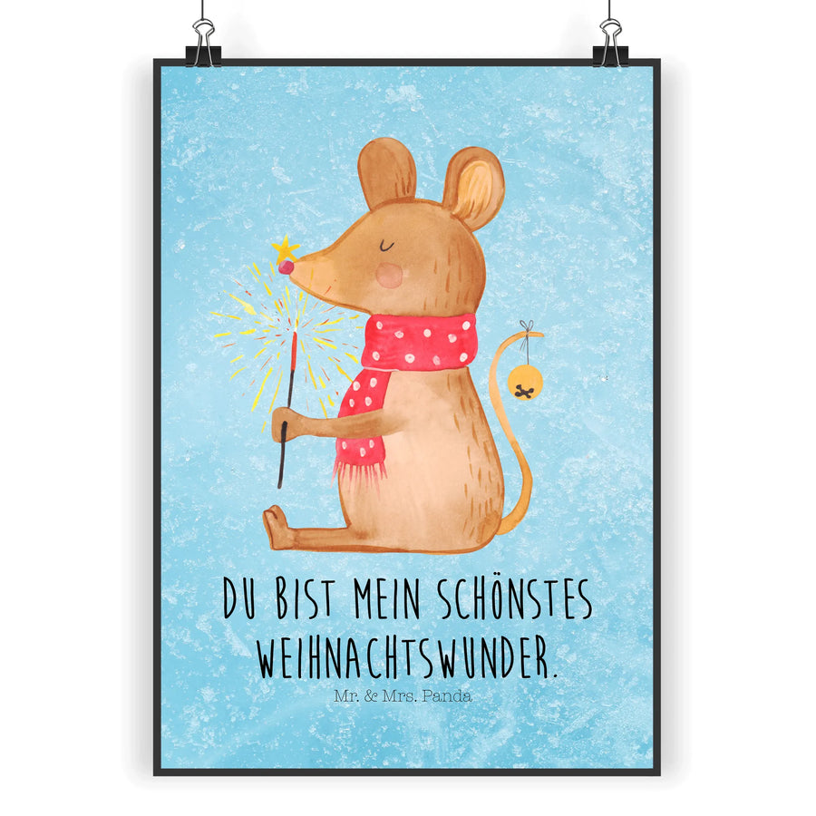 Poster Maus Weihnachten - DIN A0 - mit Spruch - Eisblau