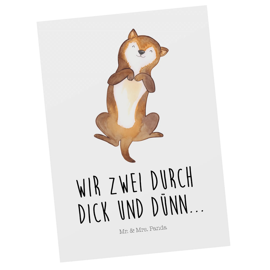 Diese Postkarte ist aus hochwertigem Karton gefertigt, der nicht nur langlebig ist, sondern auch für einen langen Erhalt deiner Botschaft sorgt. Mit dem Slogan "Wir zwei durch dick und dünn..." wird das besondere Band zwischen dir und deinem vierbeinigen Freund wunderbar in Szene gesetzt.