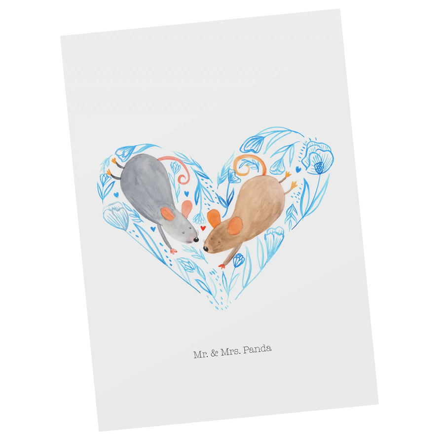 Die Postkarte "Mäuse Herz" aus der liebevollen Kollektion von Mr. & Mrs. Panda ist das ideale Geschenk für all jene, die ihre Zuneigung auf besonders süße Art und Weise ausdrücken möchten. Diese einzigartige Karte zeigt zwei niedliche Mäuse, die in die Form eines Herzens angeordnet sind und symbolisiert damit die wunderschöne Verbundenheit, die du mit deinem Partner teilst.