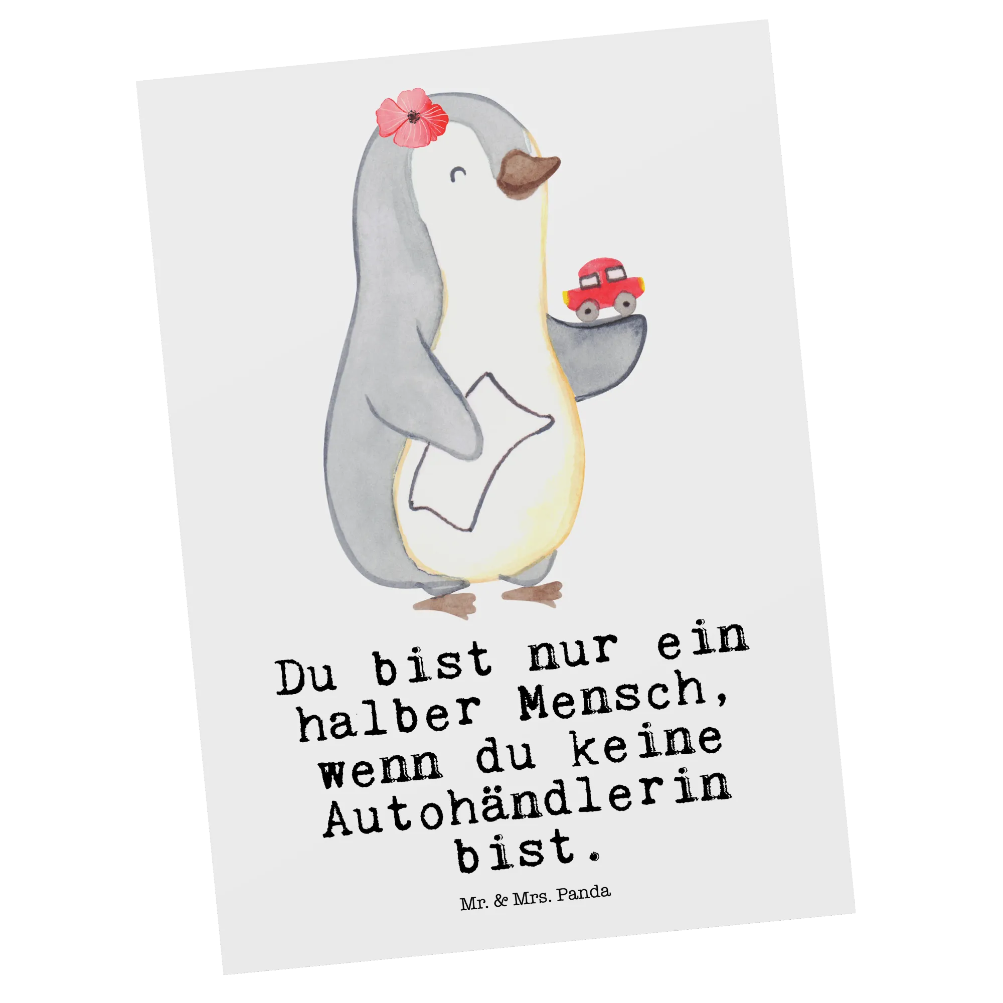 Postkarte Autohändlerin mit Herz - mit Spruch - Weiß
