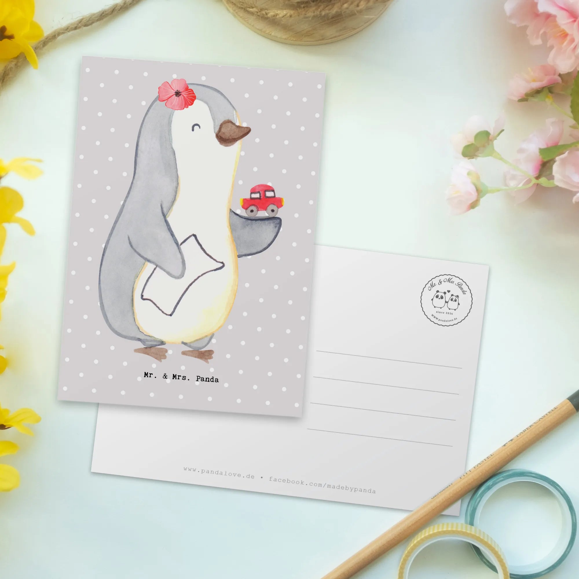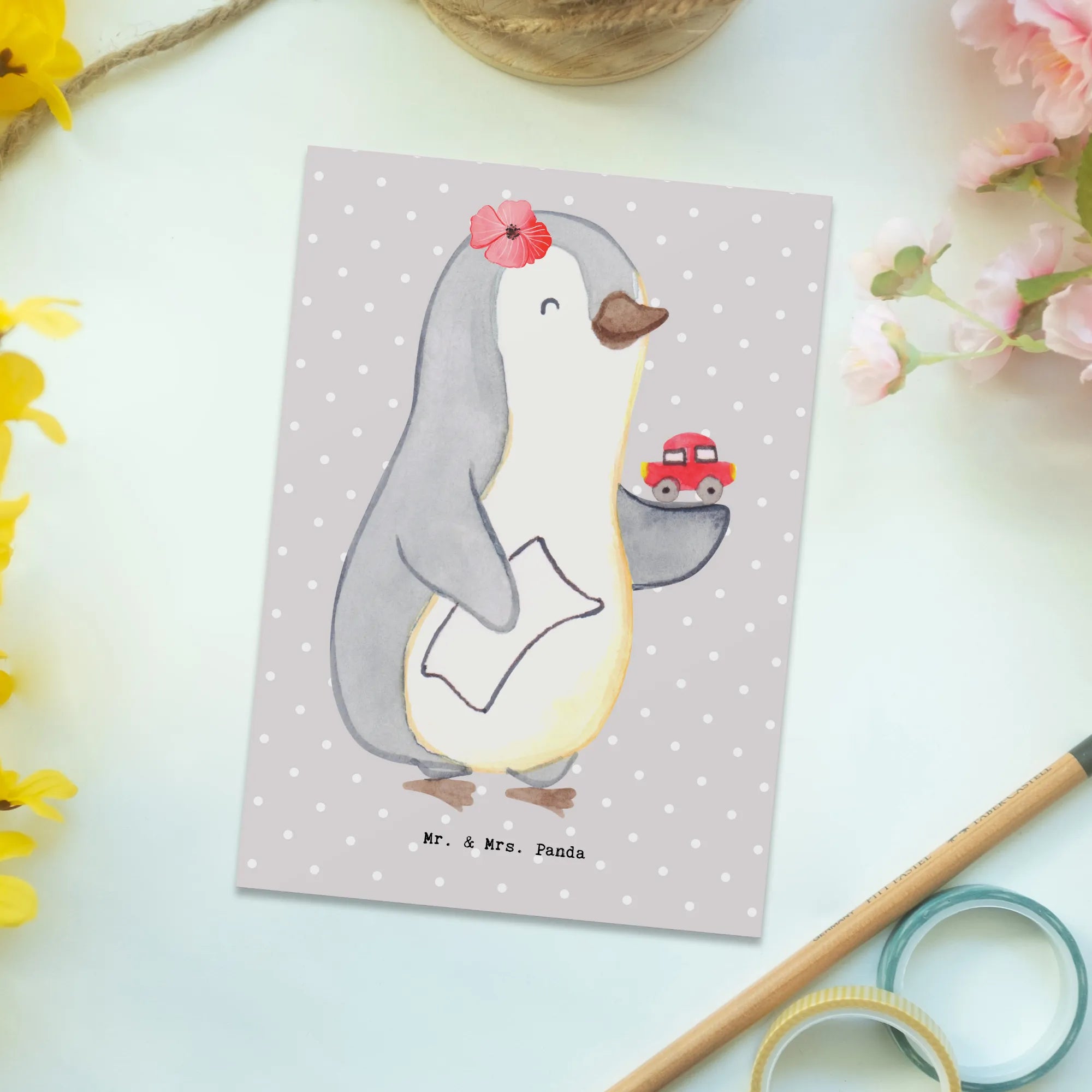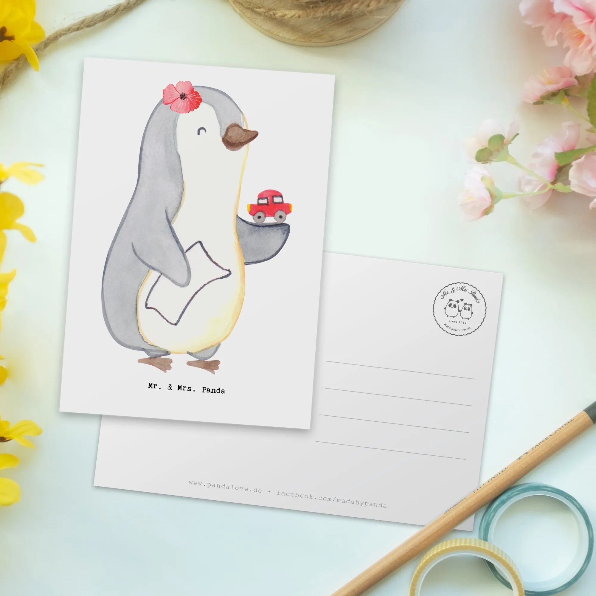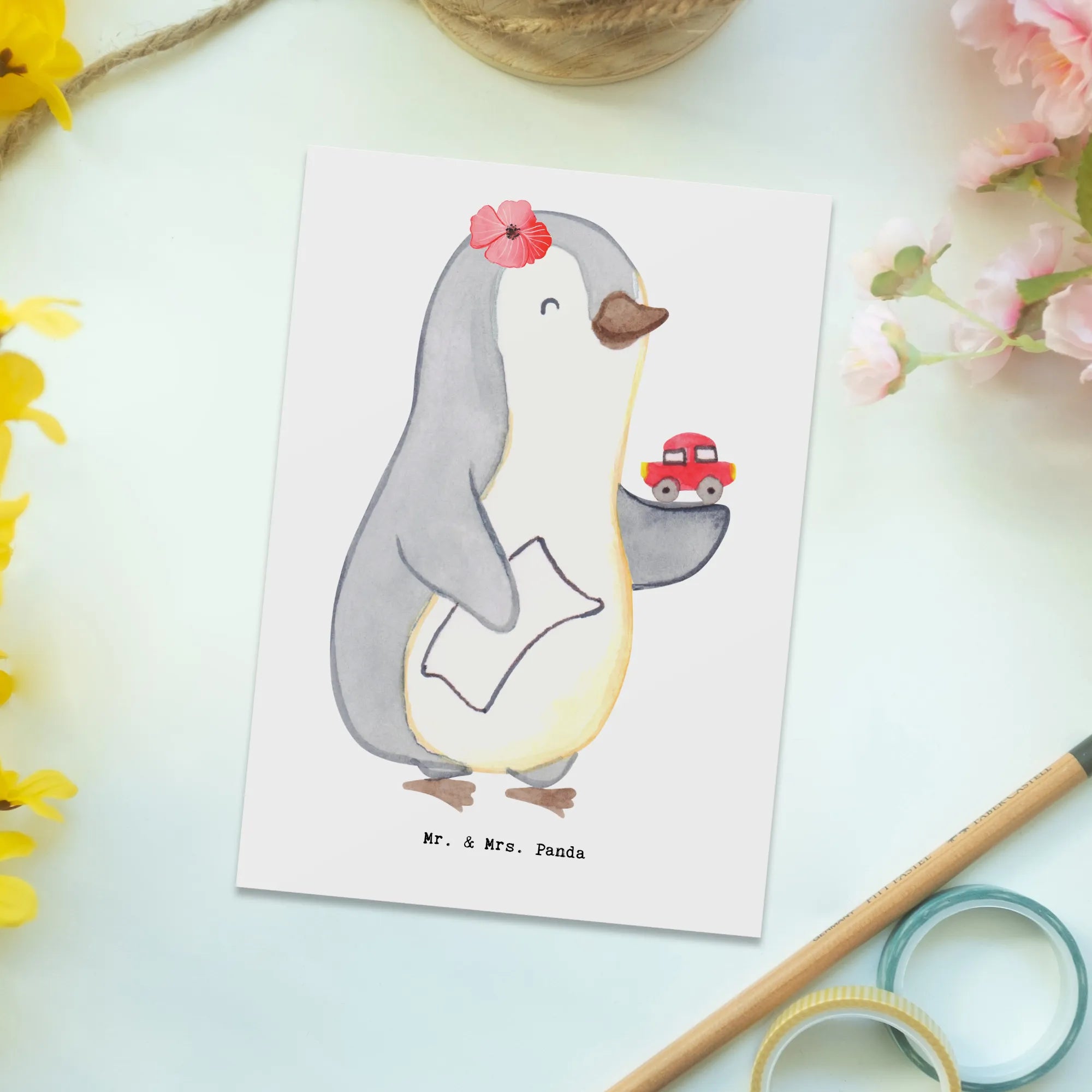 Autohändlerin mit Herz – süßer Pinguin mit Akten & Spielzeugauto zur Eröffnung Autohaus, ideales Geschenk & Dekoration
