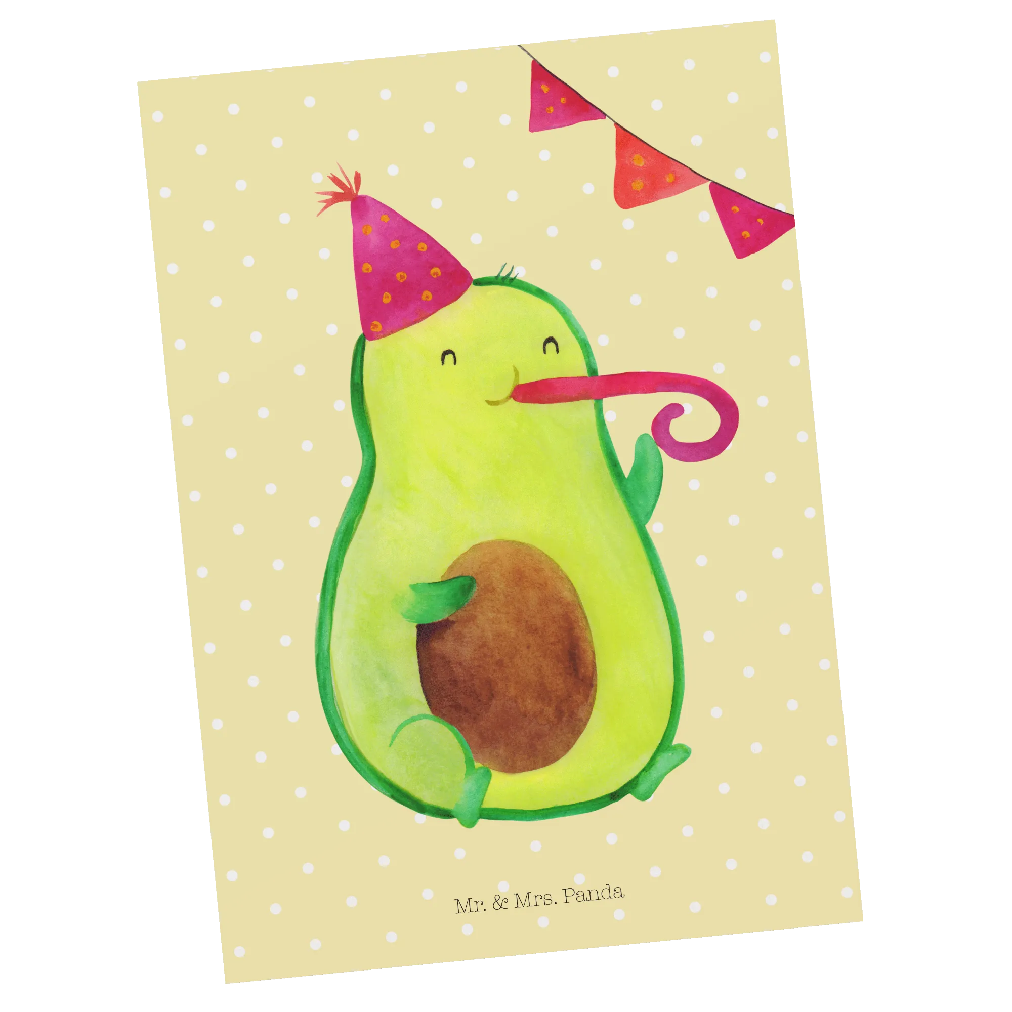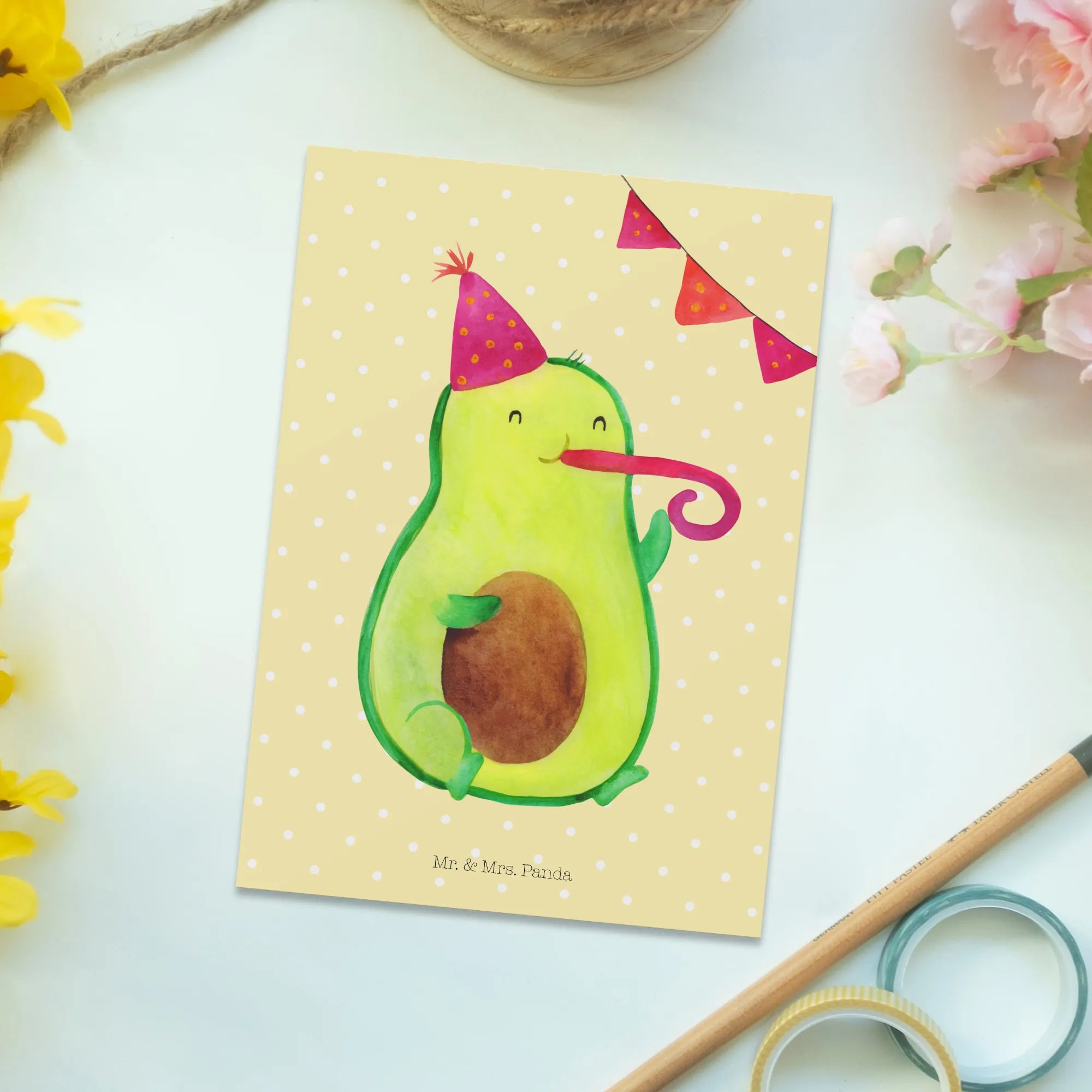 Postkarte Avocado Party - mit Spruch - Gelb Pastell