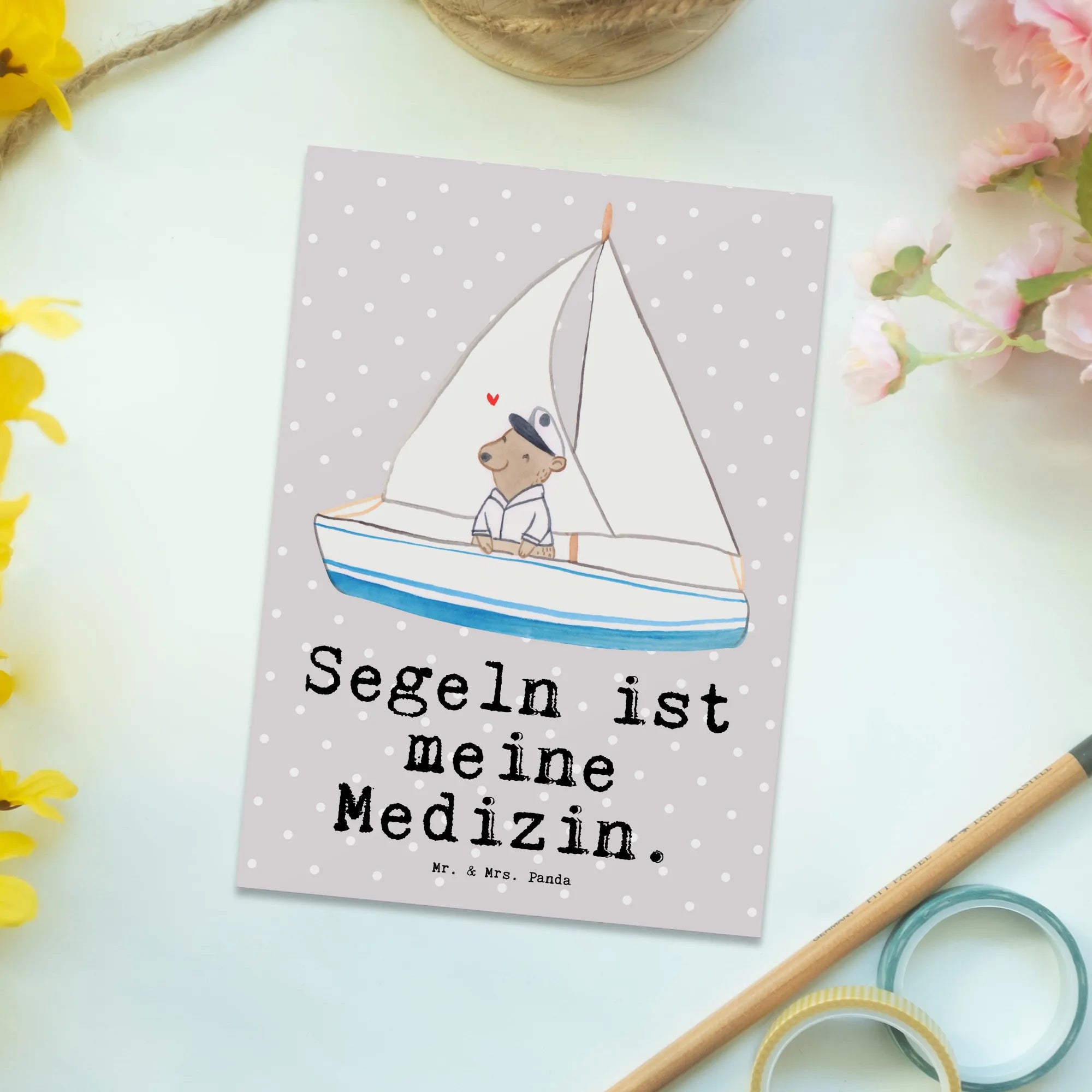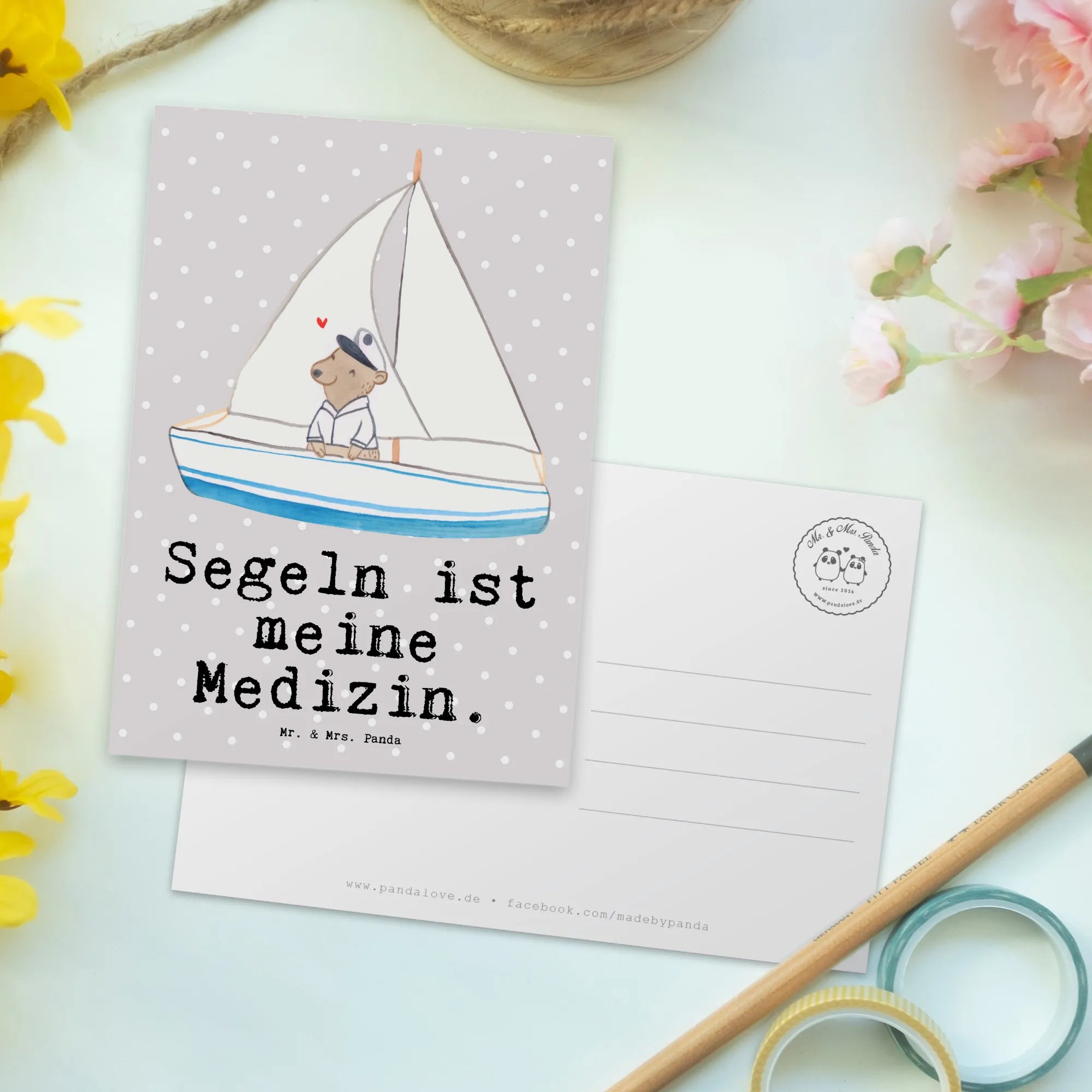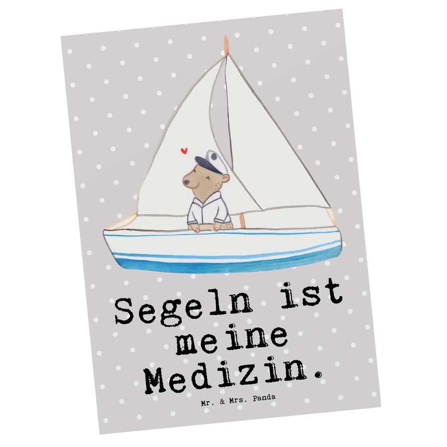 Schau dir diese einzigartige Postkarte von Mr. & Mrs. Panda an, die mit viel Liebe und einem niedlichen Motiv eines Bären, der auf einem Segelboot segelt, gestaltet wurde. Egal, ob du ein Segel-Enthusiast bist oder einfach nur ein Fan der sanften Wellen und der frischen Meeresbrise bist, diese Karte wird dir ein Lächeln ins Gesicht zaubern. Mit dem Slogan "Segeln ist meine Medizin" drückt sie perfekt aus, wie befreiend und entspannend das Segeln sein kann.