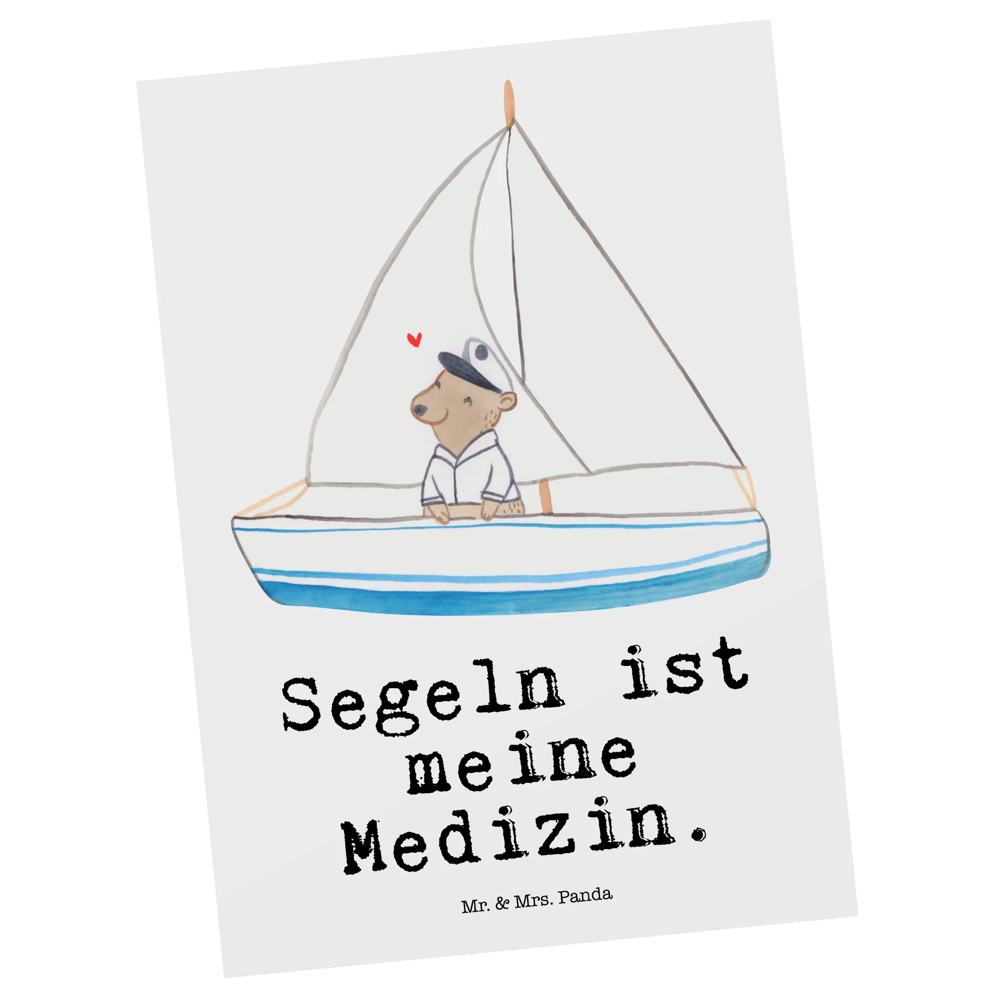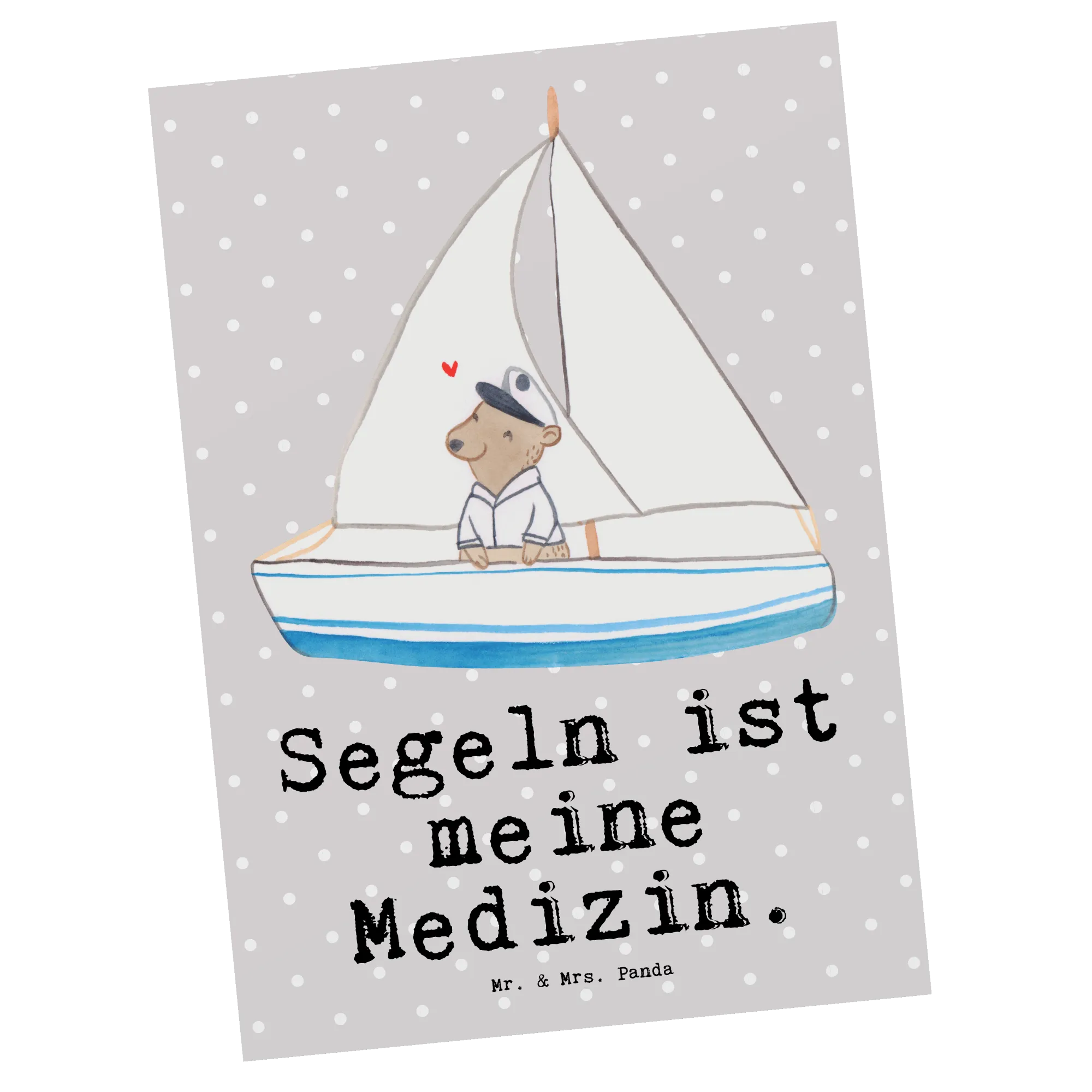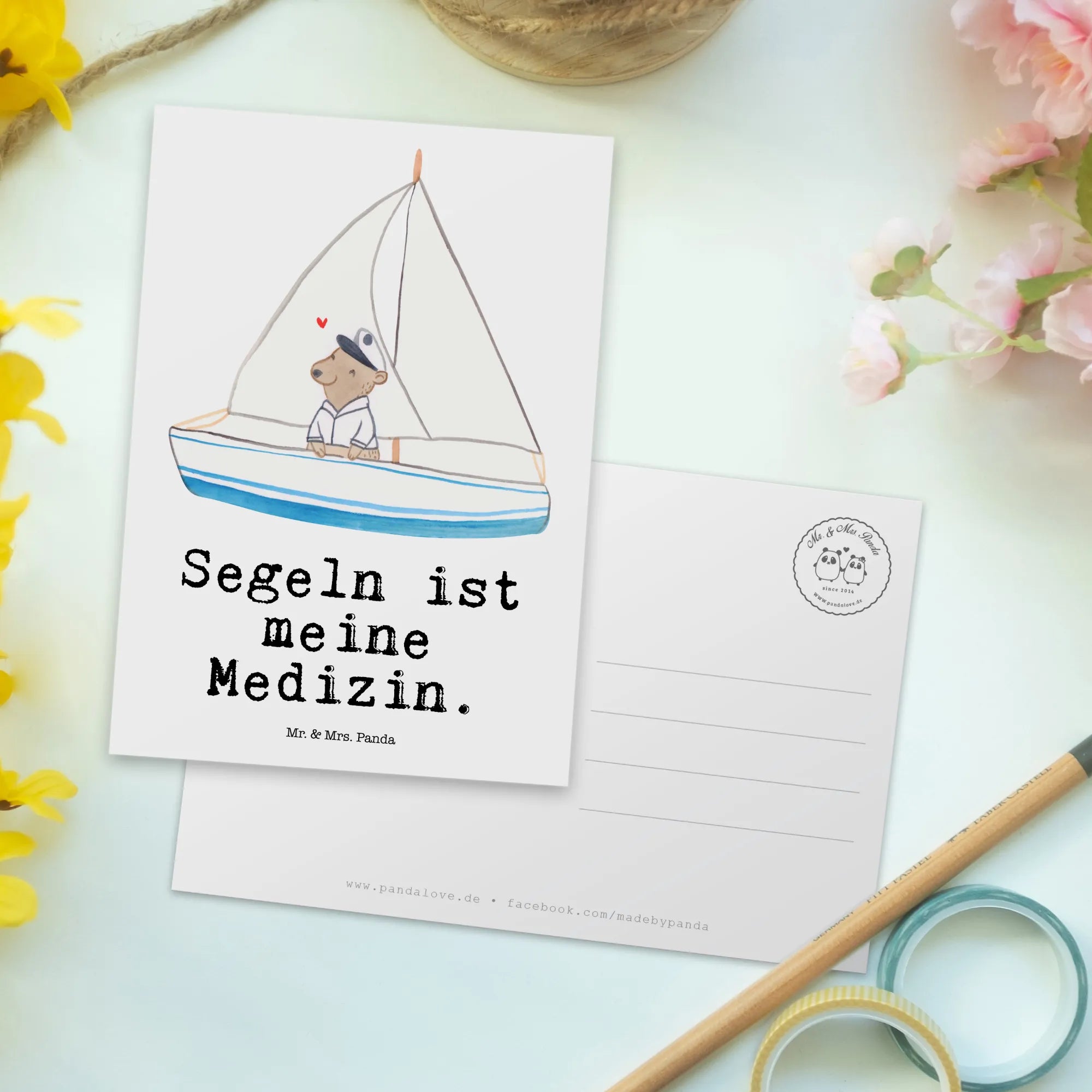 Schau dir diese einzigartige Postkarte von Mr. & Mrs. Panda an, die mit viel Liebe und einem niedlichen Motiv eines Bären, der auf einem Segelboot segelt, gestaltet wurde. Egal, ob du ein Segel-Enthusiast bist oder einfach nur ein Fan der sanften Wellen und der frischen Meeresbrise bist, diese Karte wird dir ein Lächeln ins Gesicht zaubern. Mit dem Slogan "Segeln ist meine Medizin" drückt sie perfekt aus, wie befreiend und entspannend das Segeln sein kann.