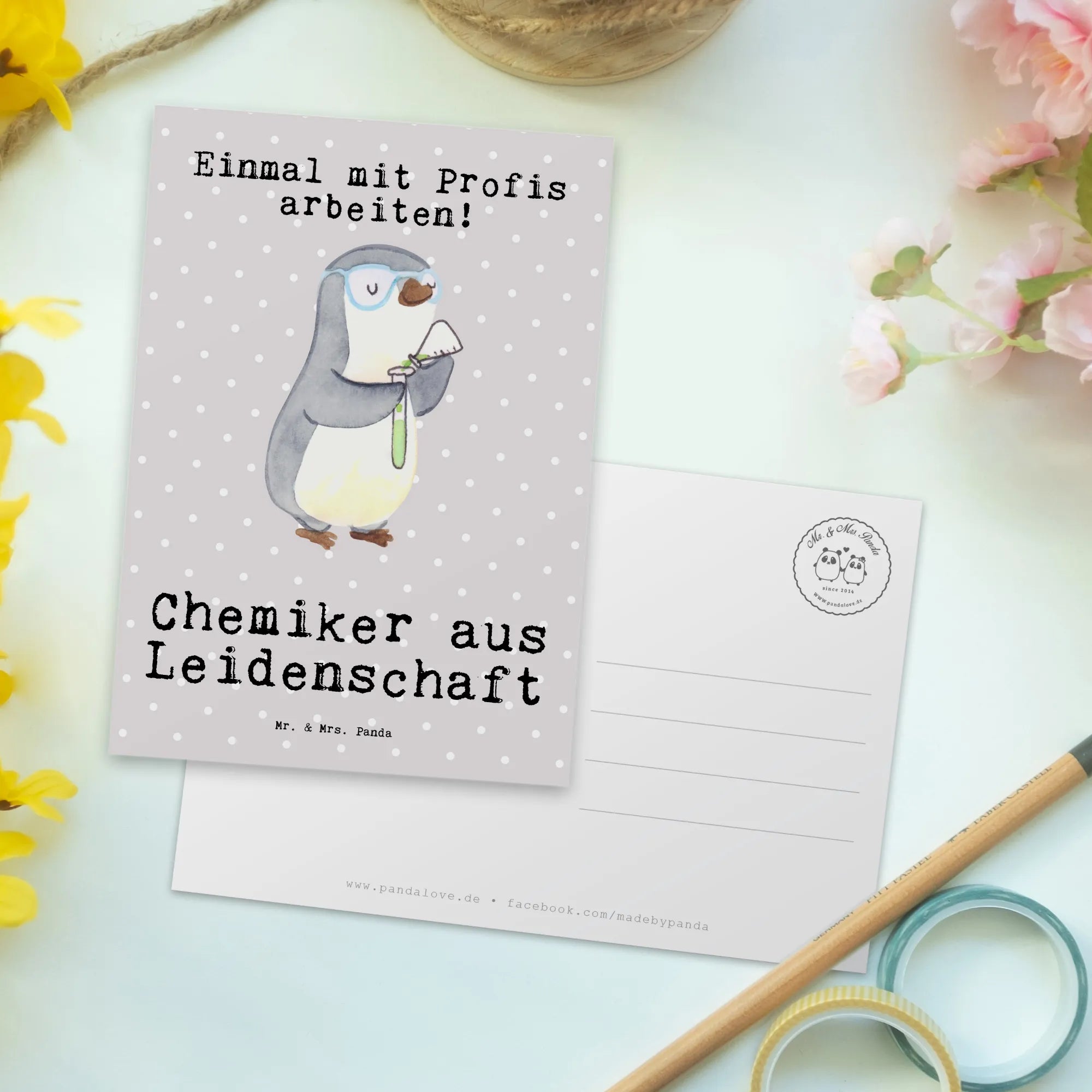Die Postkarte "Chemiker aus Leidenschaft" von Mr. & Mrs. Panda ist das perfekte Geschenk für alle Chemiker, Chemielaboranten und Naturwissenschaftler, die ihre Begeisterung für die Wissenschaft teilen möchten. Diese liebevoll gestaltete Karte zeigt einen niedlichen Pinguin mit einem Reagenzglas in der Hand, der mit einem strahlenden Lächeln verkündet, dass es nichts spannenderes gibt, als Chemiker zu sein!