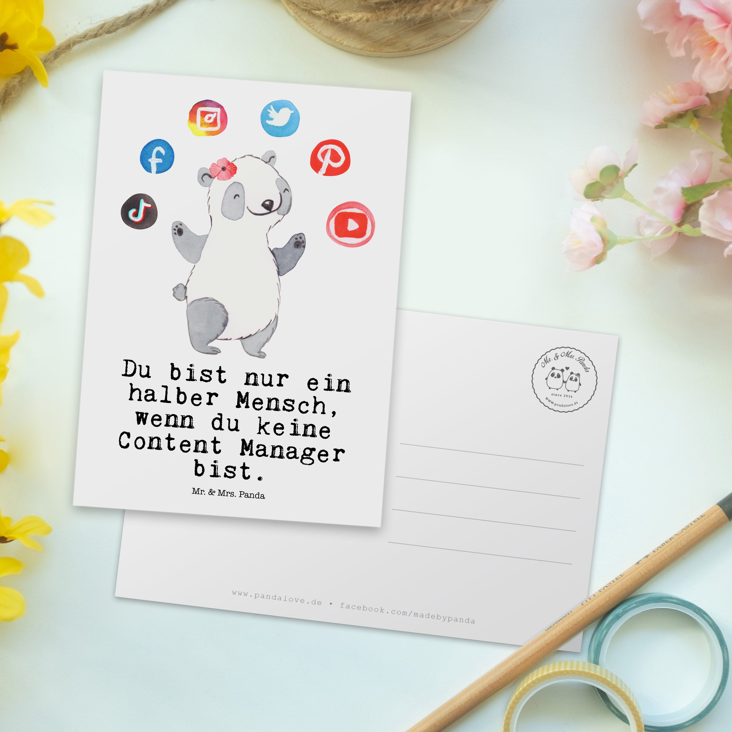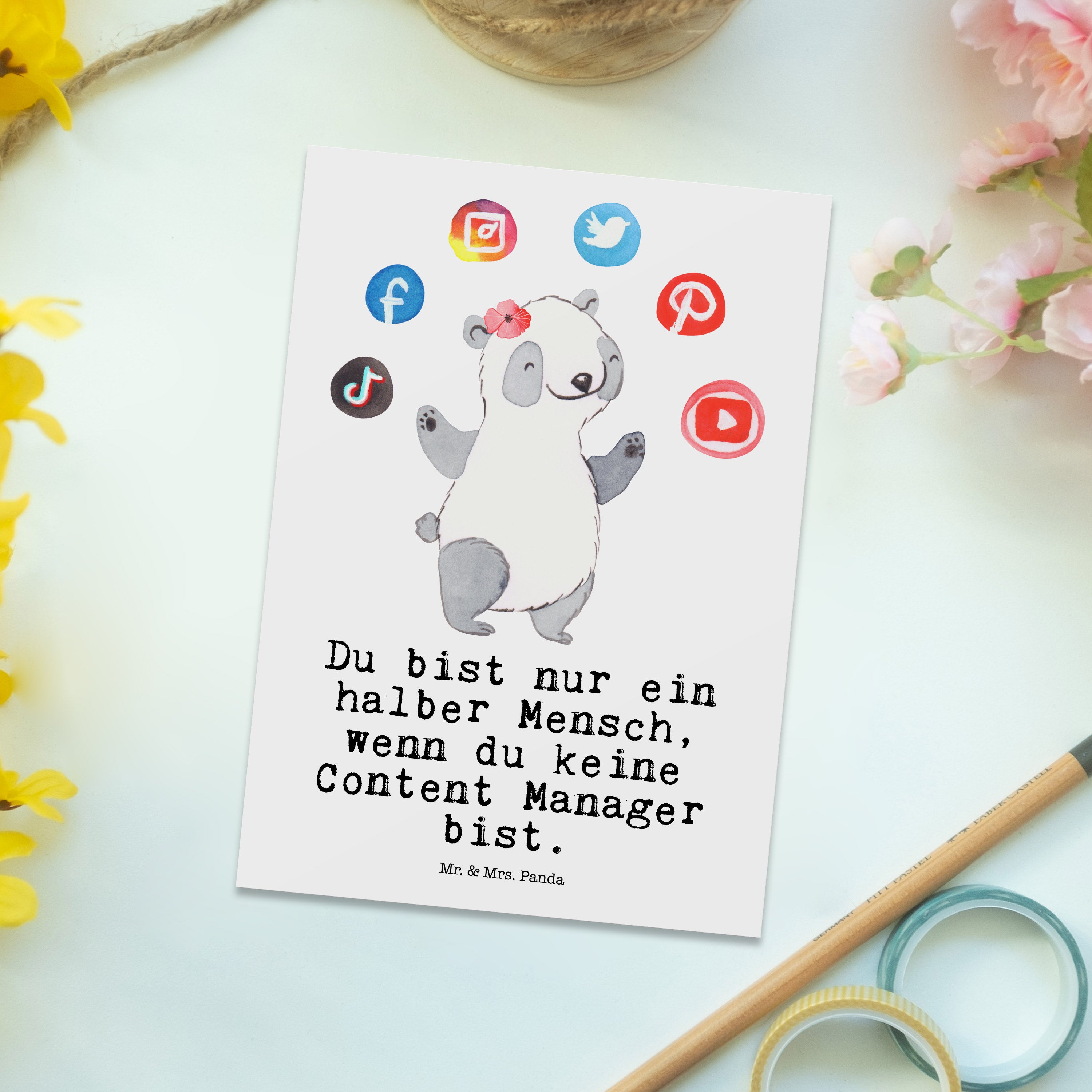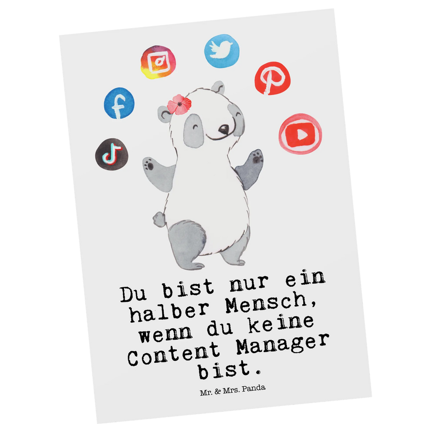 Mr. & Mrs. Panda Postkarte „Content Manager mit Herz“