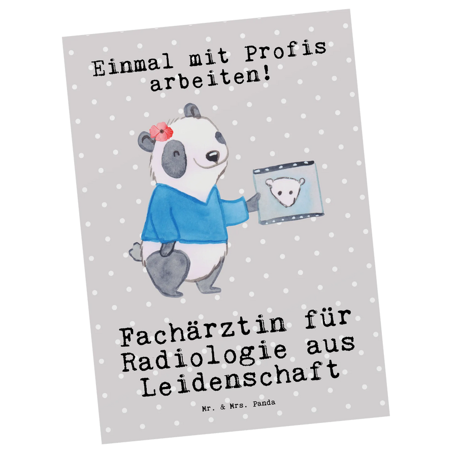 Entdecke die wundervolle Postkarte "Fachärztin für Radiologie aus Leidenschaft" von Mr. & Mrs. Panda! Diese einzigartige Grußkarte aus unserer kreativen Berufe Kollektion ist das perfekte Geschenk für alle Fachärzte und Fachärztinnen der Radiologie.