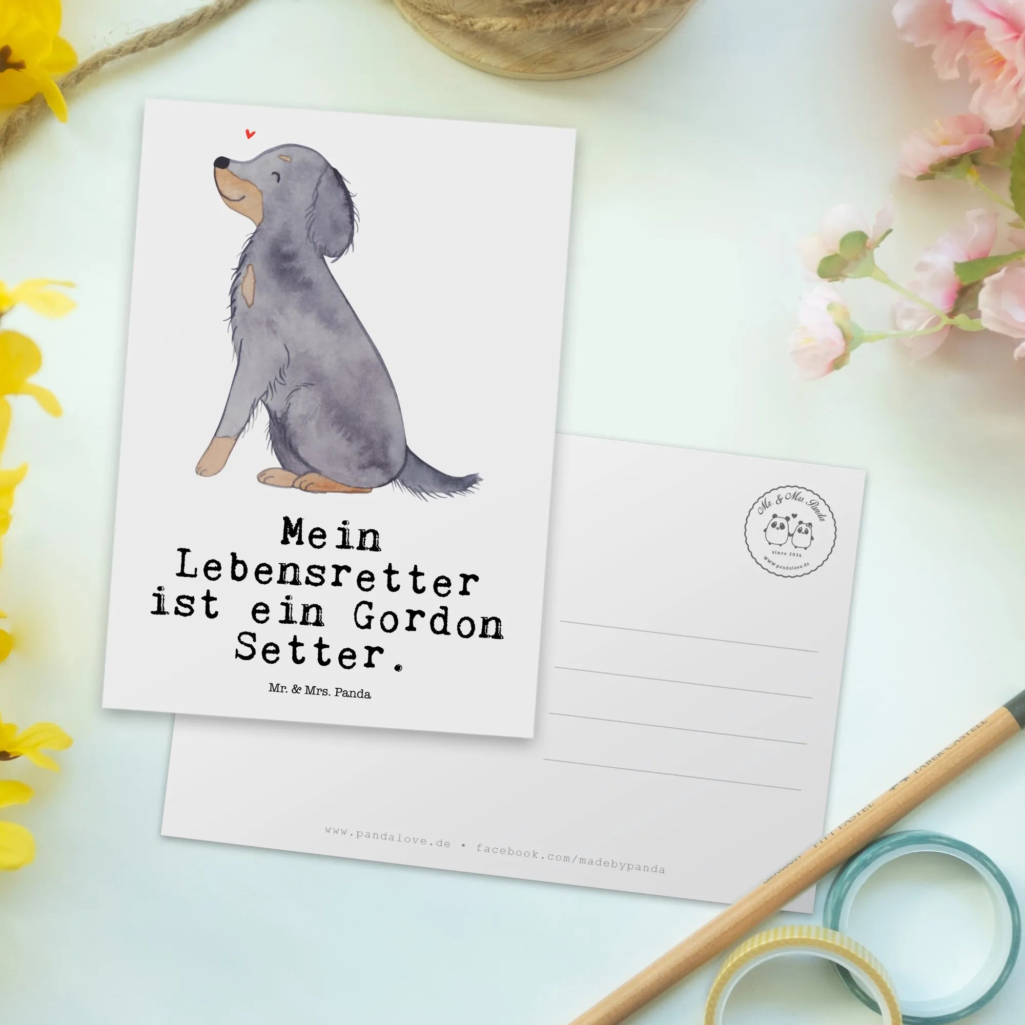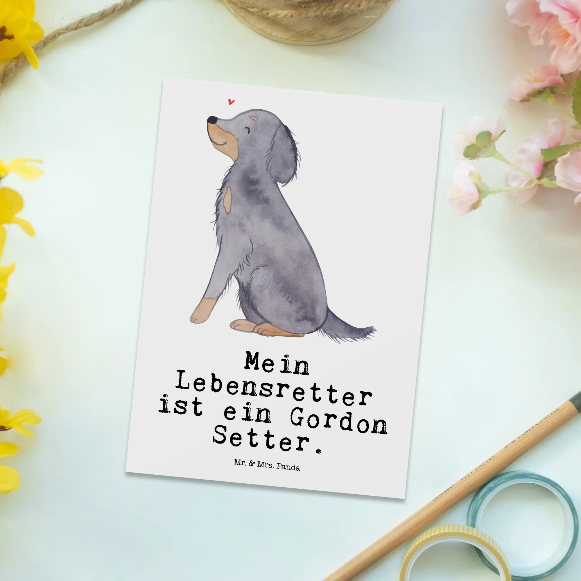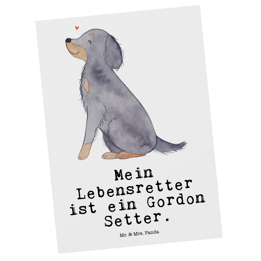 Entdecke die zauberhafte Postkarte 'Mein Lebensretter ist ein Gordon Setter' aus der Hunderasse Kollektion von Mr. & Mrs. Panda! Diese einzigartige Karte, bedruckt mit einem liebevollen Motiv eines Gordon Setters, ist ein perfektes Geschenk für alle Hundeliebhaber.
