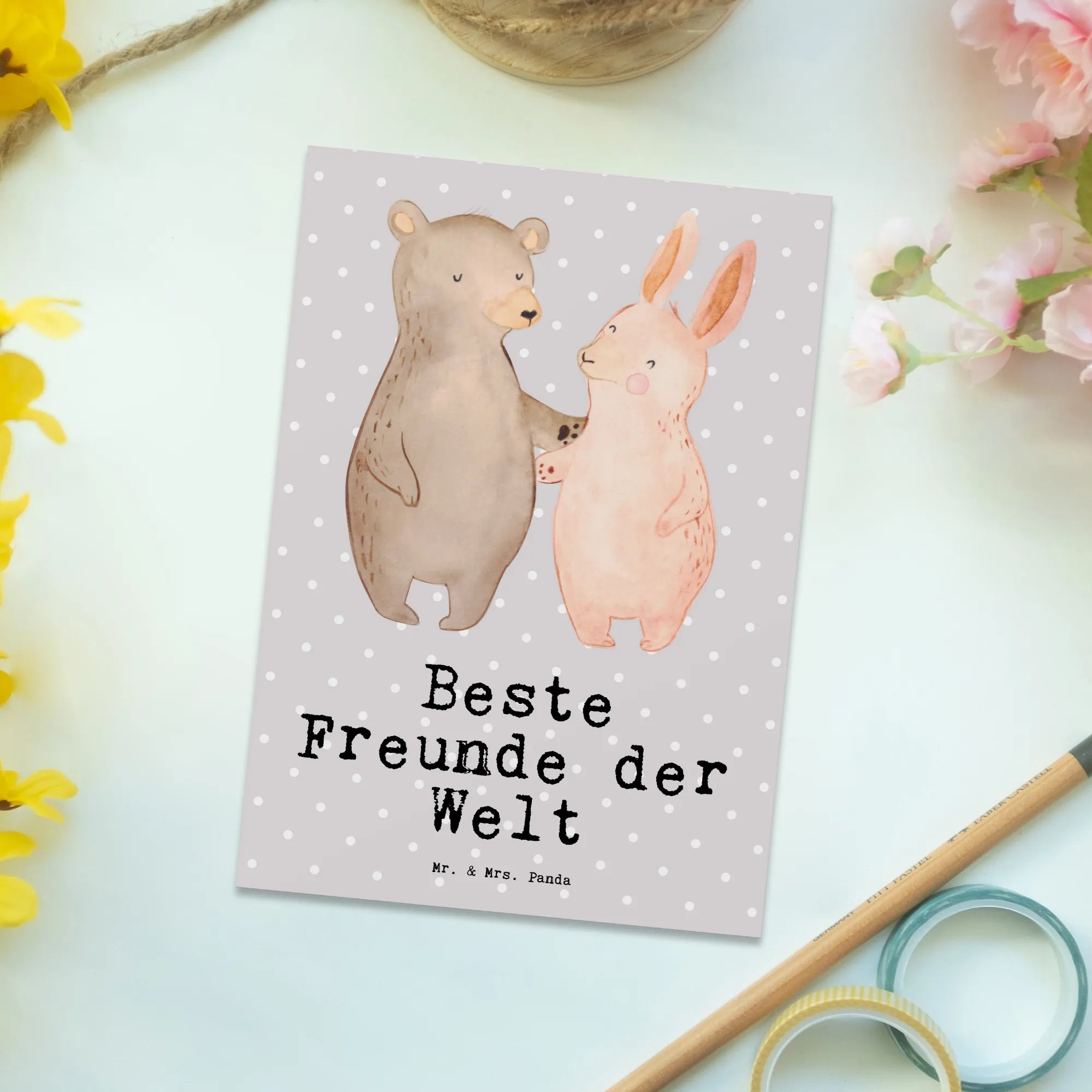 Mit dem entzückenden Slogan "Beste Freunde der Welt" wird Deine Botschaft noch unterstrichen. Diese Karte ist Teil der Beziehungen-Kollektion von Mr. & Mrs. Panda, die über 150 handgemalte Motive umfasst. Jedes Design erzählt seine eigene Geschichte und dient dazu, besondere Momente mit Deinen Liebsten zu teilen. Egal, ob es sich um eine Einladung zu einer Feier, eine Dankeskarte oder einfach nur um eine freundliche Nachricht handelt – diese Postkarte ist eine liebevolle Geste und macht immer Freude.