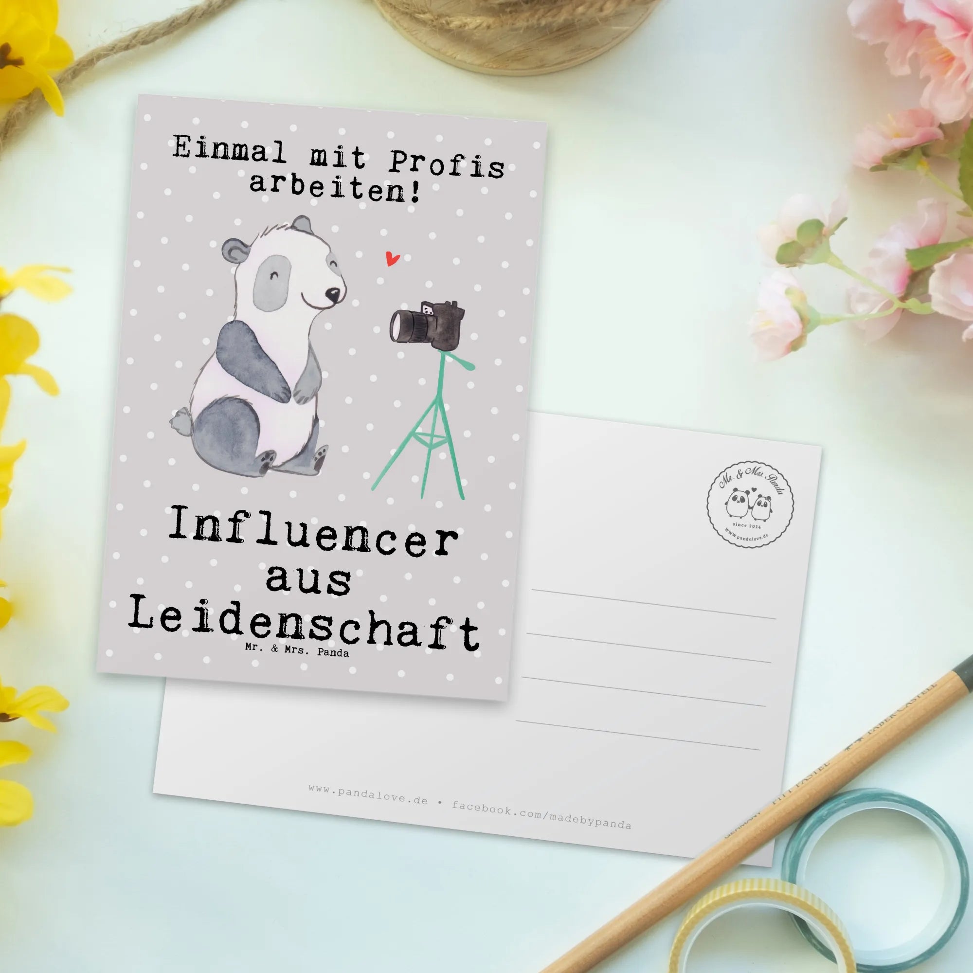 Postkarte Influencer Leidenschaft – Mr. & Mrs. Panda