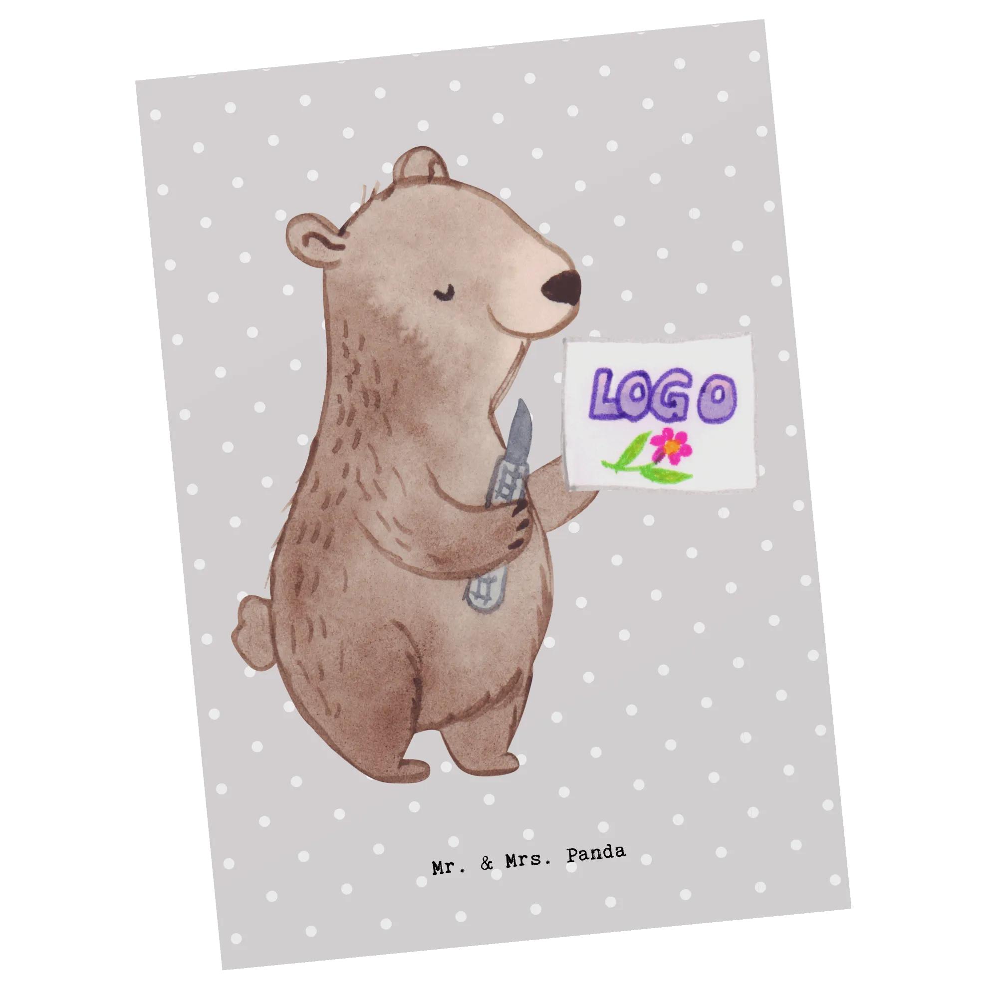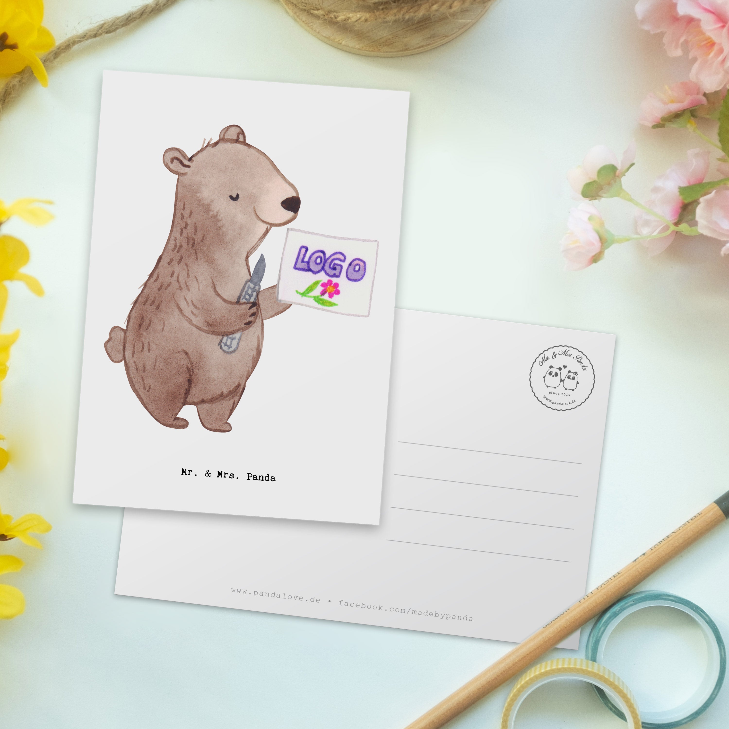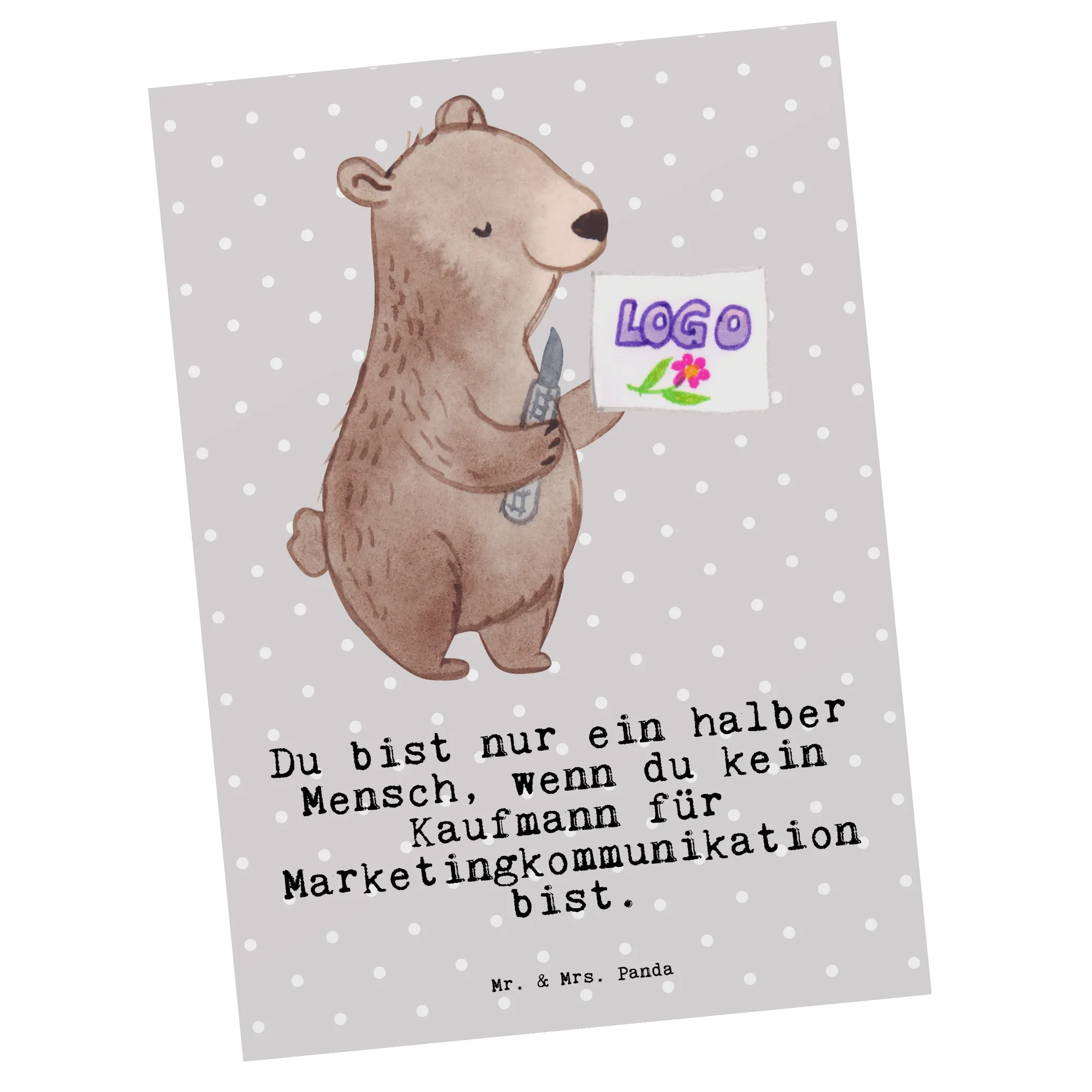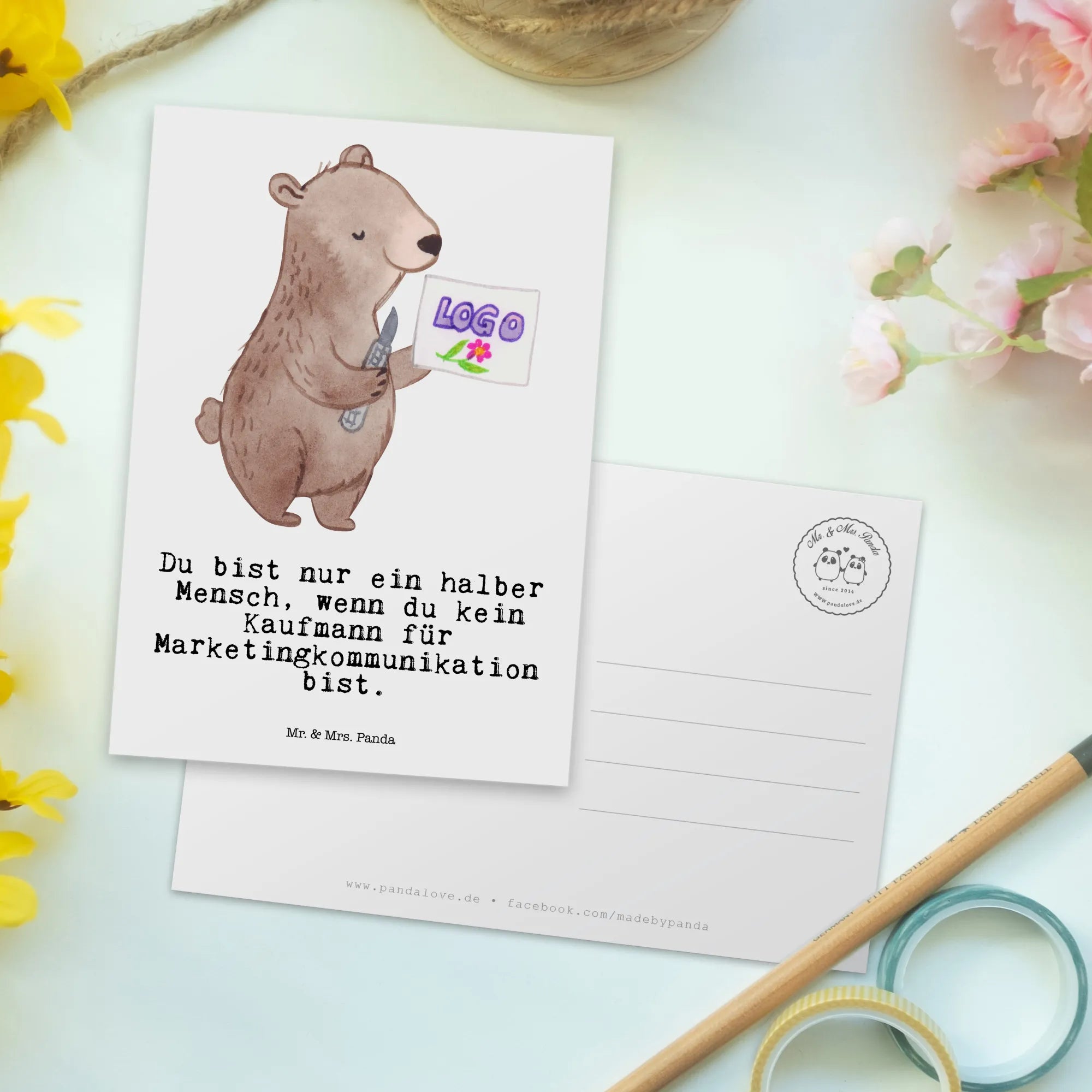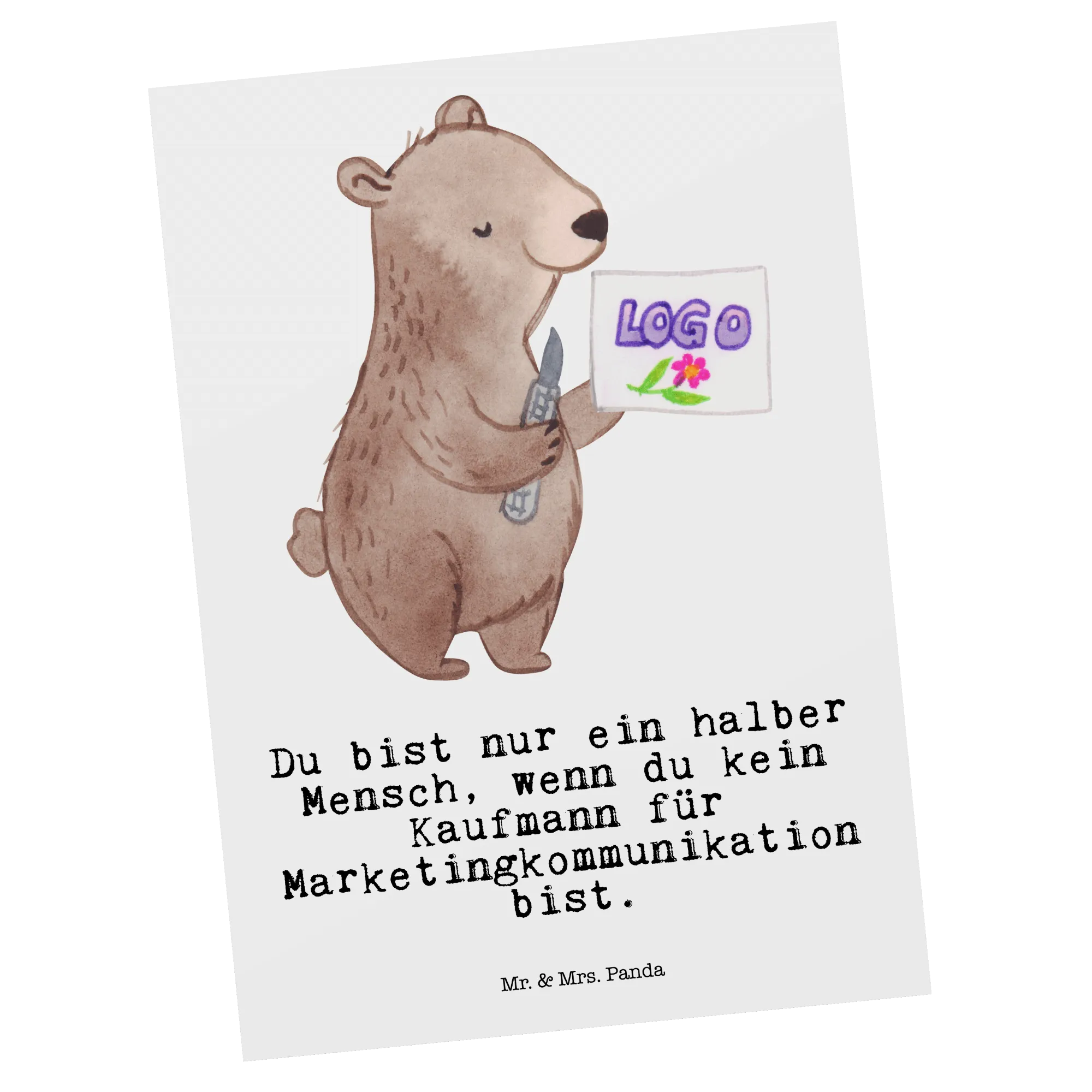 Postkarte Kaufmann für Marketingkommunikation mit Herz – Mr. & Mrs. Panda