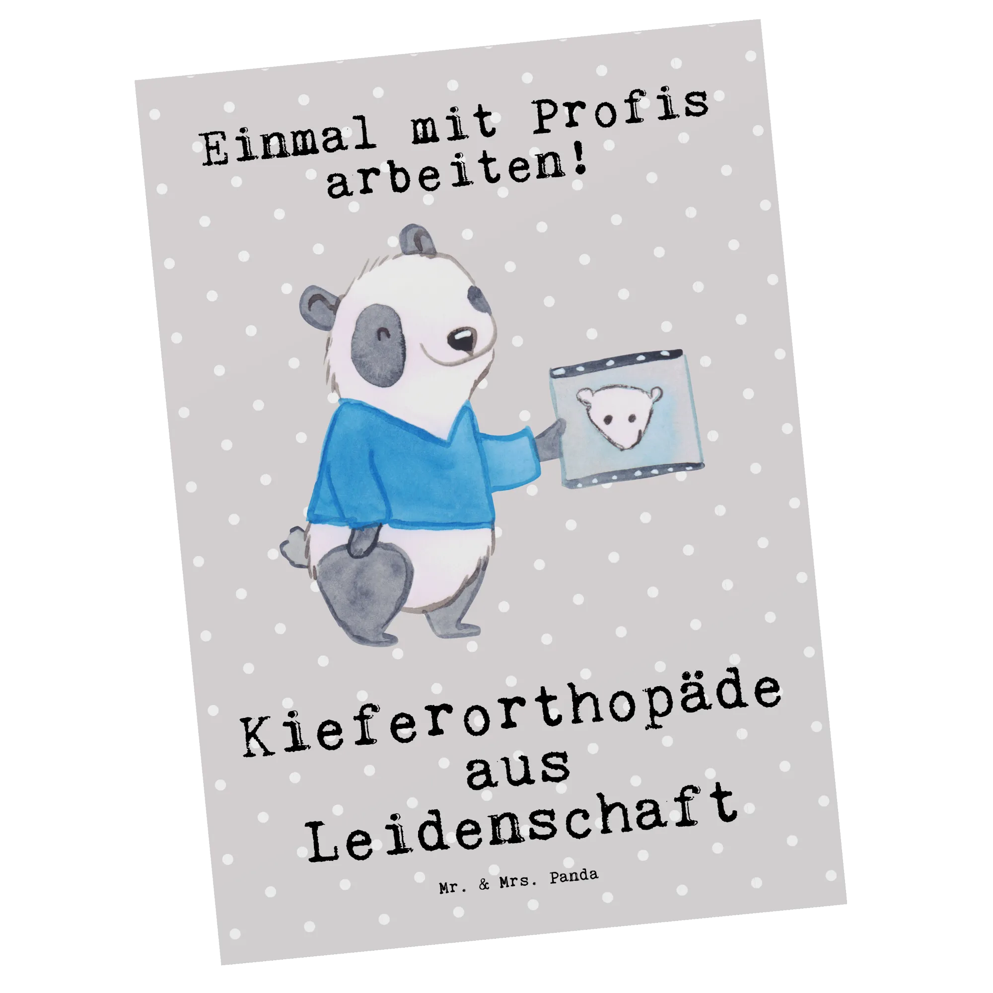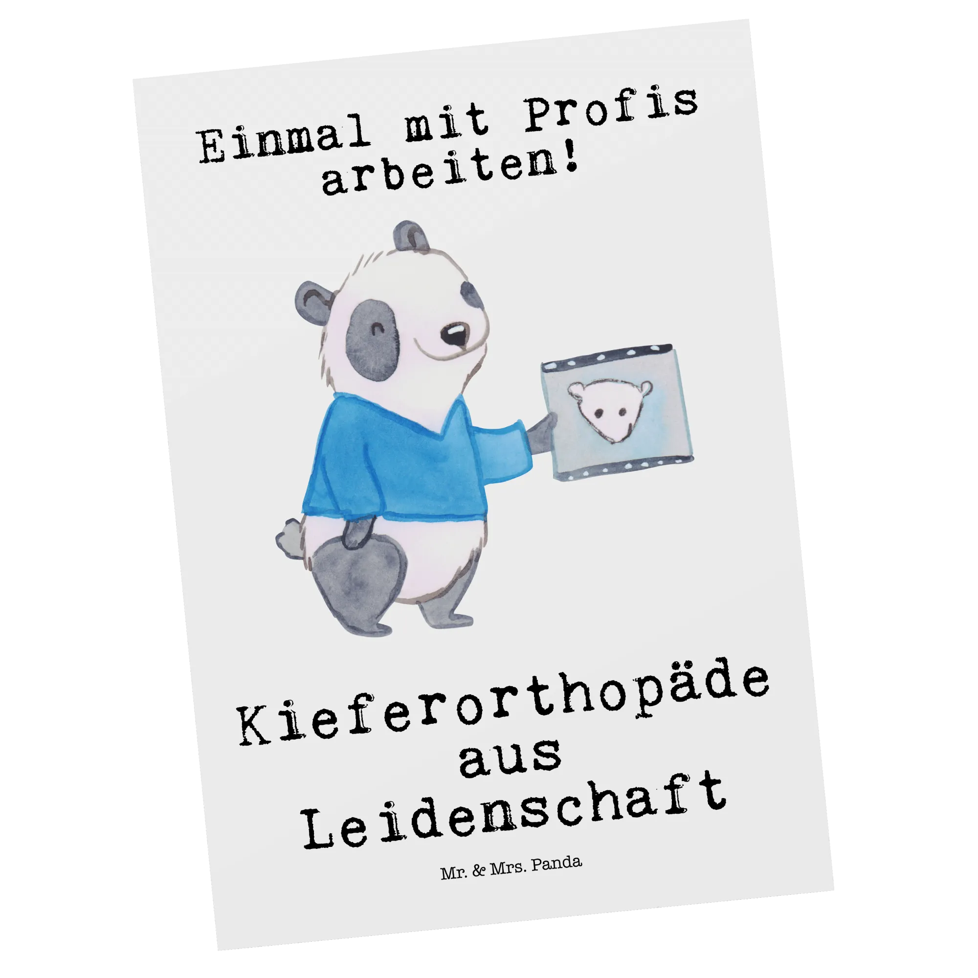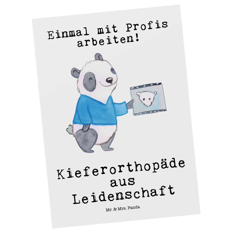 Entdecke die süße Postkarte "Kieferorthopäde aus Leidenschaft" von Mr. & Mrs. Panda – das perfekte Geschenk für alle, die ihren Beruf mit Hingabe ausüben! Diese liebevoll gestaltete Karte zeigt einen niedlichen Panda, der ein Röntgenbild betrachtet und den Slogan "Kieferorthopäde aus Leidenschaft" trägt.