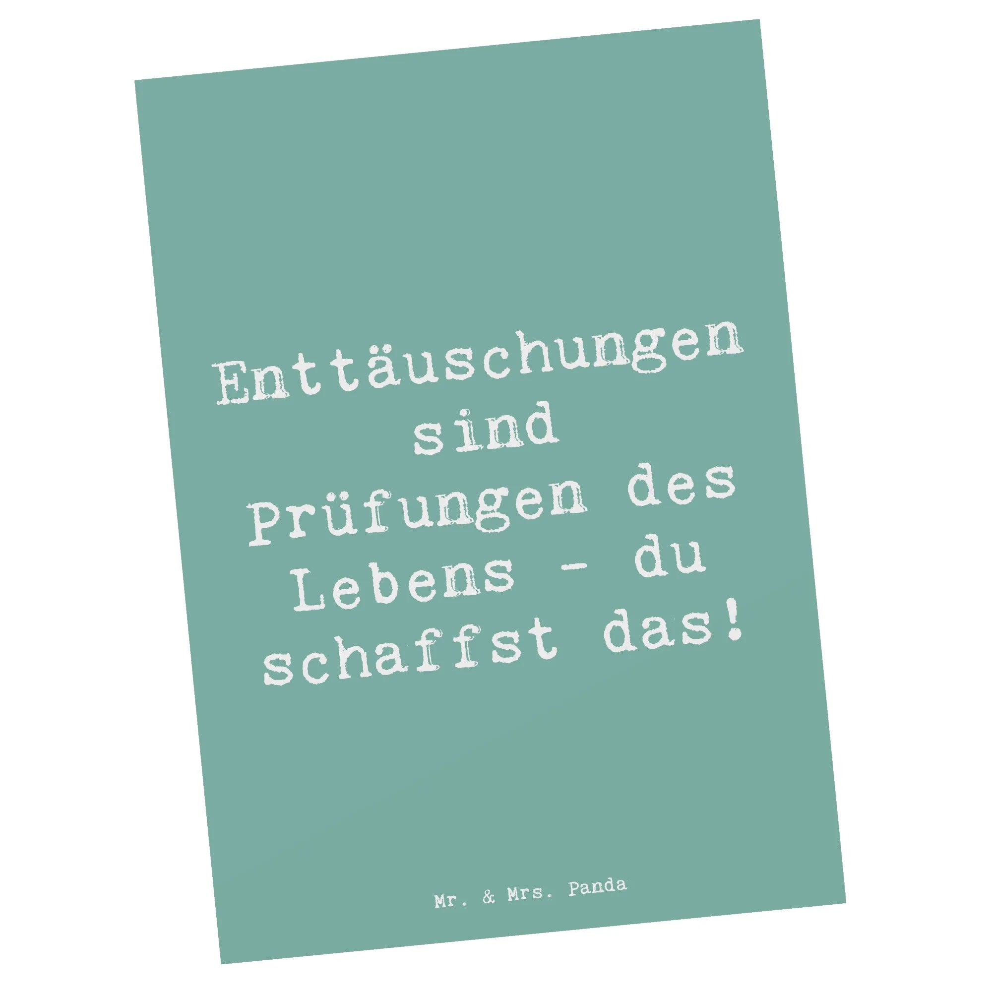 Suchst du nach einer ganz besonderen Grußkarte, die nicht nur schön aussieht, sondern auch eine wichtige Botschaft vermittelt? Die Postkarte "Mit Enttäuschungen umgehen" aus unserer Mutmacher-Kollektion von Mr. & Mrs. Panda ist genau das Richtige für dich! Diese einzigartige Postkarte ist nicht nur ein hübsches Stück Papier, sondern ein echtes Mutmach-Statement für alle, die gerade schwere Zeiten durchleben. Sie hat einen motivierenden Spruch: "Enttäuschungen sind Prüfungen des Lebens - du schaffst das!" – und genau dieser Satz wird vielen Menschen in diesen Momenten Trost spenden.