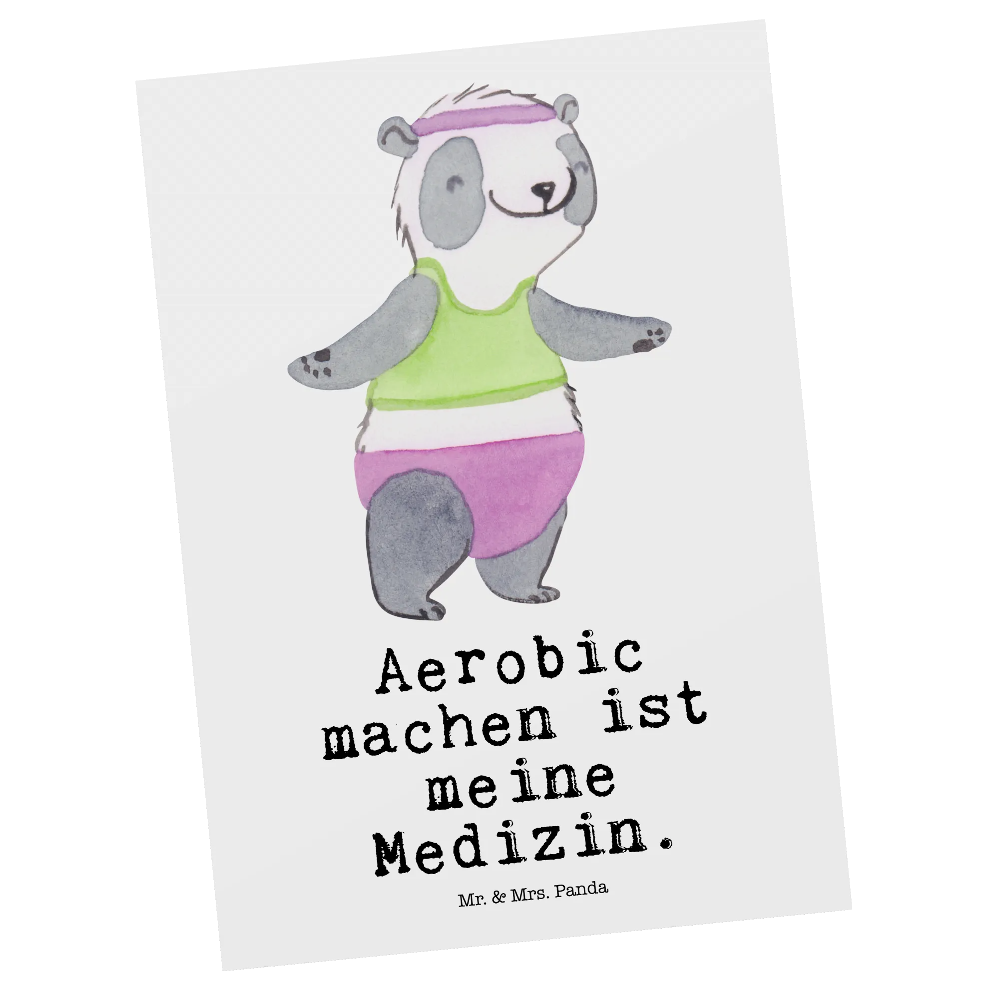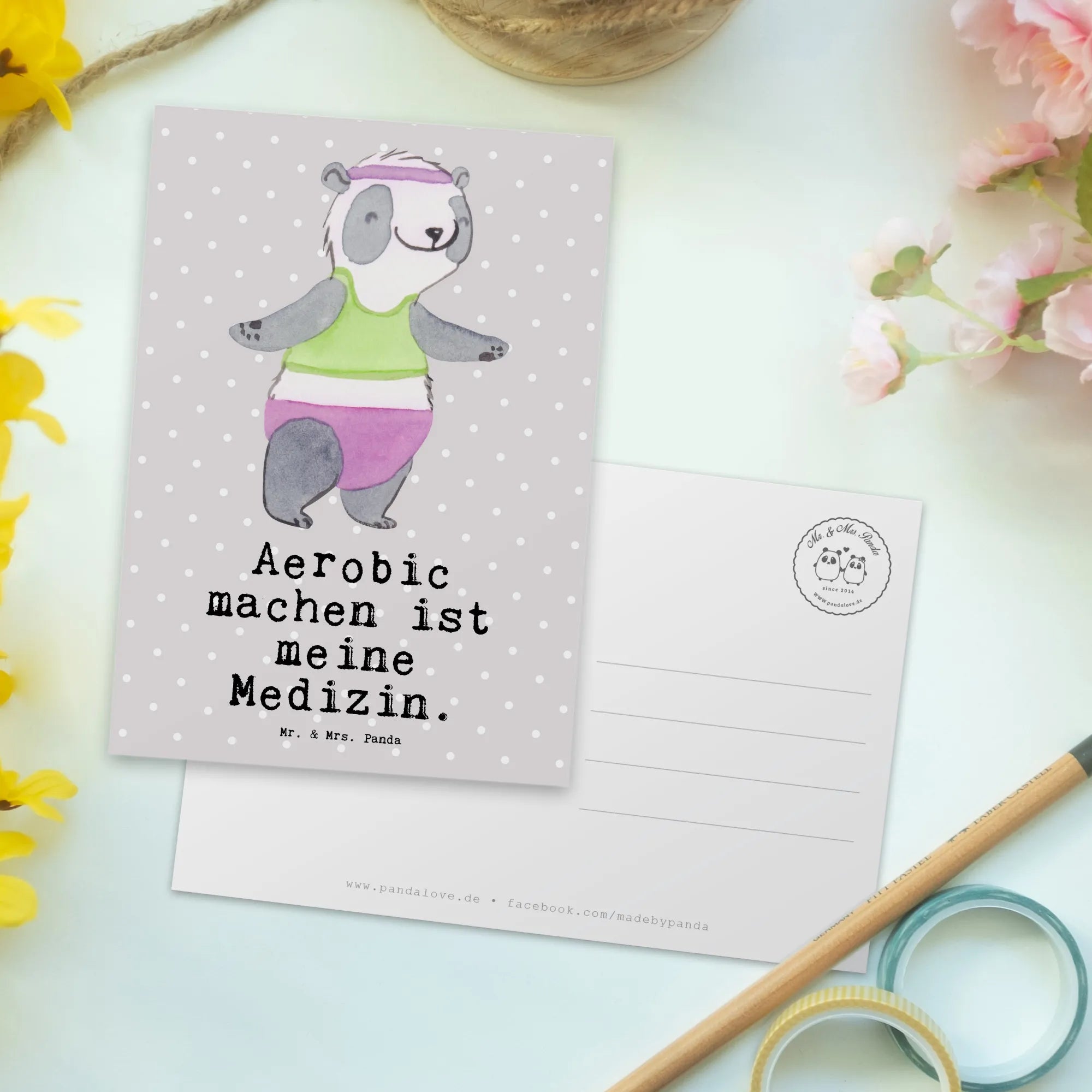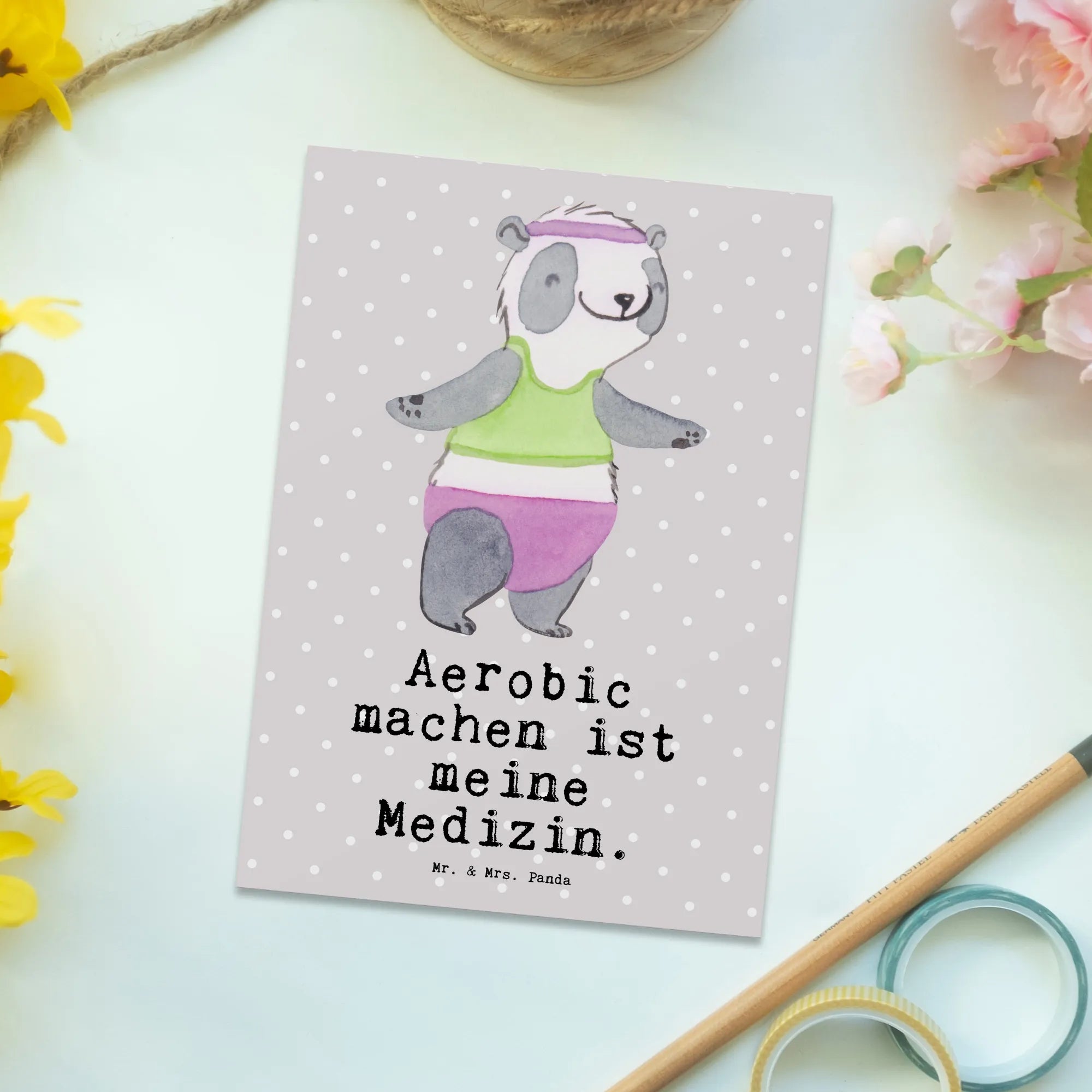 Suchst Du nach dem perfekten Geschenk für einen Sportliebhaber oder eine Sportliebhaberin in Deinem Leben? Dann ist die Postkarte "Panda Aerobic Medizin" aus der Kollektion Hobby & Sport von Mr. & Mrs. Panda genau das Richtige! Mit ihrem liebevoll gestalteten Motiv eines süßen Pandas im Aerobic-Outfit, der mit Freude Aerobic macht, wird diese Postkarte ganz sicher ein Lächeln auf die Gesichter Deiner Freunde und Familie zaubern.