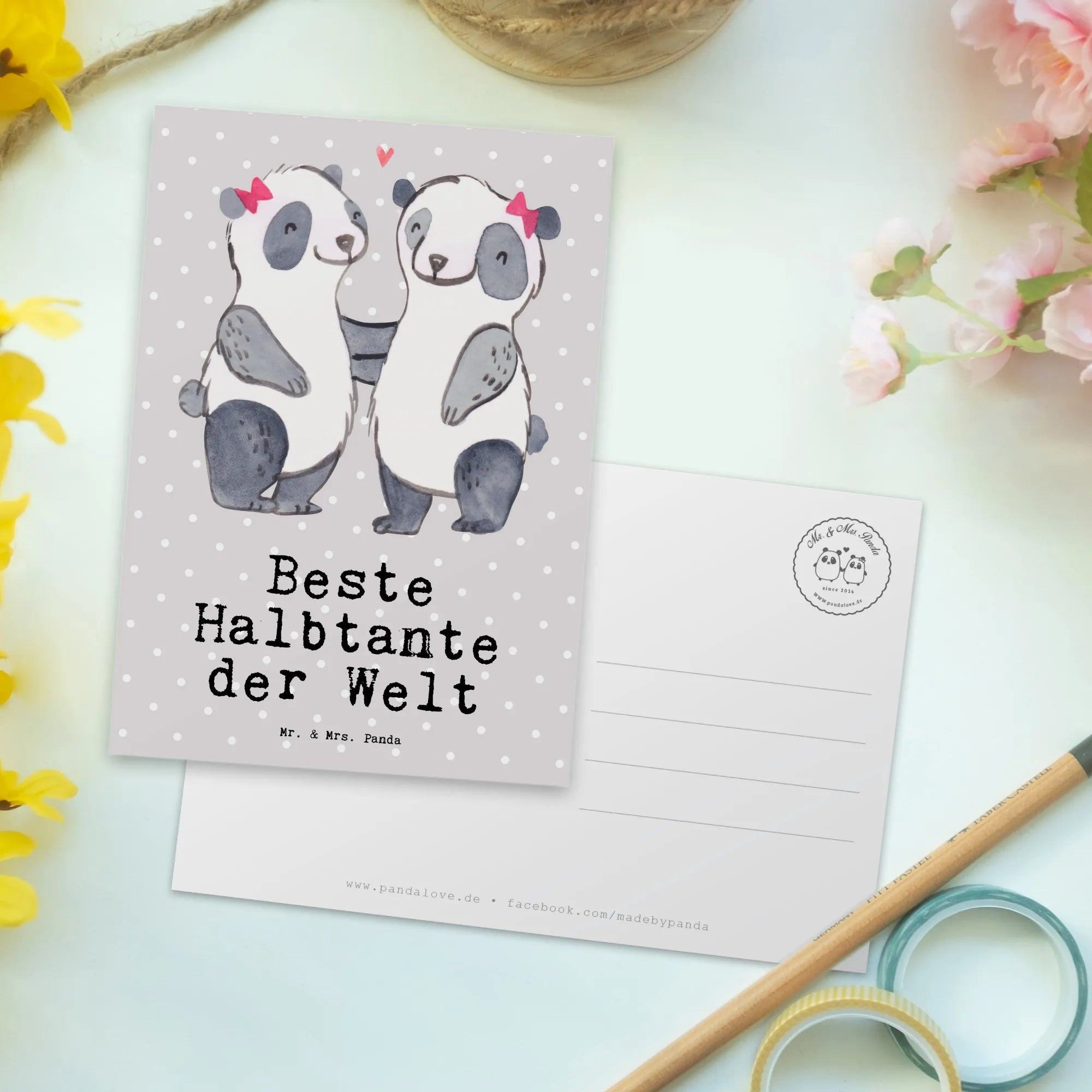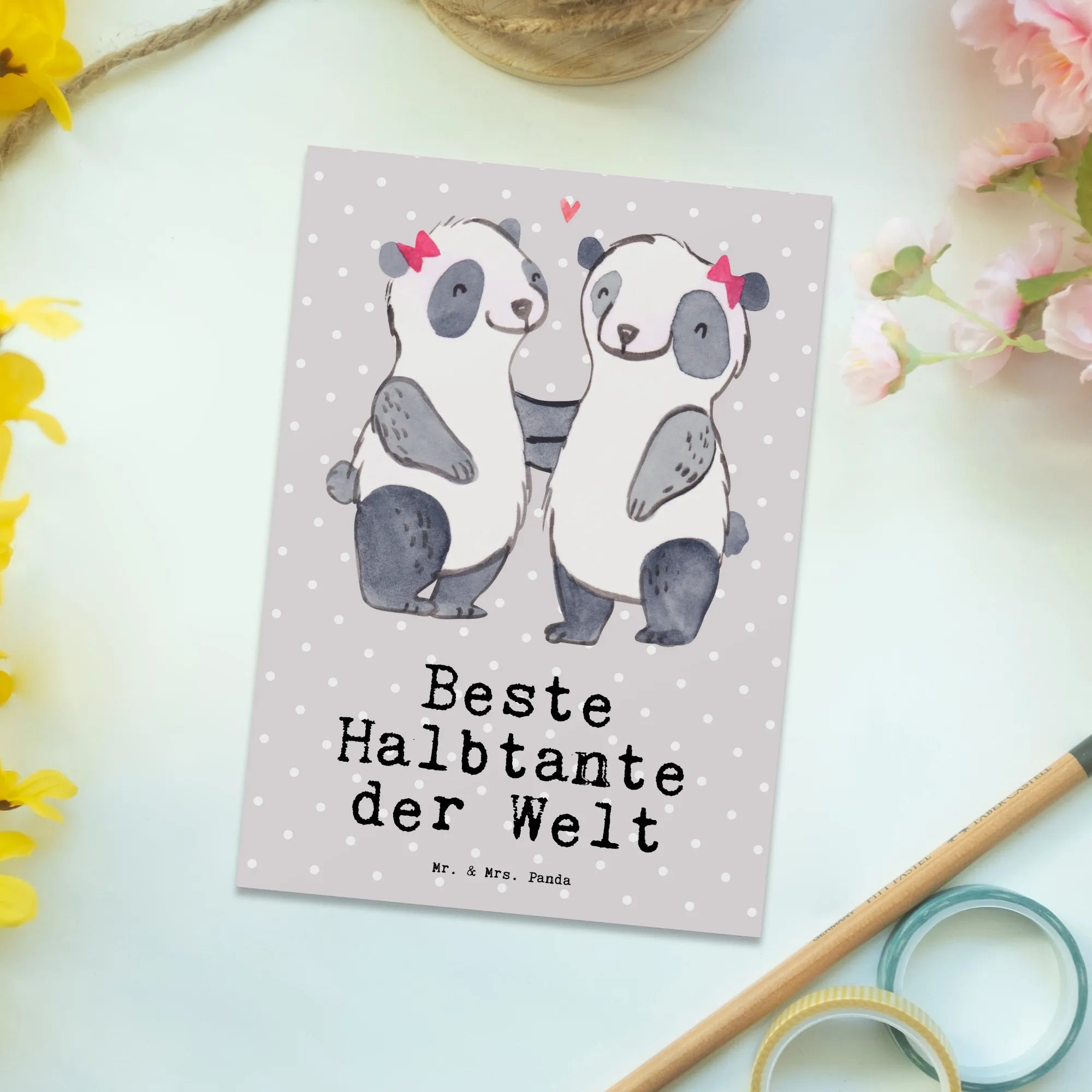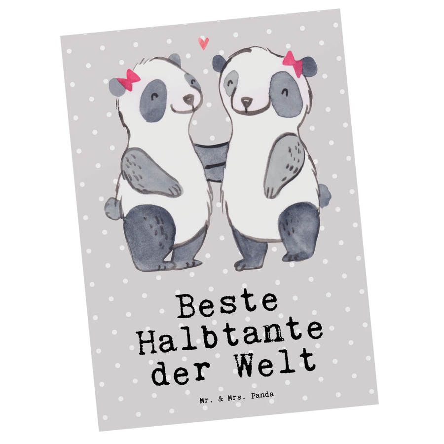 Postkarte Panda Beste Halbtante der Welt - Grau Pastell