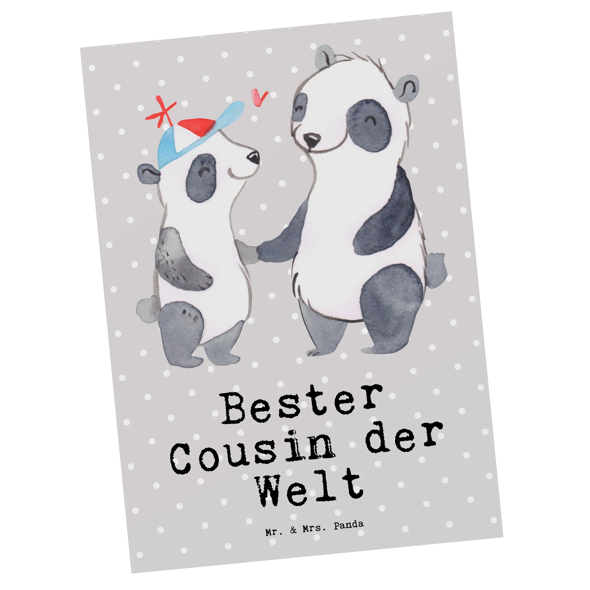 Postkarte Panda Bester Cousin der Welt - Grau Pastell