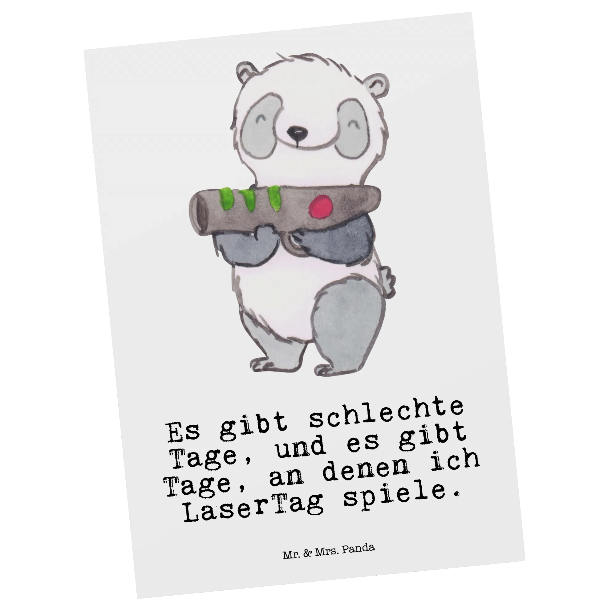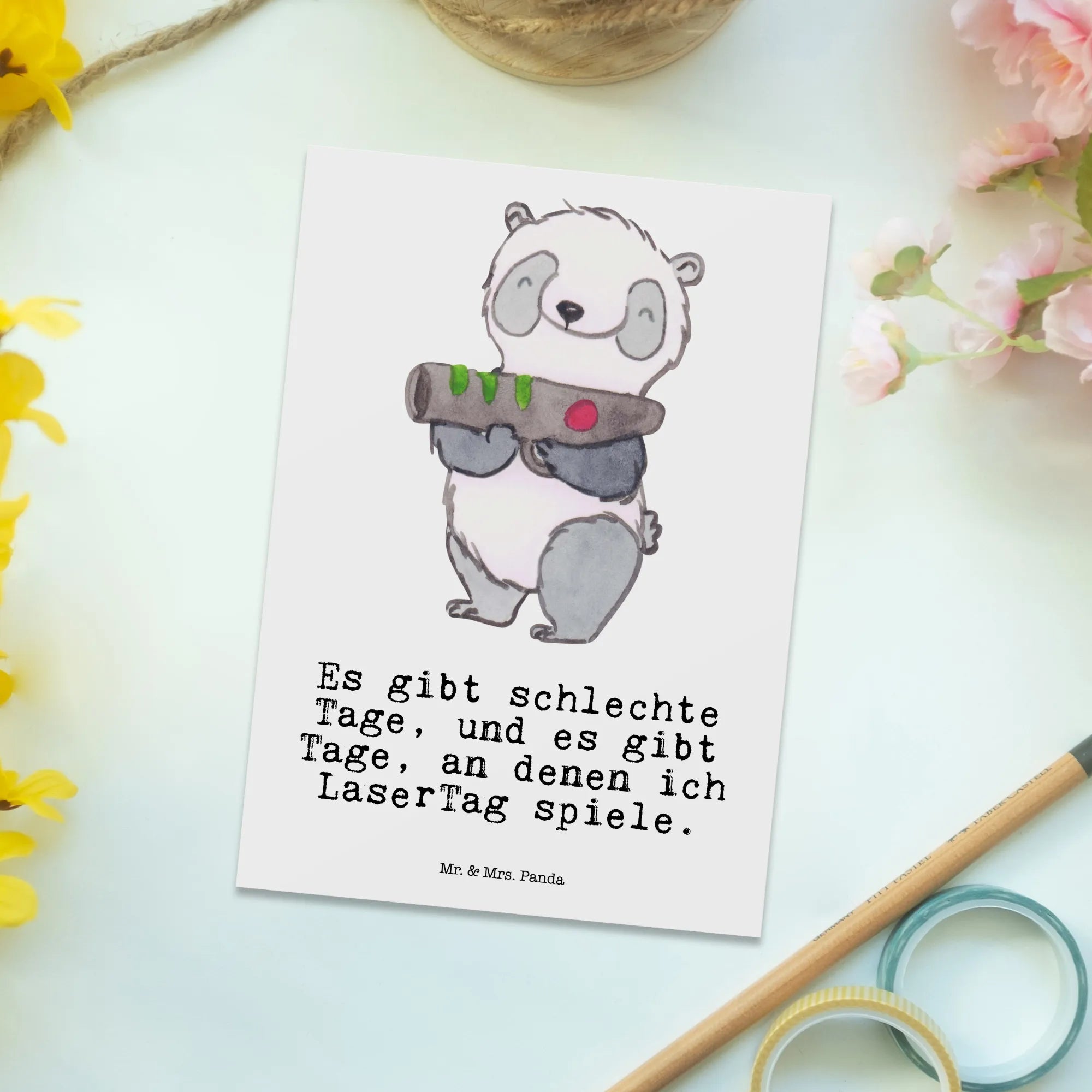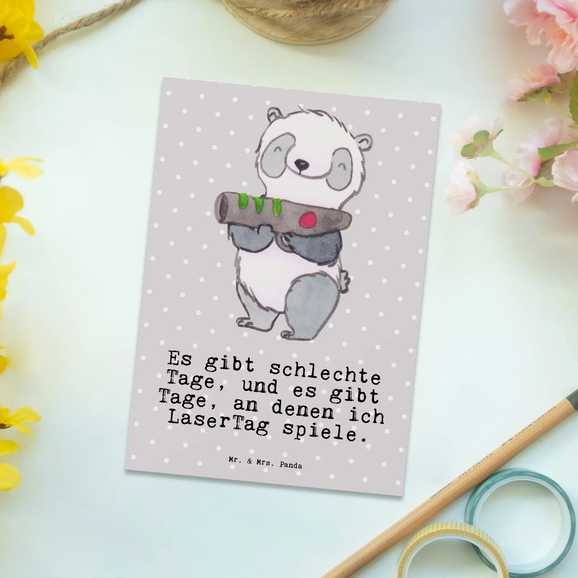 Suchst du das perfekte Geschenk für Freunde und Familie, die LaserTag lieben? Dann ist die Postkarte "Panda LaserTag Tage" von Mr. & Mrs. Panda genau das Richtige!