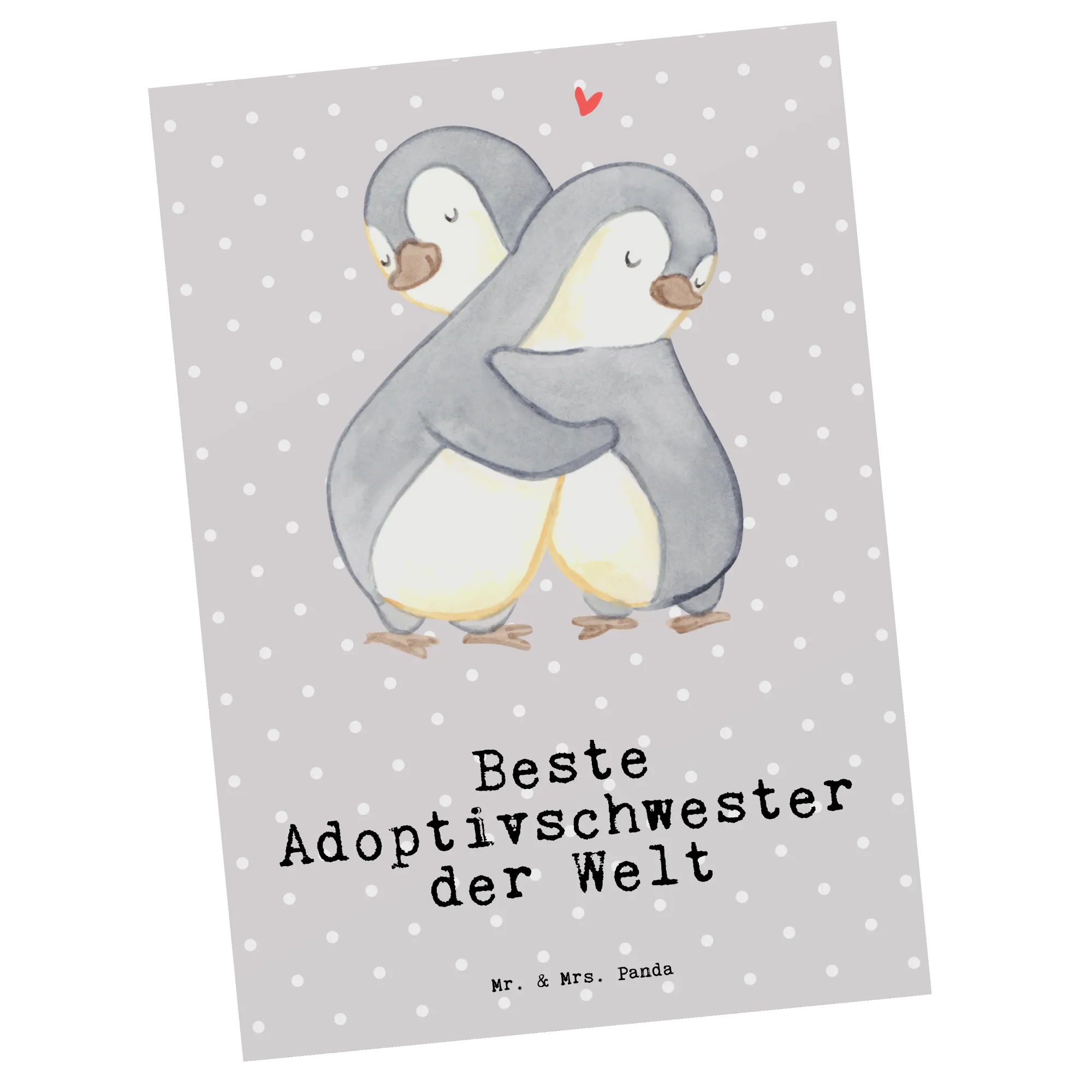 Postkarte Pinguin Beste Adoptivschwester der Welt - Grau Pastell