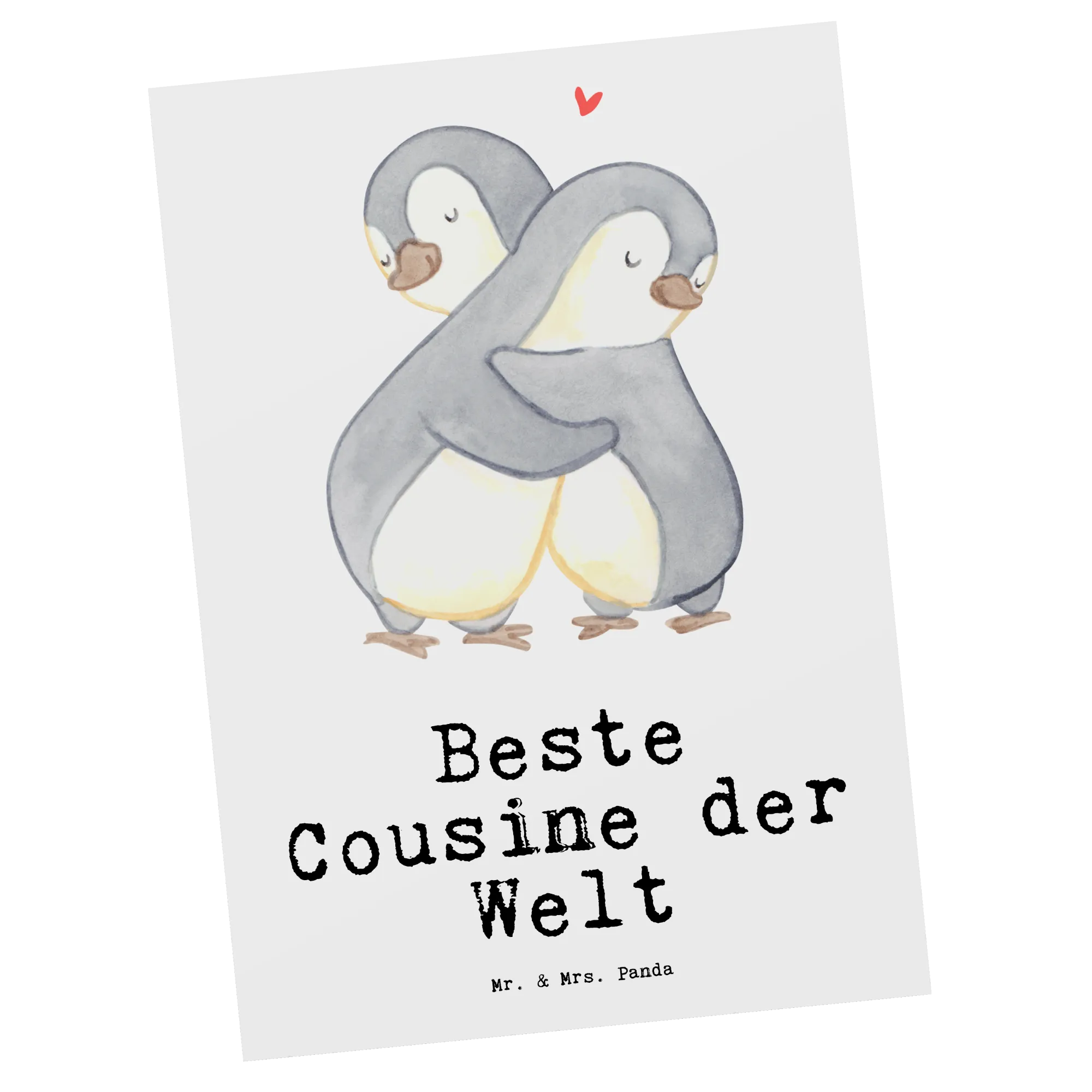 Suchst du nach dem perfekten Geschenk für deine beste Cousine? Die Postkarte mit dem süßen Pinguin-Motiv "Beste Cousine der Welt" von Mr. & Mrs. Panda ist genau das richtige! Diese einzigartige Karte ist nicht nur eine liebevolle Geste, sondern auch das ideale Mitbringsel für jeden besonderen Anlass. Egal ob Geburtstag, Dankeschön oder einfach nur so – mit dieser Grußkarte machst du deiner Cousine sicherlich eine große Freude!