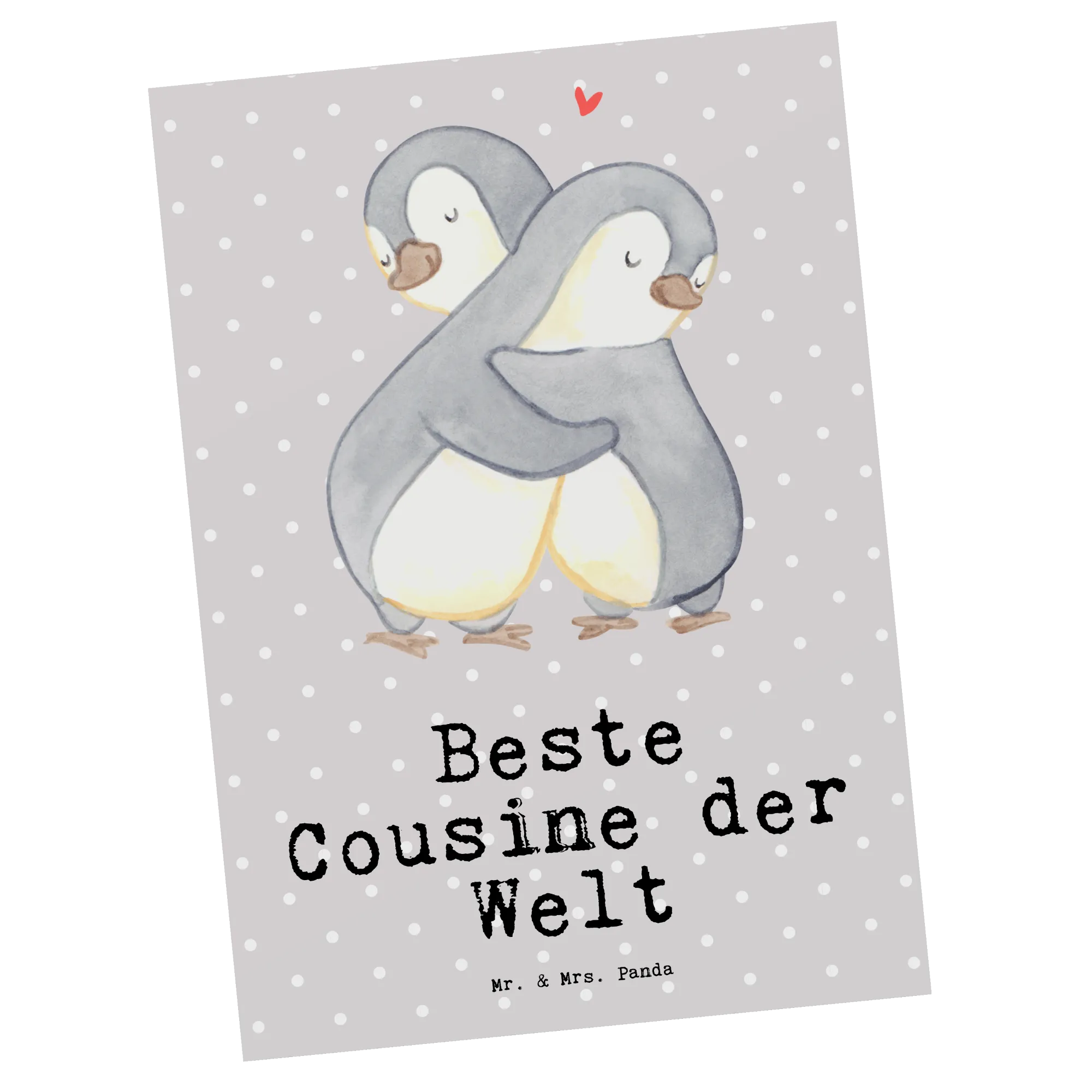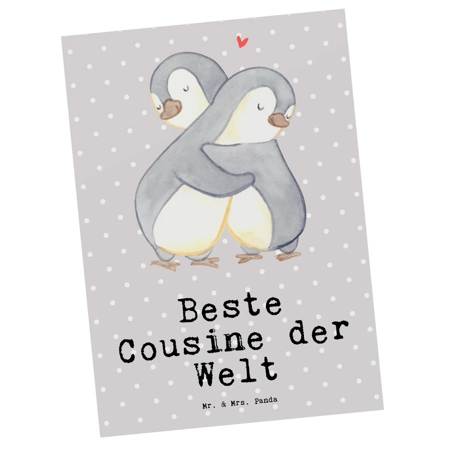 Postkarte Pinguin Beste Cousine der Welt - Grau Pastell