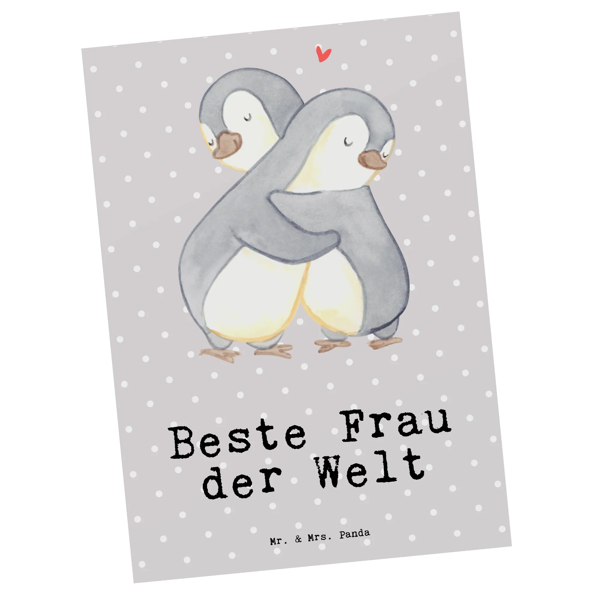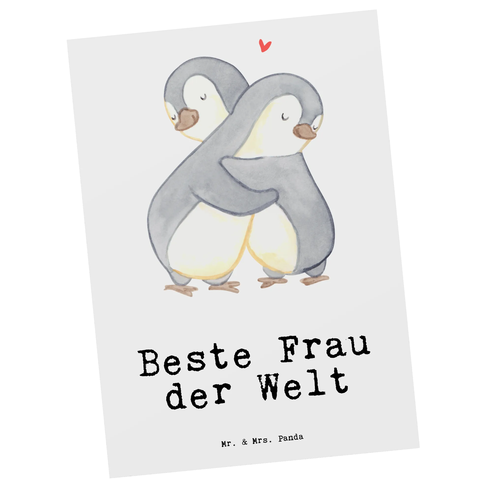 Die Postkarte mit dem Motiv "Pinguin Beste Frau der Welt" aus der Kollektion Beziehungen von Mr. & Mrs. Panda ist das perfekte Geschenk für all jene, die ihre besonderen Damen im Leben mit einem liebevollen Gruß überraschen möchten. Egal, ob zu einem Geburtstag, als kleine Aufmerksamkeit oder einfach nur so – diese Karte bringt garantiert ein Lächeln ins Gesicht! Mit einem niedlichen Pinguin-Paar, das sich innig umarmt, wird diese Karte zum idealen Ausdruck deiner Zuneigung.