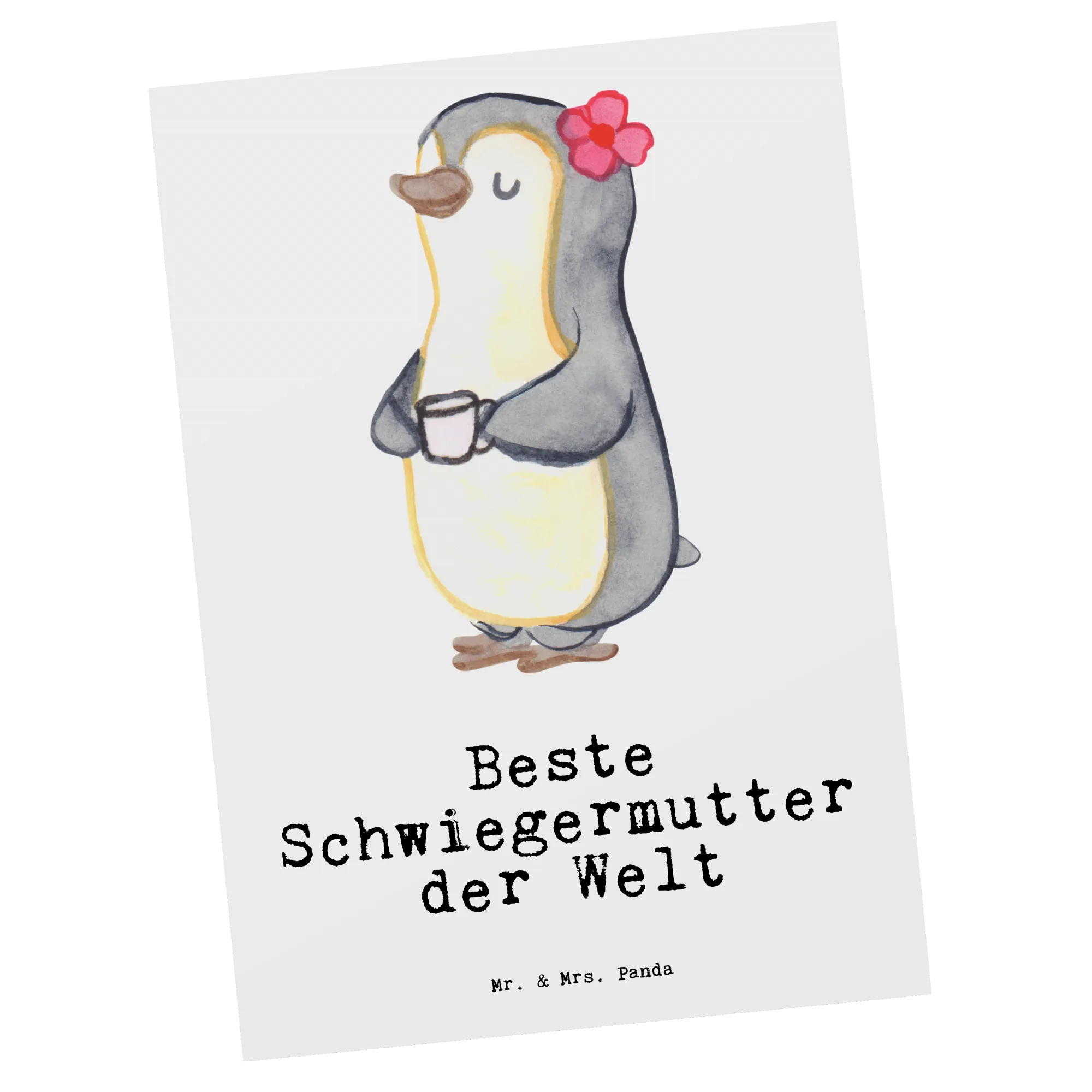 Die perfekte Geschenkidee für deine Schwiegermutter! Unsere Postkarte "Beste Schwiegermutter der Welt" aus der Kollektion Beziehungen von Mr. & Mrs. Panda zaubert ein Lächeln auf ihr Gesicht. Ein süßer Pinguin, der begeistert eine Tasse Kaffee schlürft, macht deutlich, wie besonders deine Schwiegermutter für dich ist.