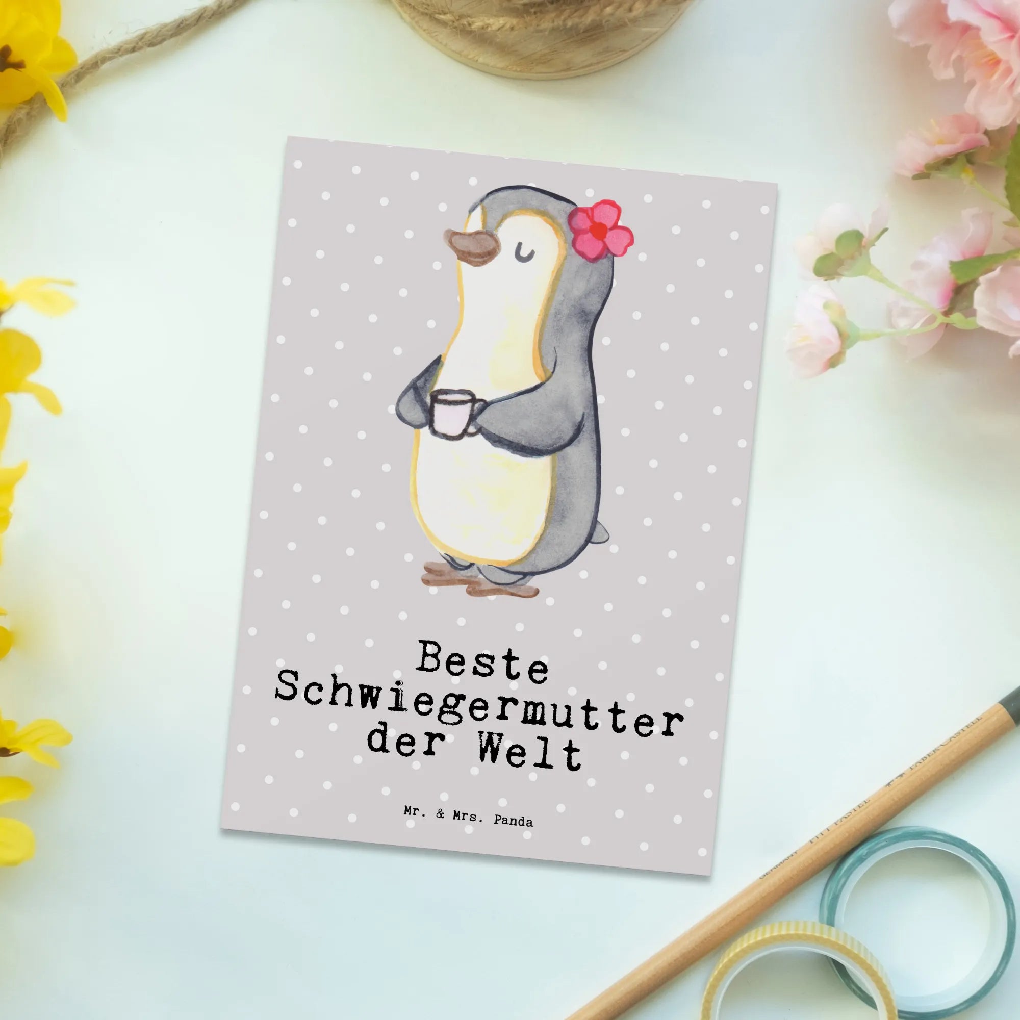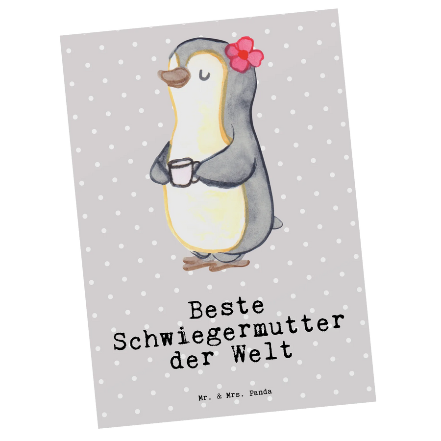 Postkarte Pinguin Beste Schwiegermutter der Welt - Grau Pastell