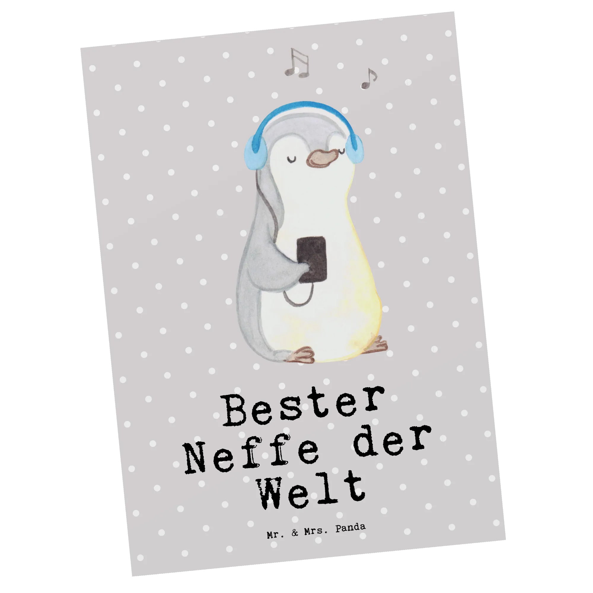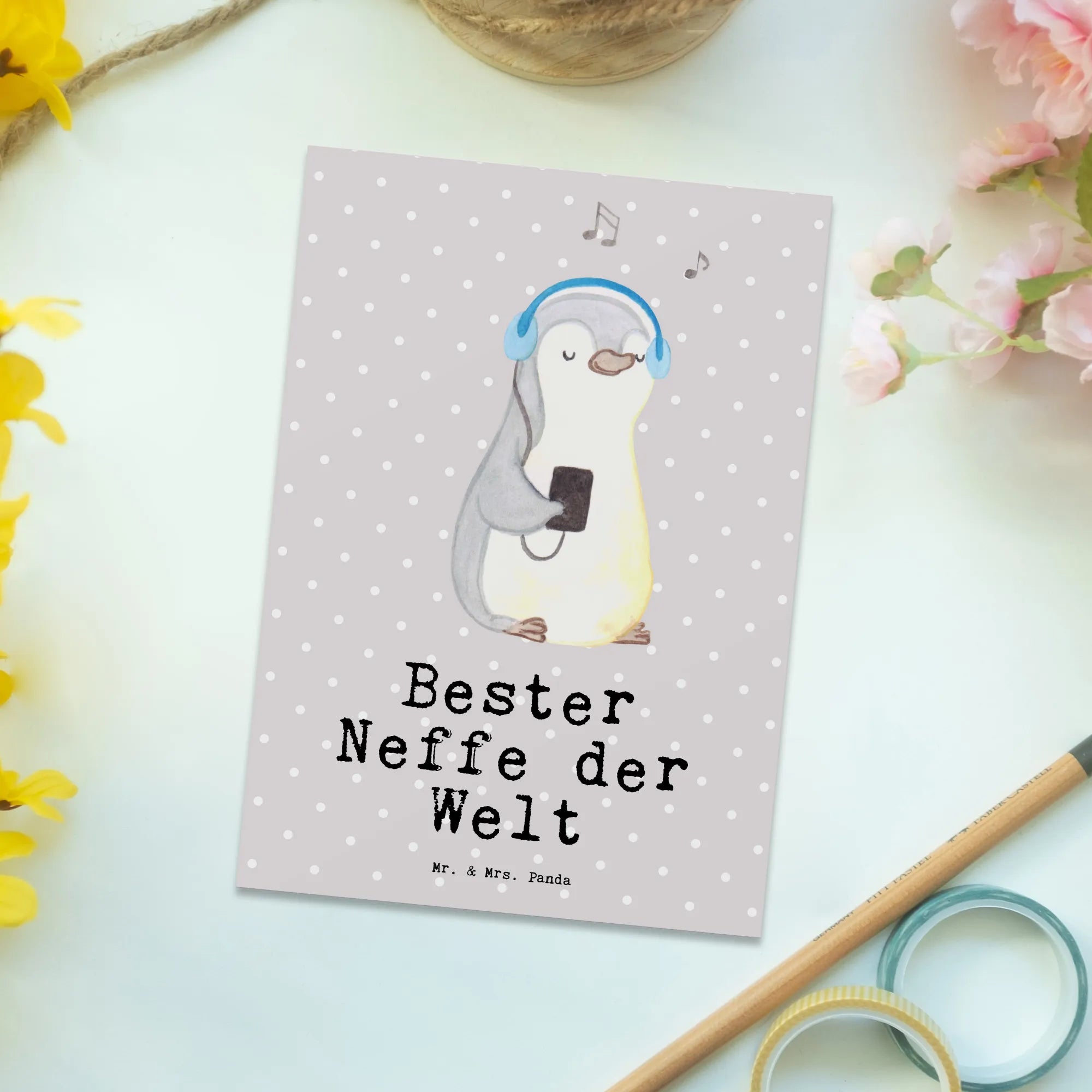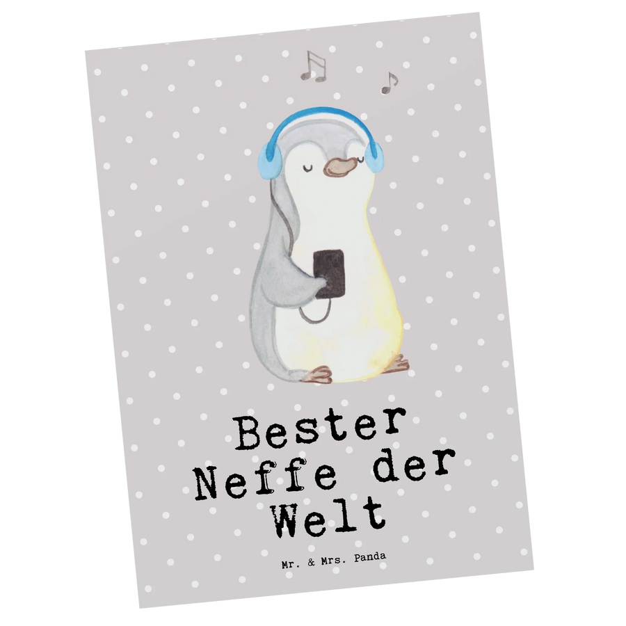 Postkarte Pinguin Bester Neffe der Welt - Grau Pastell