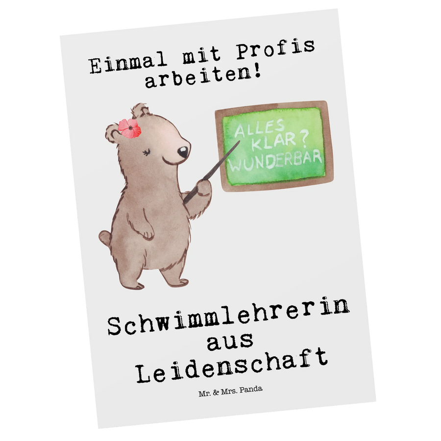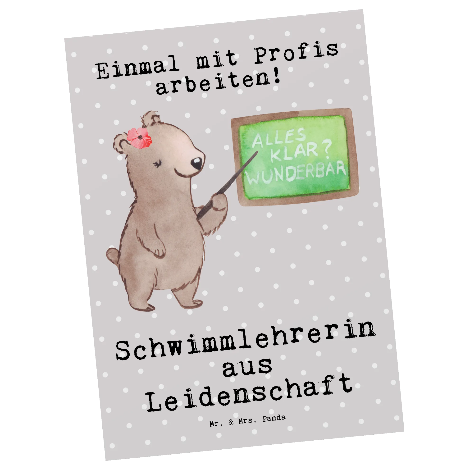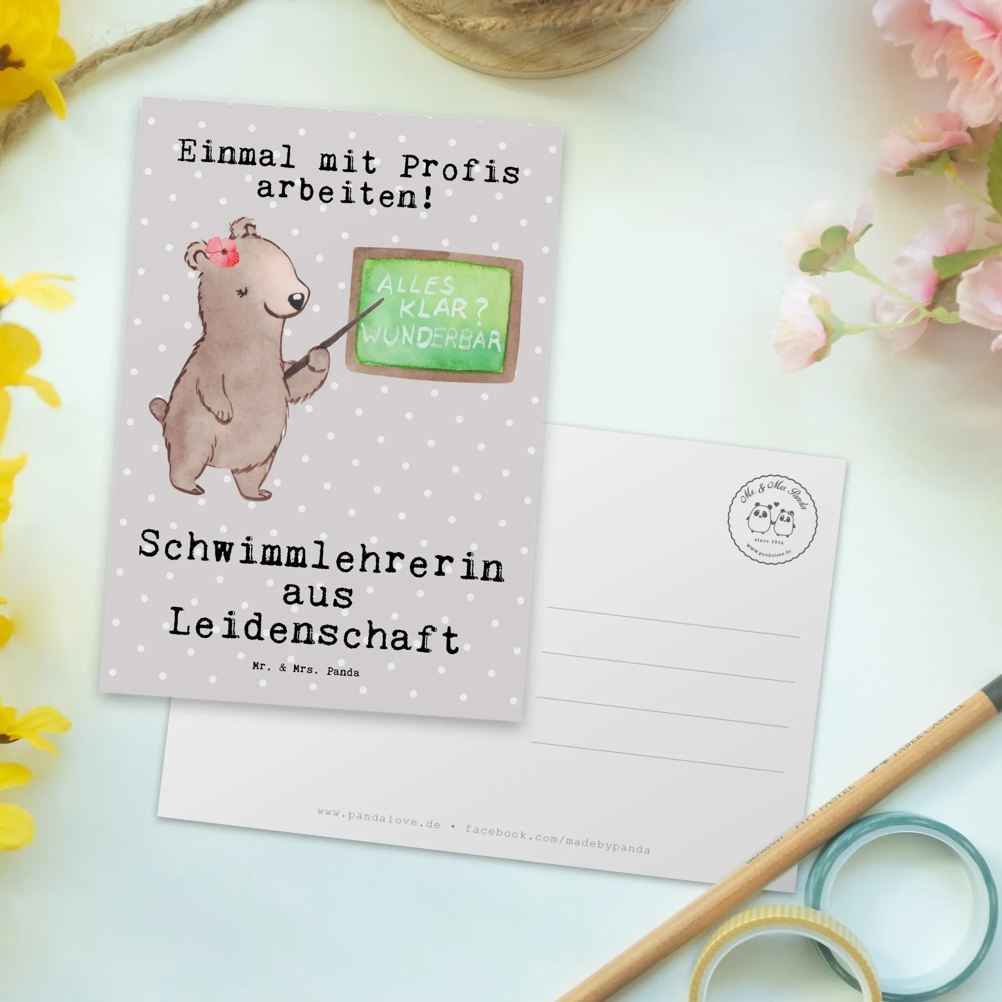 Die Postkarte "Schwimmlehrerin aus Leidenschaft" von Mr. & Mrs. Panda ist das perfekte Geschenk für alle, die mit Freude den Beruf einer Schwimmlehrerin ausüben. Egal ob zum Geburtstag, als Dankeskarte oder zum Abschied – diese liebevoll gestaltete Grußkarte zaubert jedem ein Lächeln ins Gesicht!
