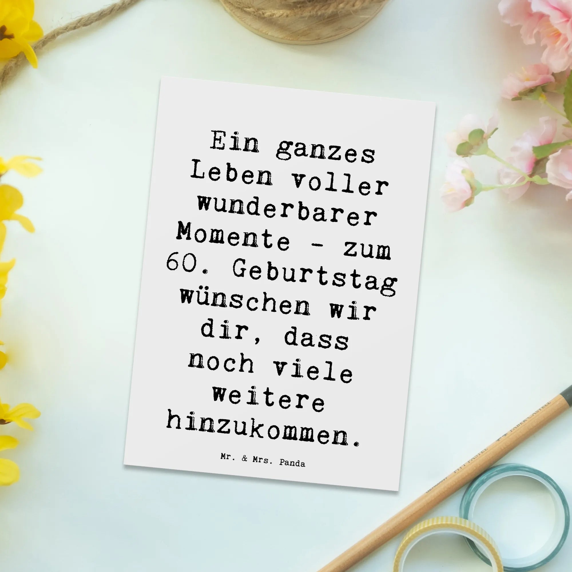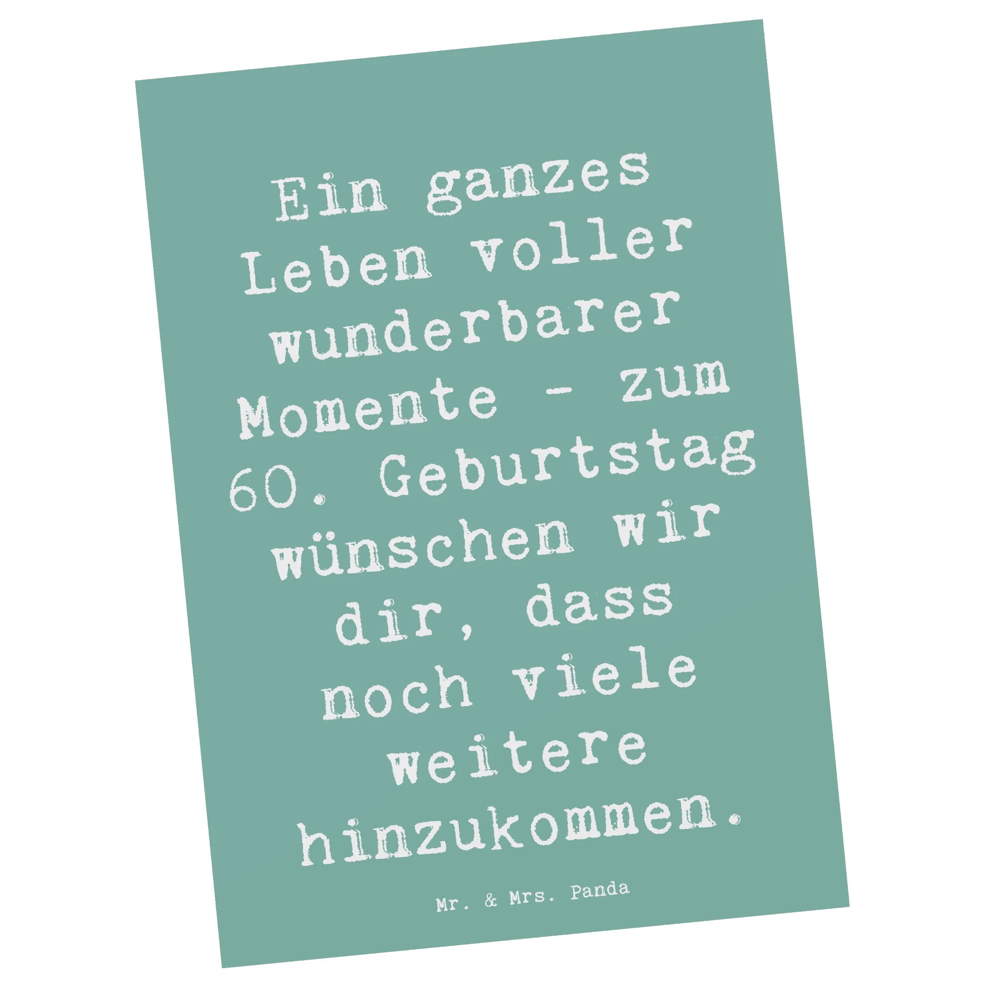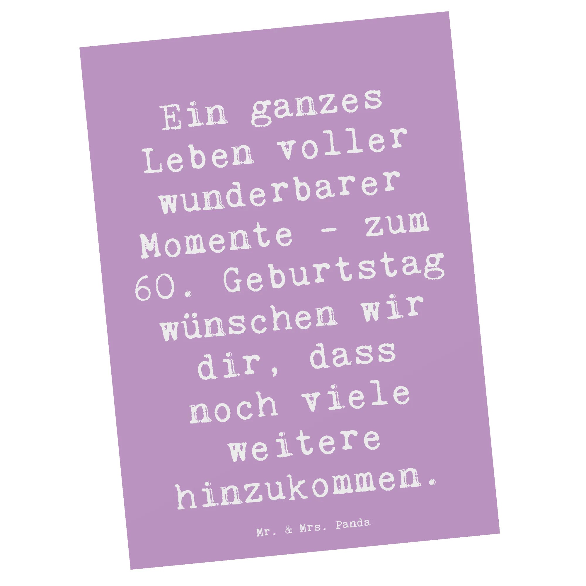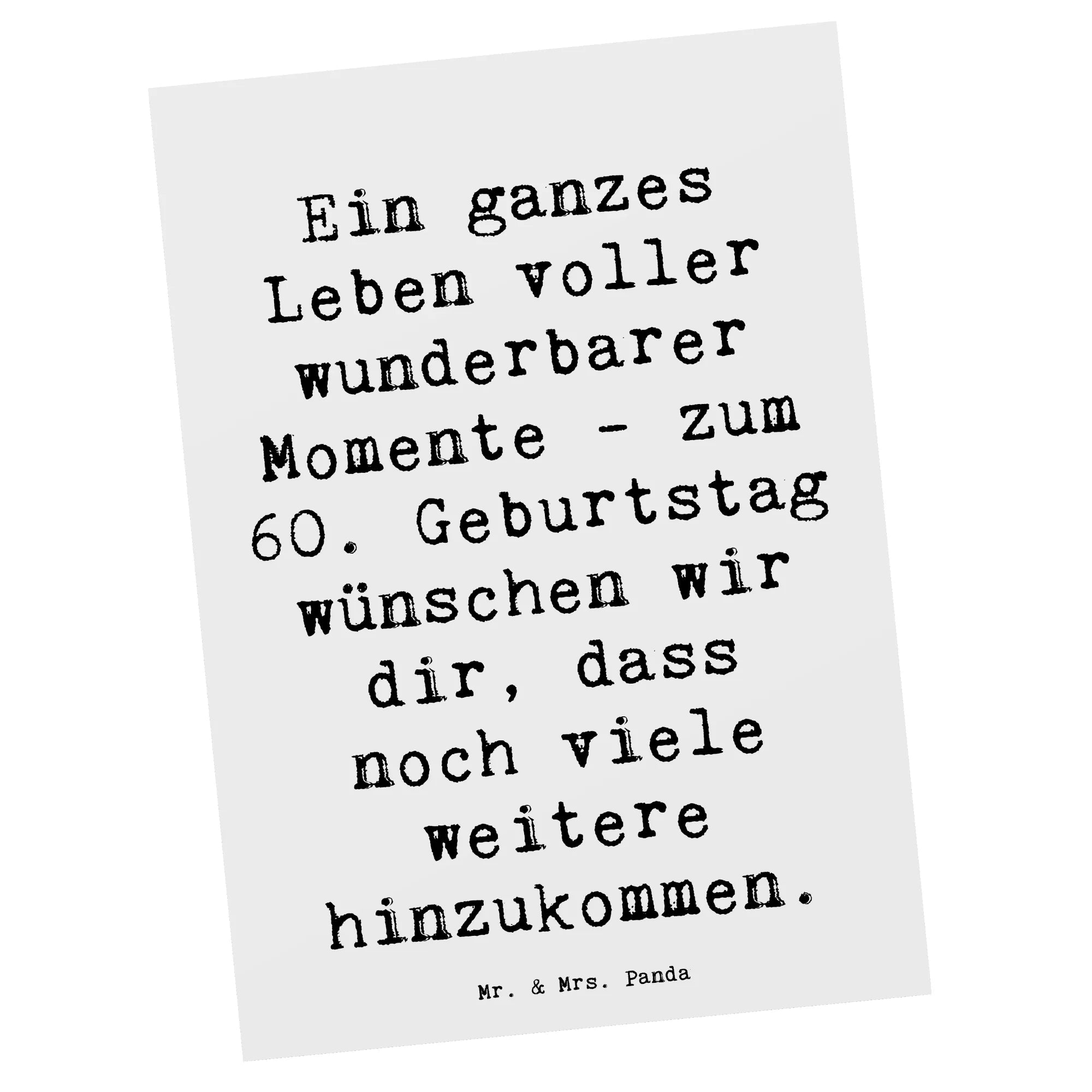 Mach diesen besonderen Tag unvergesslich und finde das passende Geschenk unter den vielen tollen Produkten von Mr. & Mrs. Panda. Unsere Karten sind die ideale Wahl für jeden Geburtstag und insbesondere für diesen ganz besonderen 60. Geburtstag. Lass Freude und Überraschung für jeden, der an diesem Tag gefeiert wird, sprudeln. Verleihe deinem Glückwunsch mit dieser wunderbaren Postkarte von Mr. & Mrs. Panda einen besonderen Touch!