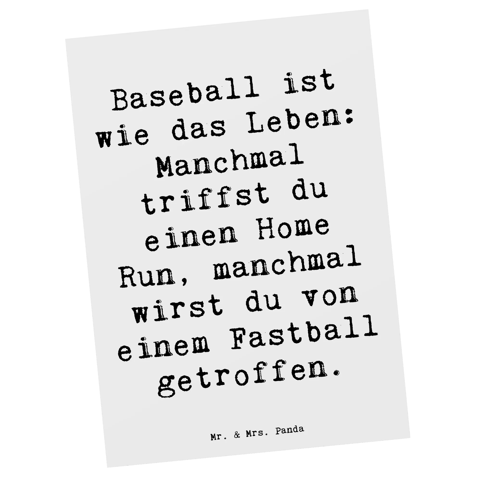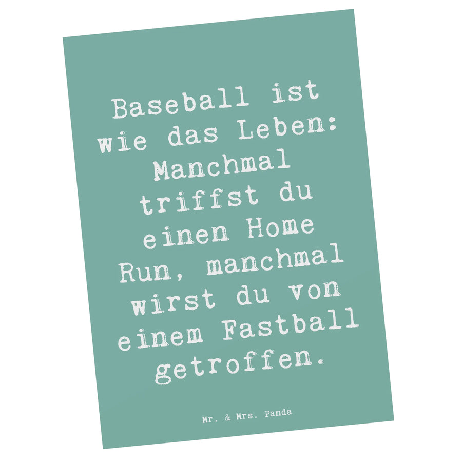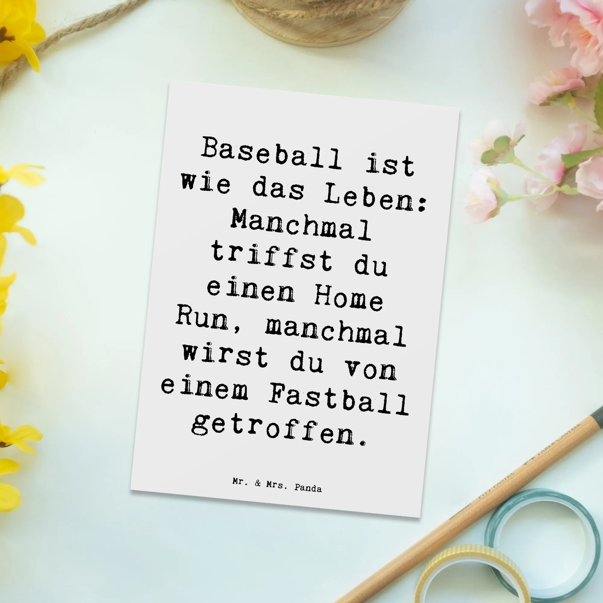 Entdecke die perfekte Postkarte für alle Baseball-Liebhaber! Die Postkarte "Baseball ist wie das Leben: Manchmal triffst du einen Home Run, manchmal wirst du von einem Fastball getroffen." von Mr. & Mrs. Panda ist ein ideales Geschenk für Sportler und Sportbegeisterte.