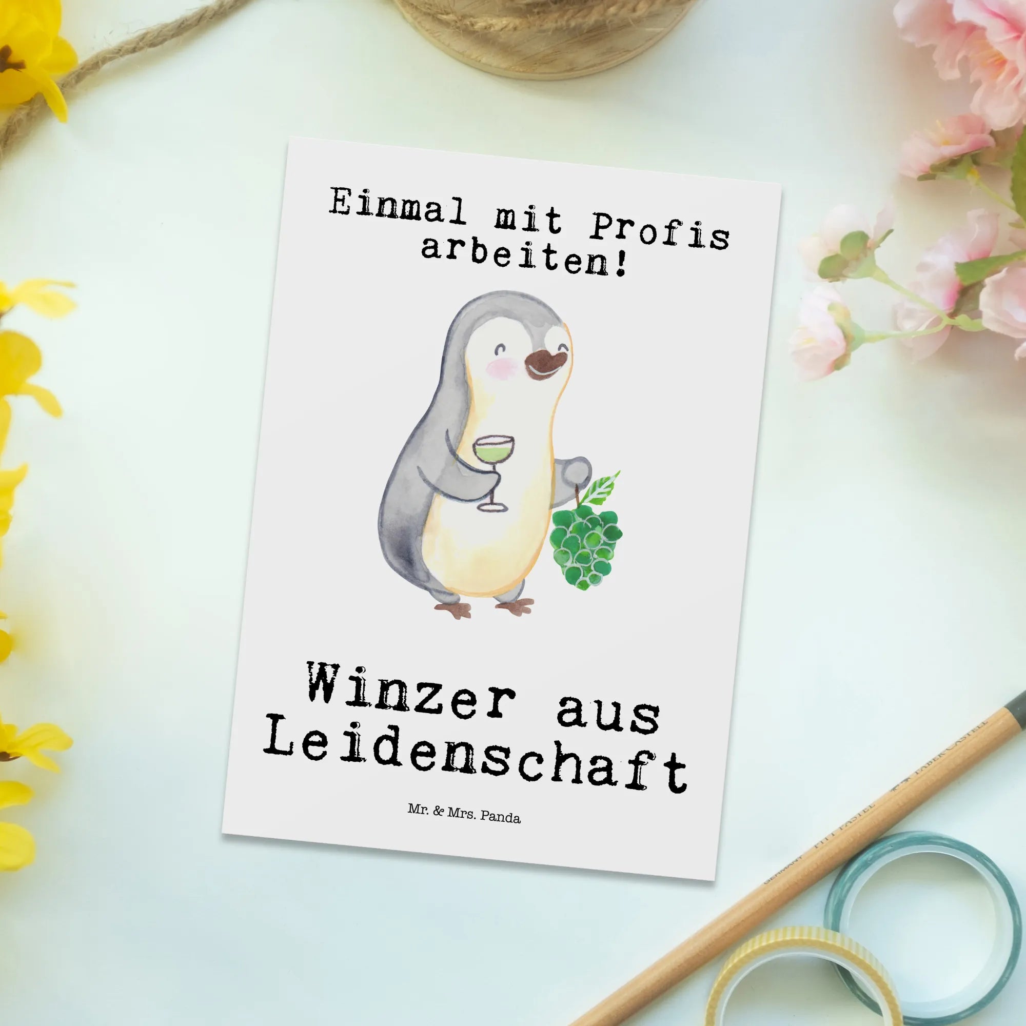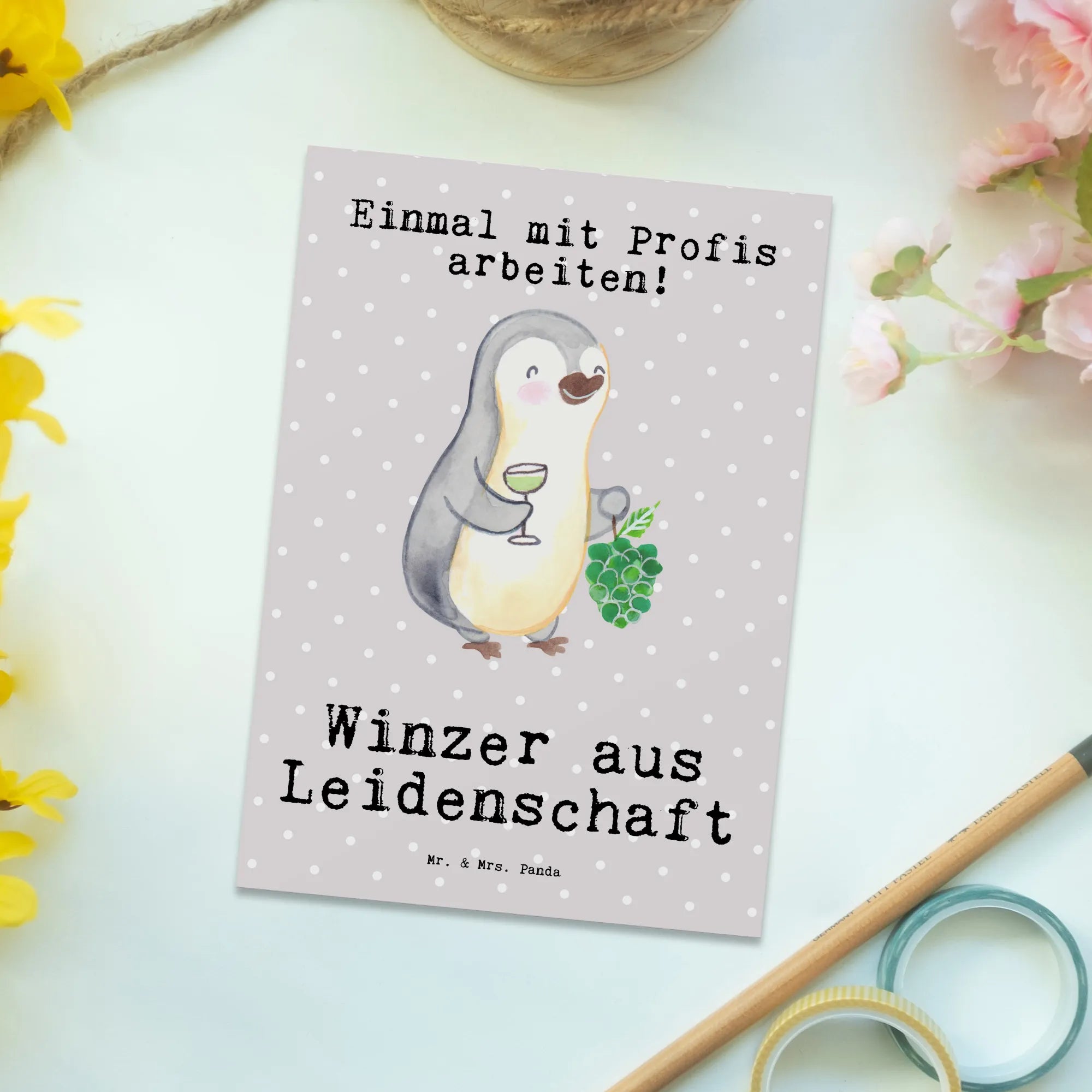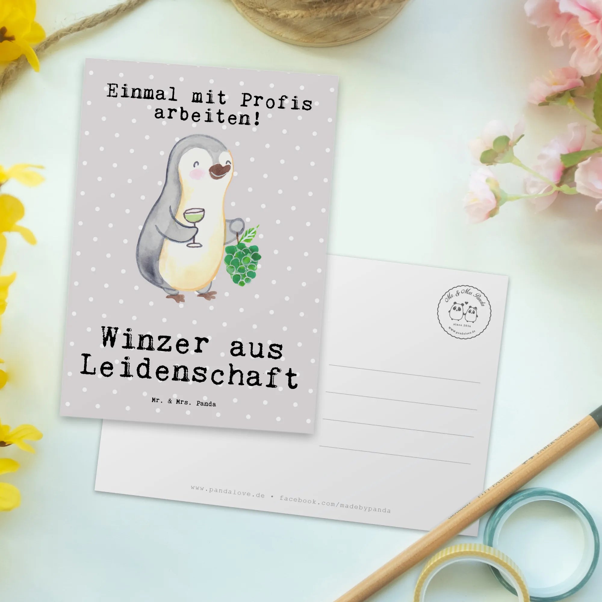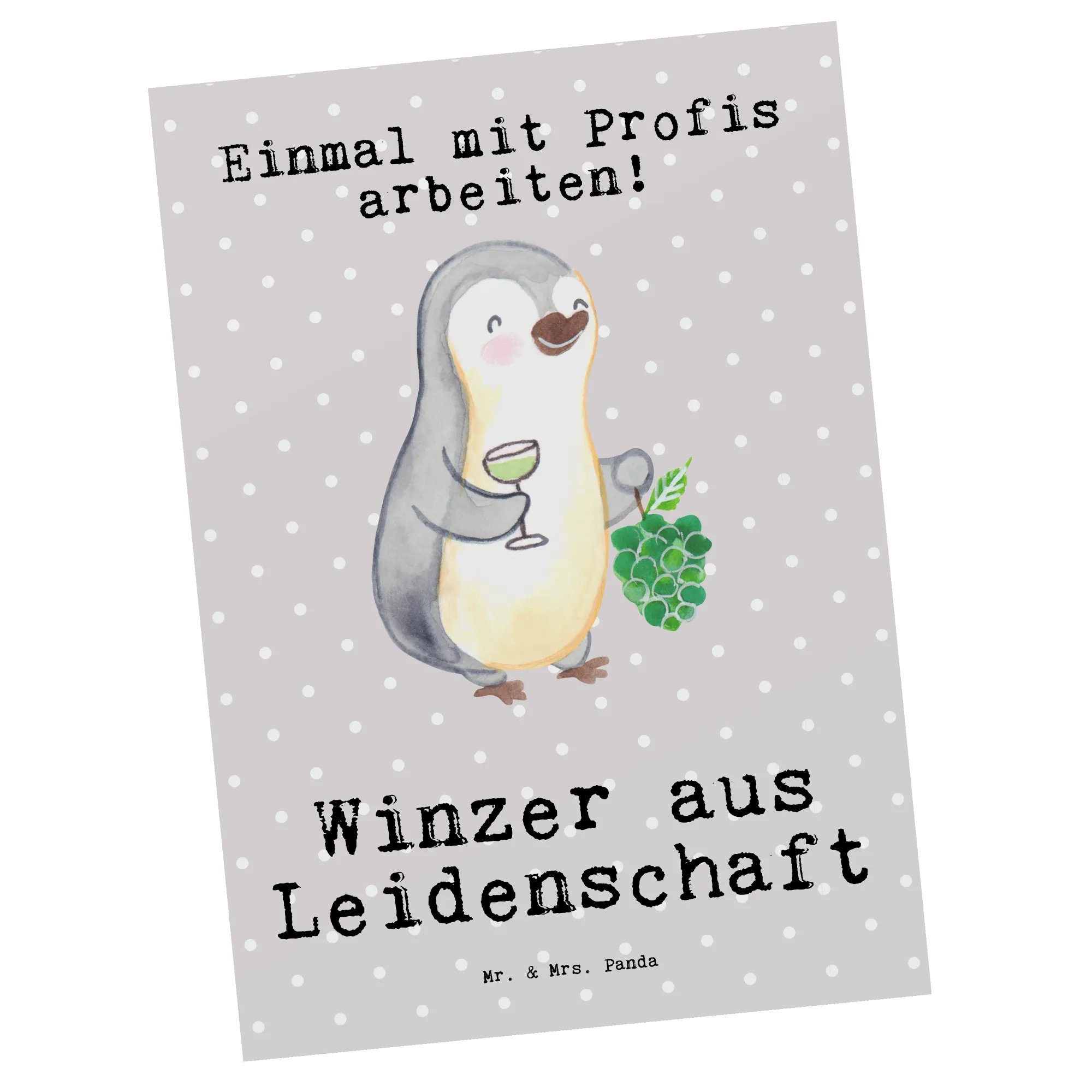 Entdecke die einzigartige Postkarte "Winzer aus Leidenschaft" von Mr. & Mrs. Panda! Diese bezaubernde Grußkarte bringt den unbändigen Enthusiasmus von Winzern auf stilvolle Art und Weise zum Ausdruck. Mit einem fröhlichen Pinguin, der in einer Hand süße Weintrauben und in der anderen ein gefülltes Glas Wein hält, spricht dieses Motiv besonders Weinliebhaber und -produzenten an.