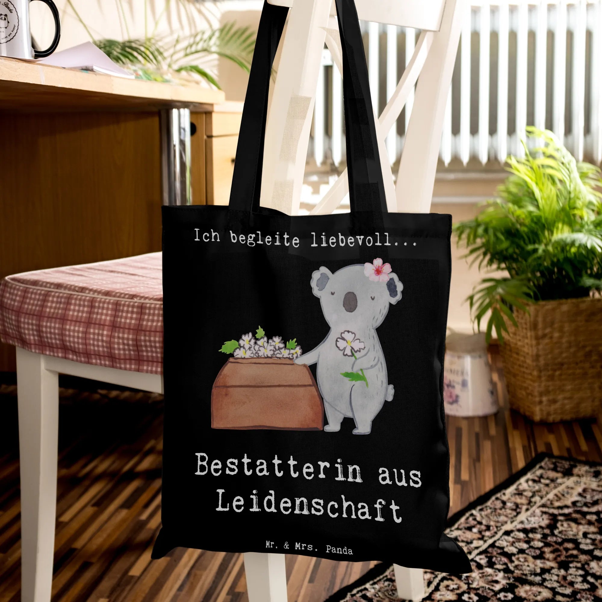Mit dem niedlichen Koala, der ehrfürchtig vor einem Sack mit Blumen steht, ist diese Tasche nicht nur ein wahrer Hingucker, sondern auch ein liebevolles Zeichen der Anerkennung. Perfekt als Geschenk zum Berufsabschied oder einfach nur so. Hol dir jetzt diese einzigartige Tragetasche von Mr. & Mrs. Panda, die mit viel Liebe und Fantasie gestaltet wurde und die Herzen von Bestatterinnen höher schlagen lässt!